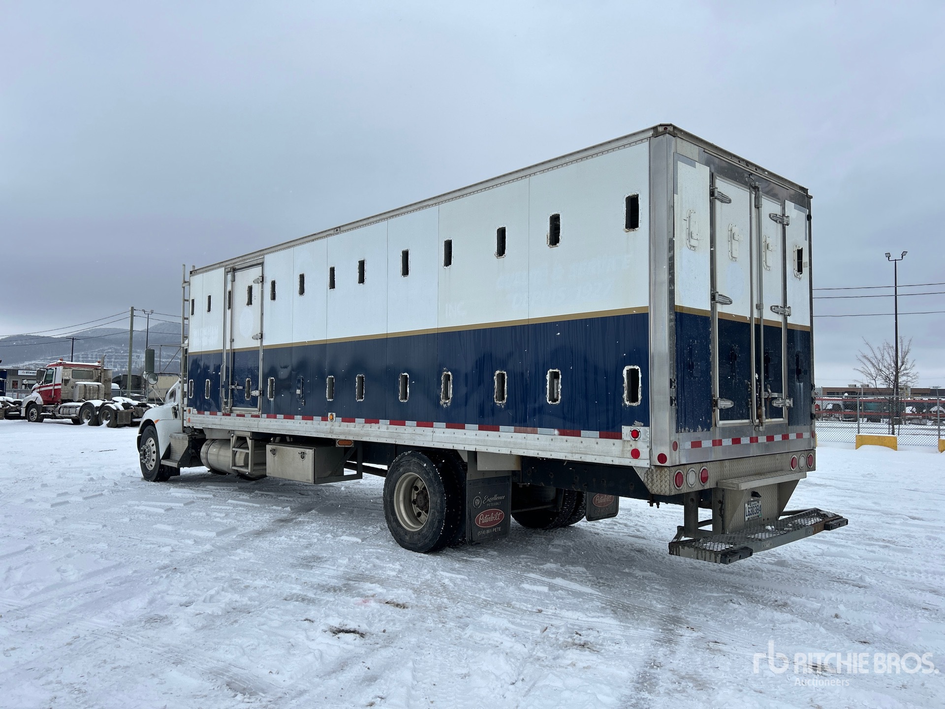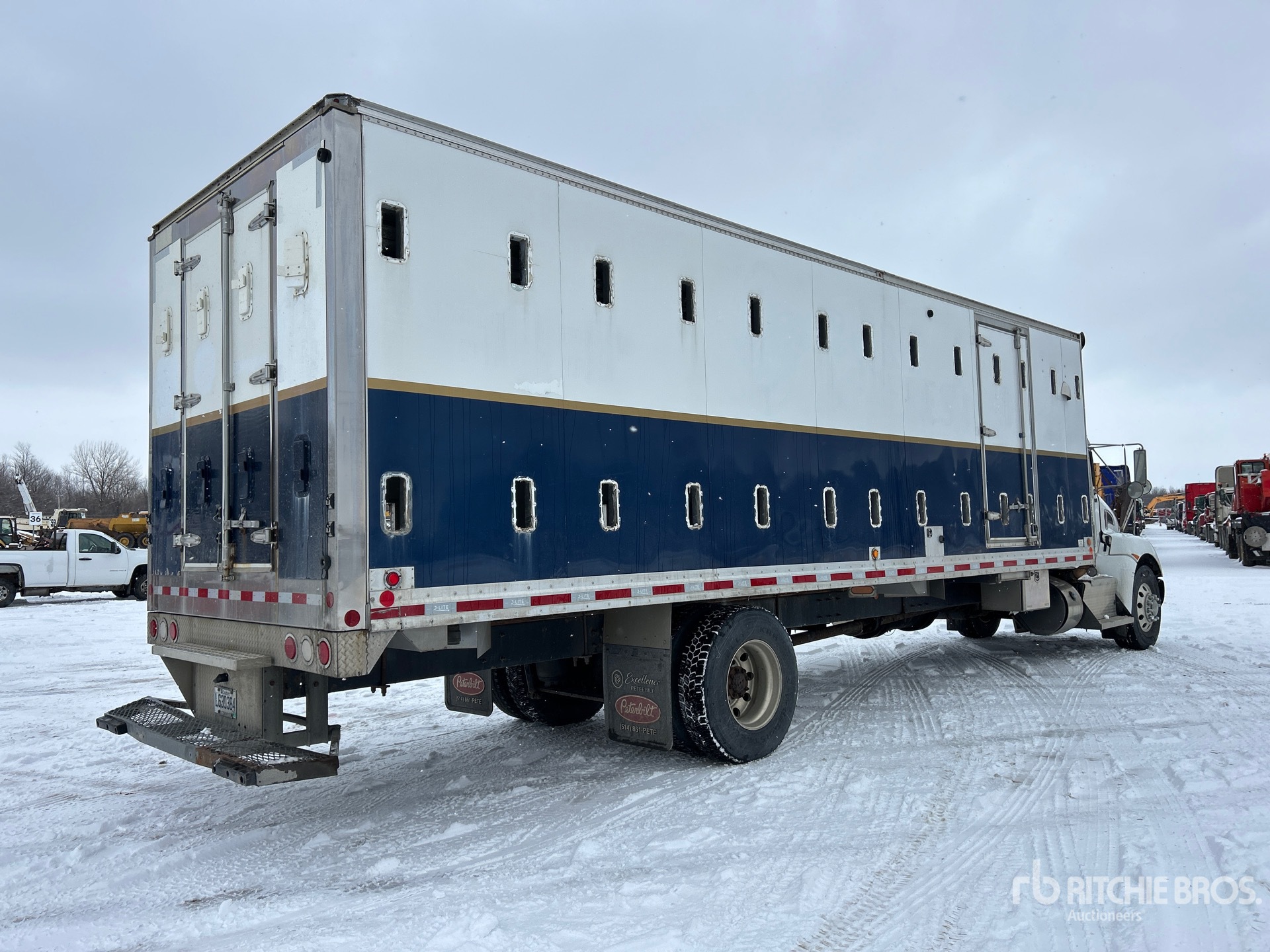Paccar PX-9 6 Cylinder 8.9 L Diesel Engine, US EPA Label, 14744 Engine hrs, Engine Brake, Eaton Fuller FSO8406A 6-Speed Manual Transmission, Differential Lock, 6623 kg Front Axle, 10433 kg Rears, 4.78:1 Axle Ratio, 17055 kg GVWR, Aluminum Wheels, 315/80R22.5 Front Tires, 11R22.5 Rear Tires, Air Ride Suspension, 305 in Wheelbase, Dynamic 28 ft 6 in Aluminum Body, Rear Swing Gate