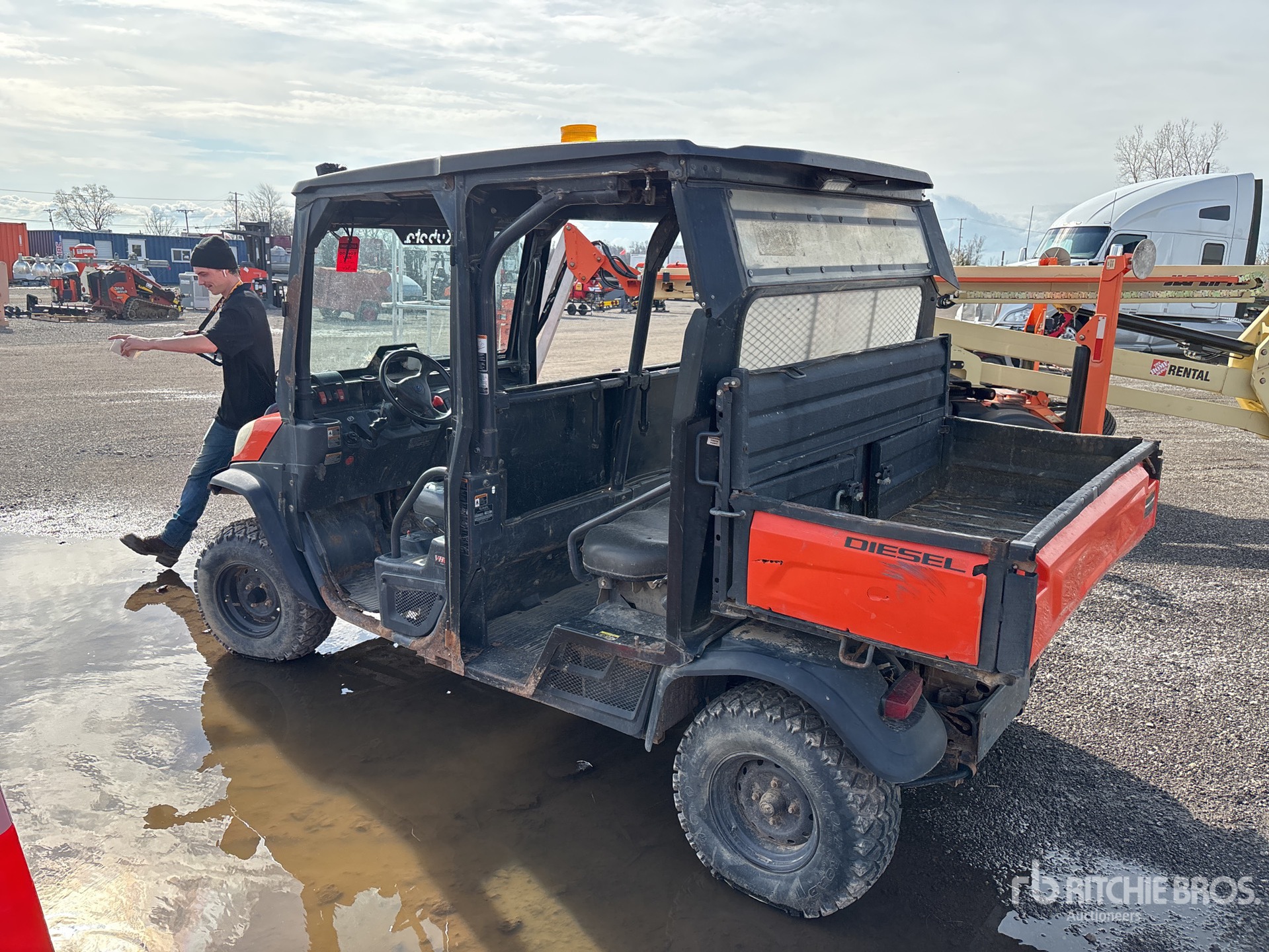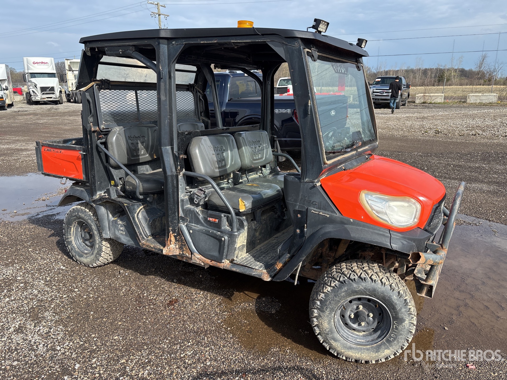 Canopy, 4 Passenger, Windshield, Rear Screen, Locking Front Differential, Brush Guard, Hitch Receiver, Hydraulic Dump Bed, Kubota 3 Cylinder Diesel Engine