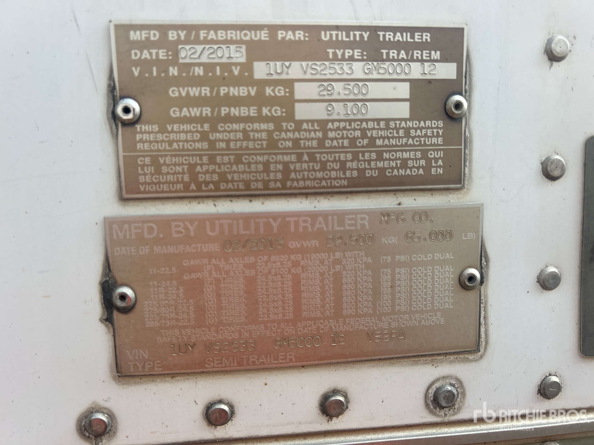 การวัดเป็นเพียงการประมาณการเท่านั้น ขนาดที่บรรทุกจริงอาจแตกต่างกันไปตามความสูงของรถบรรทุก/รถพ่วง และการกำหนดค่า/ตำแหน่งของเครื่องที่บรรทุก เป็นความรับผิดชอบของผู้ซื้อในการวัดน้ำหนักทั้งหมดก่อนออกจากสถานที่ประมูลของเรา เพื่อให้แน่ใจว่าน้ำหนักบรรทุกนั้นปลอดภัยสำหรับการขนส่ง การวัดทั้งหมดควรได้รับการตรวจสอบโดยผู้ซื้อ อย่าพึ่งพาการวัดเหล่านี้เพื่อวัตถุประสงค์ในการขนส่ง
