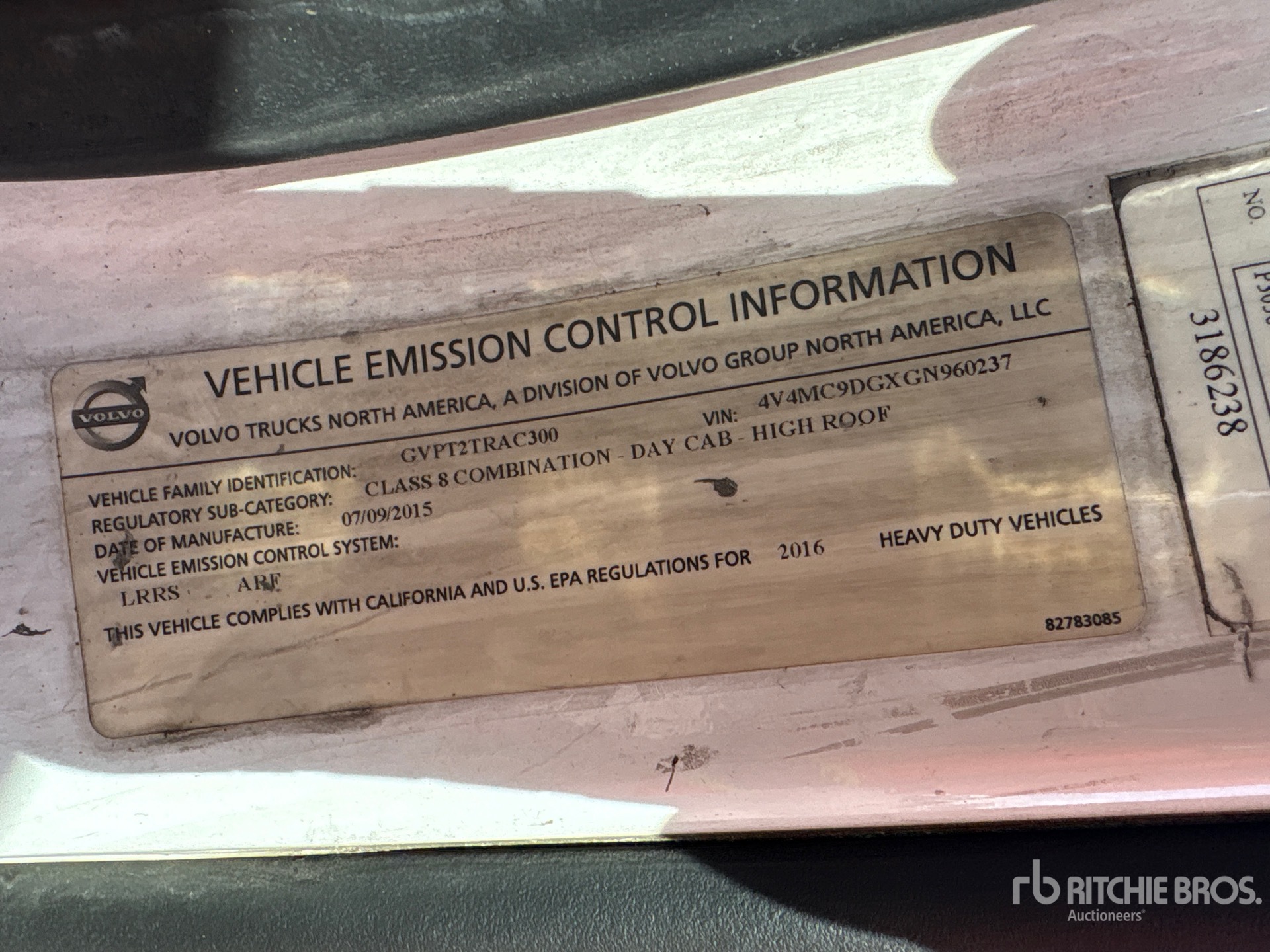 Volvo D11 Engine, 2016 US EPA Label, Eaton Fuller FR-14210B 10-Speed Manual Transmission, 13200 lb Front Axle, 38000 lb Rears, 50000 lb GVWR, 162 in Wheelbase, Air Suspension, Aluminum Wheels, 275/80R22.5 Front Tires, 275/80R22.5 Rear Tires