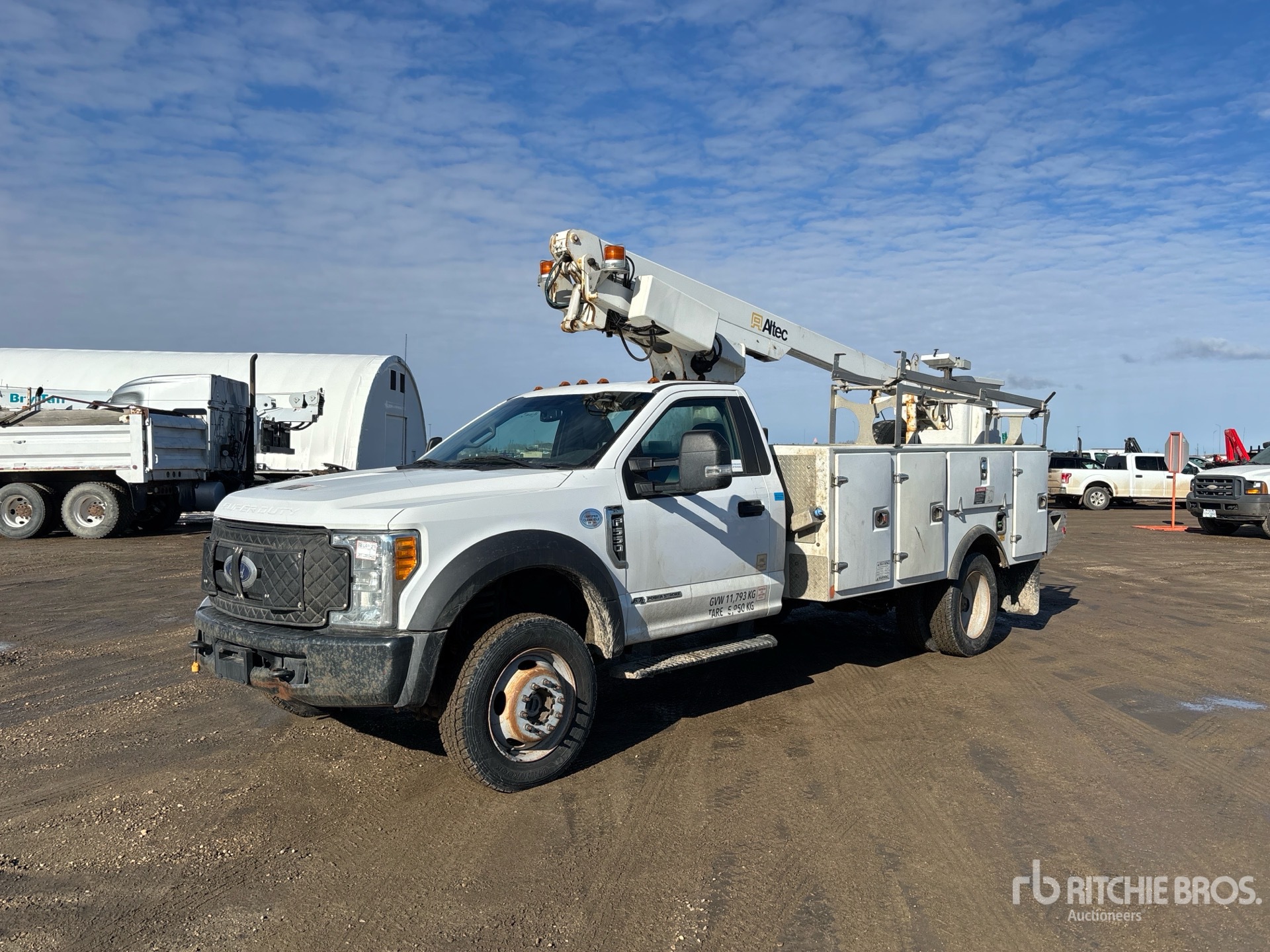 V8 6.7 L Diesel Engine, 2016 US EPA Label, CARB Compliant, Requires Diesel Exhaust Fluid, 4134 Engine hrs, Automatic Transmission, 7000 lb Front Axle, 14706 lb Rears, 19500 lb GVWR, 225/70R19.5, Spring Suspension, 168 in Wheelbase, PTO, 300 lb Capacity, Center Mounted, One-Person Telescopic Boom, Utility Body, Remote Control w/Cord, 12 ft 6 in x 96 in Bed, Aluminum/Steel Combination Frame