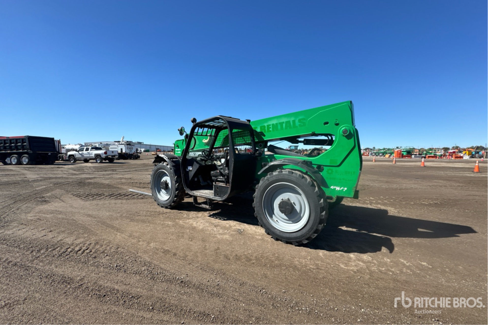 การวัดเป็นเพียงการประมาณการเท่านั้น ขนาดที่บรรทุกจริงอาจแตกต่างกันไปตามความสูงของรถบรรทุก/รถพ่วง และการกำหนดค่า/ตำแหน่งของเครื่องที่บรรทุก เป็นความรับผิดชอบของผู้ซื้อในการวัดน้ำหนักทั้งหมดก่อนออกจากสถานที่ประมูลของเรา เพื่อให้แน่ใจว่าน้ำหนักบรรทุกนั้นปลอดภัยสำหรับการขนส่ง การวัดทั้งหมดควรได้รับการตรวจสอบโดยผู้ซื้อ อย่าพึ่งพาการวัดเหล่านี้เพื่อวัตถุประสงค์ในการขนส่ง
