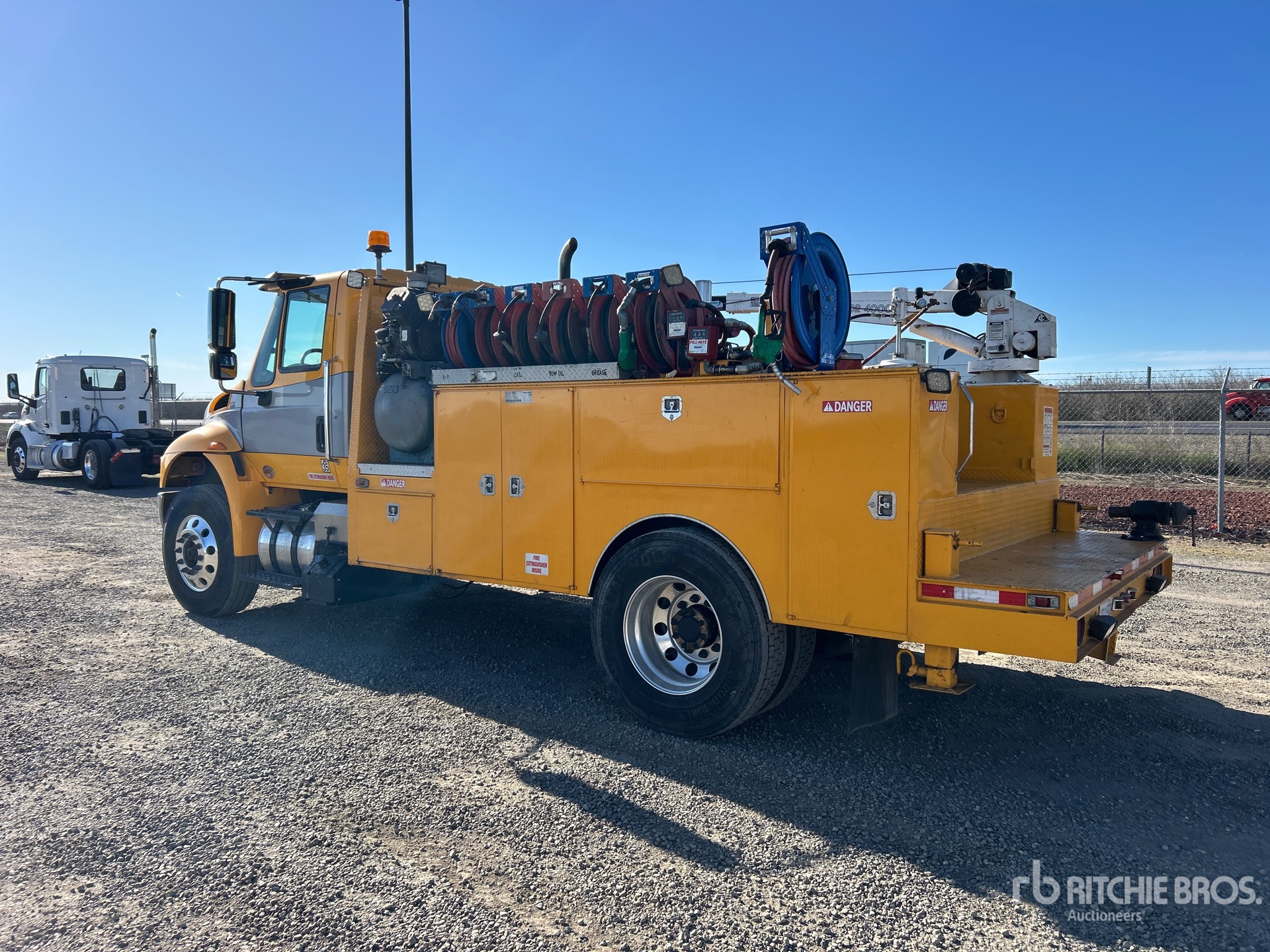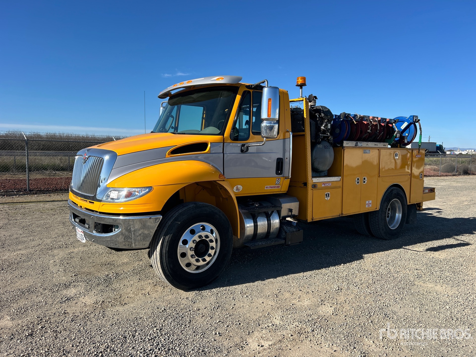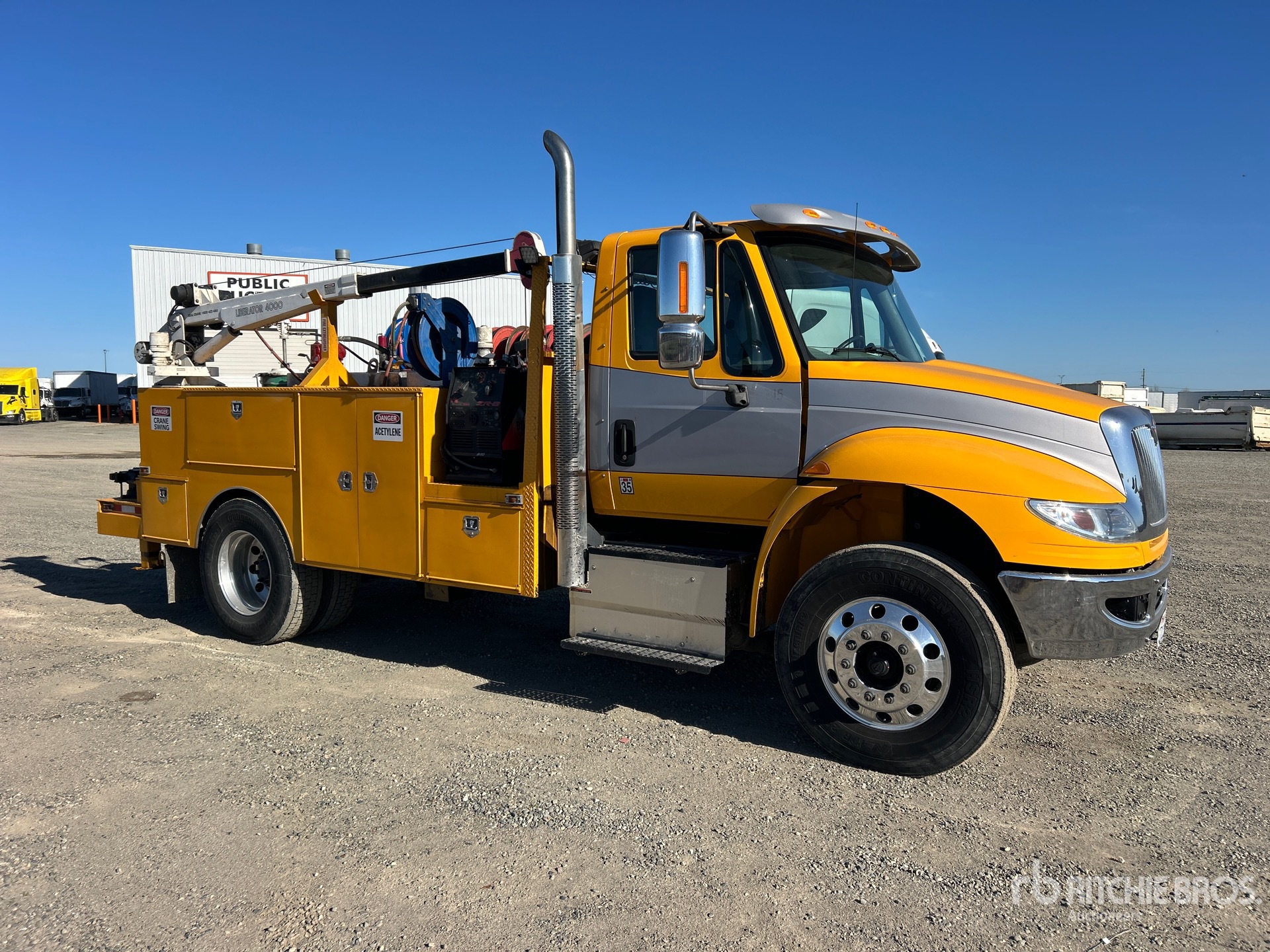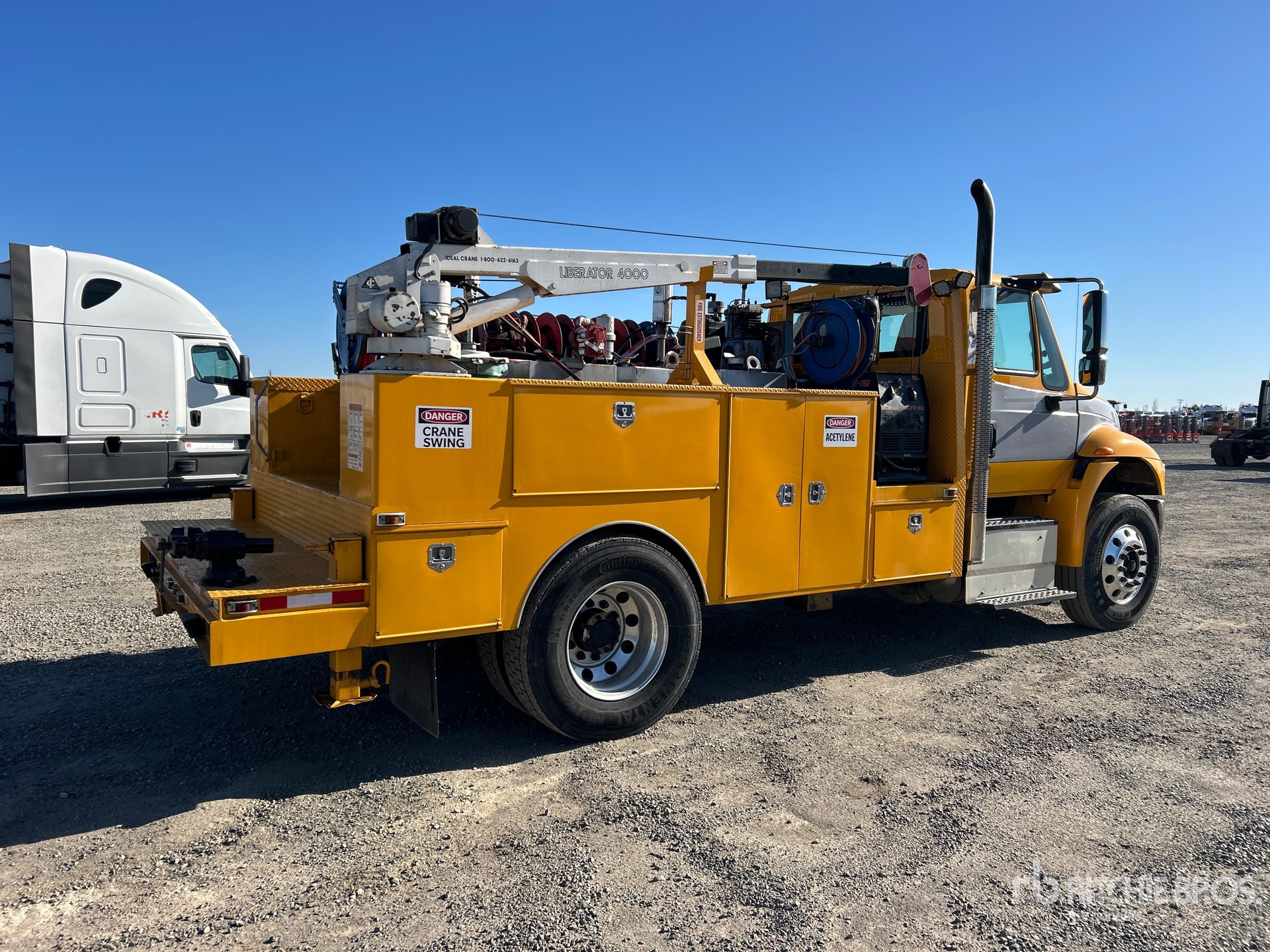Located in Lane 7 Spot 3, Navistar N9 6 Cylinder 9.3 L Diesel 315 hp Engine, 2016 US EPA Label, Requires Diesel Exhaust Fluid, 1449 Engine hrs, Allison Automated Transmission, 12000 lb Front Axle, 20000 lb Rears, 32000 lb GVWR, Aluminum Wheels, 11R22.5, Air Ride Suspension, 175 in Wheelbase, 12 ft 5 in Body, Ideal Crane LIB 4 XTW-PR 4000 lb 2 Section Electric Crane, Wired Remote Control, Curtis Gasoline Air Compressor, Air Hose Reel, Red-D-ARC ZR-8 8000 W Gasoline Welder, Equipment-from-Biondi-Paving