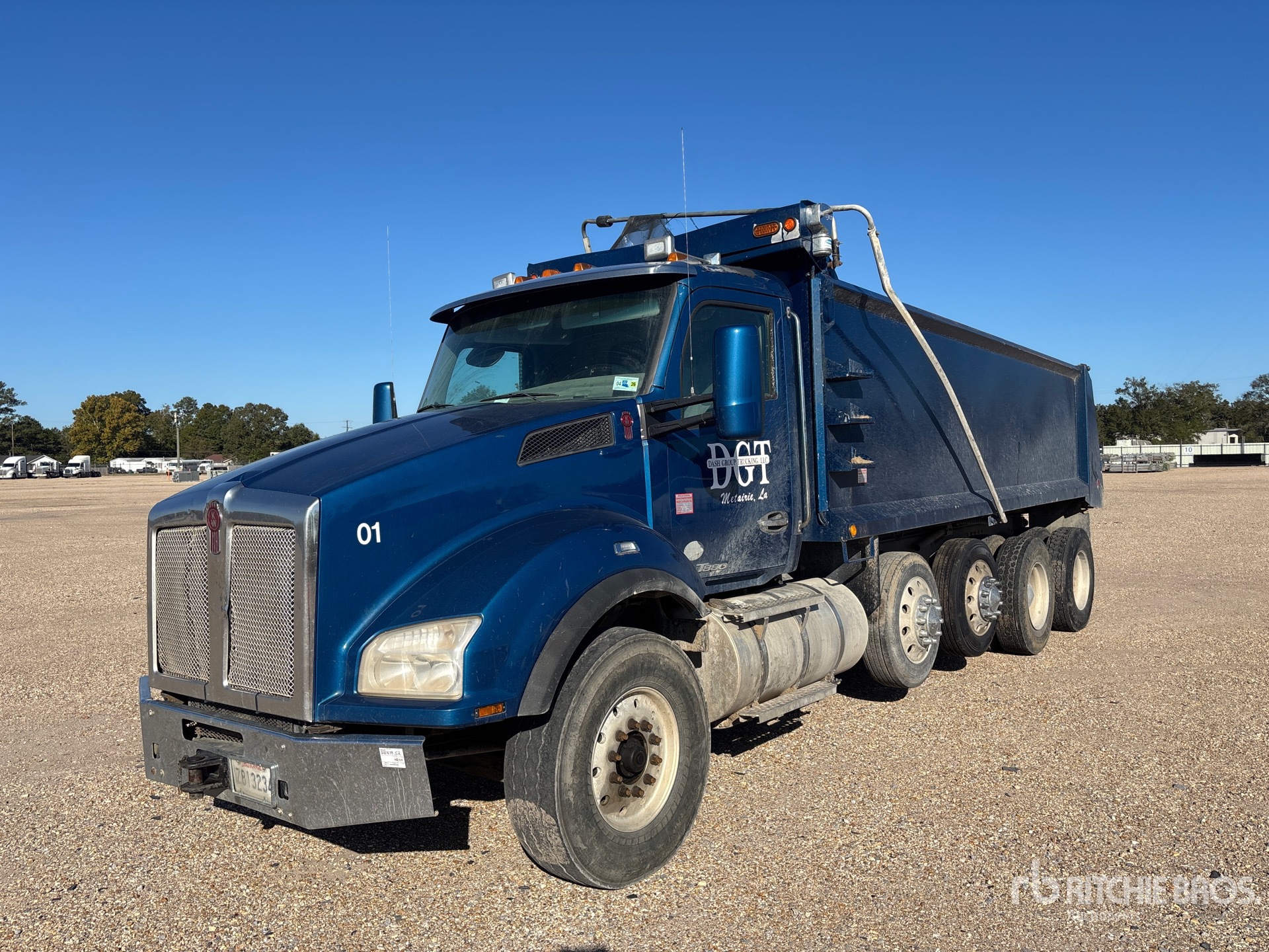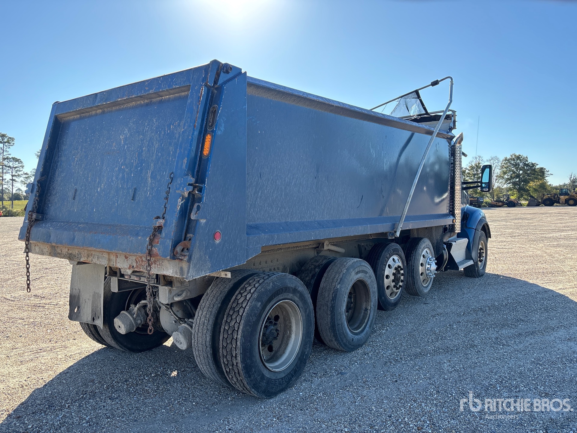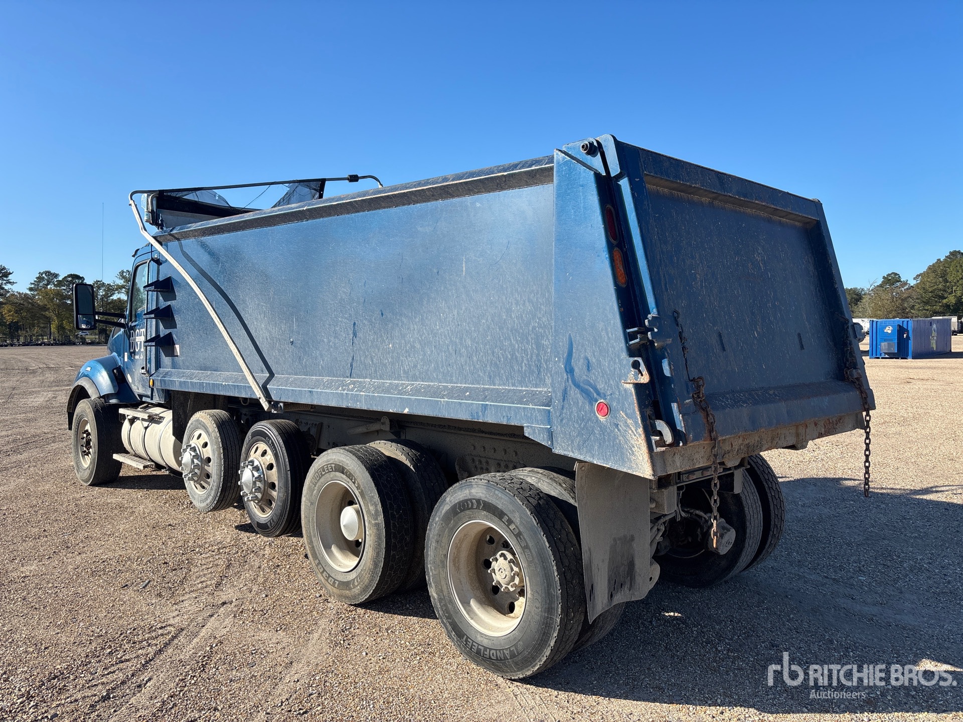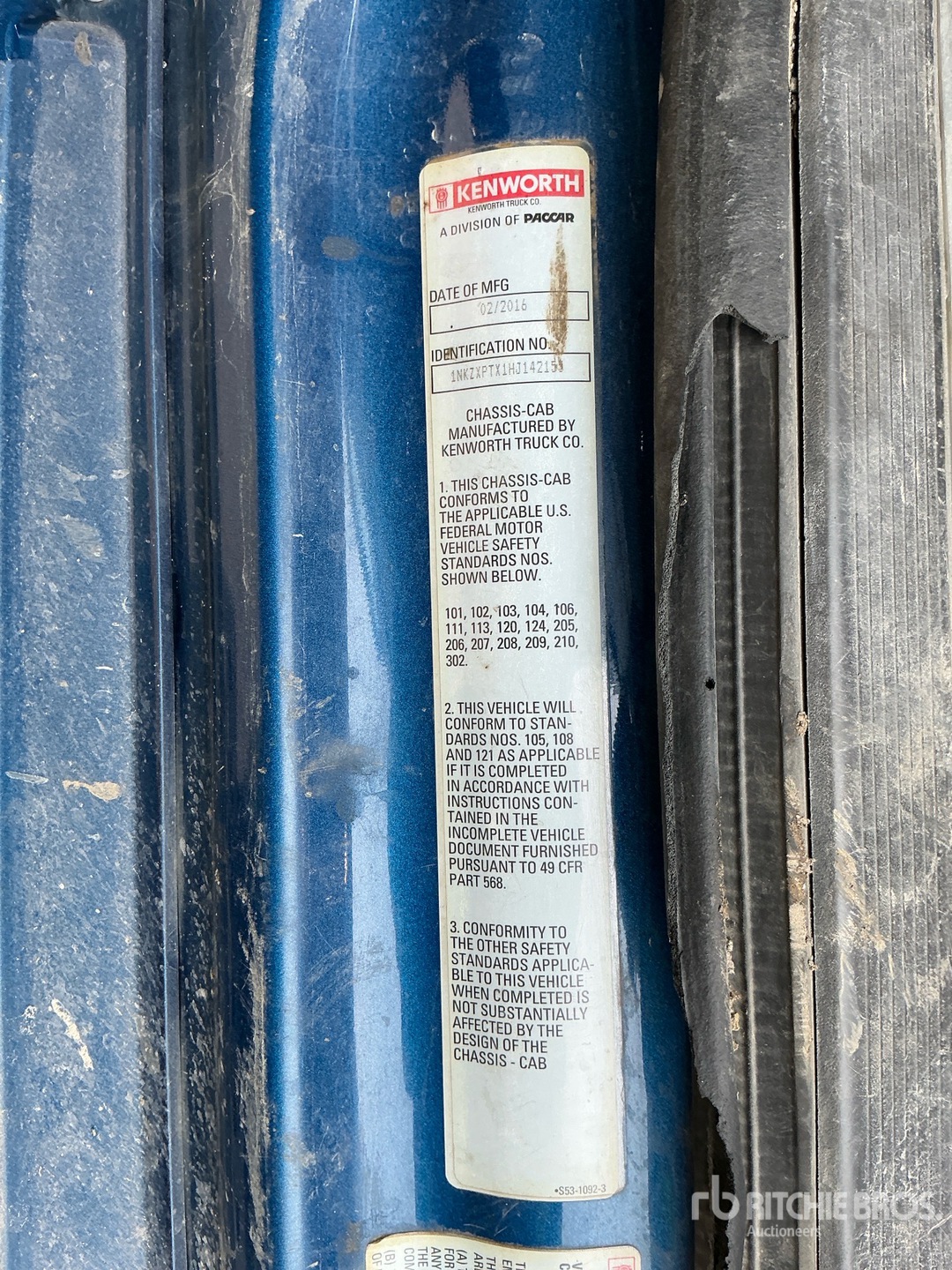 Paccar MX-13 12.9 L Diesel 380 hp Engine, 2016 US EPA Label, Requires Diesel Exhaust Fluid, 18794.1 Engine hrs, Engine Brake, Eaton Fuller FO-14E308LL-VCS U Automatic Transmission, 20000 lb Front Axle, 46000 lb Rears, Meritor RT-46-164PEH Drive Axles, 3.91:1 Axle Ratio, 88040 lb GVWR, Air Ride Cab, Aluminum Wheels, 315/80R22.5 Front Tires, 11R22.5 Rear Tires, 2 Steerable Air Lift Pusher Axle, Dual Steering Boxes, Hendrickson Haulmaax Rubber over Walking Beam Suspension, 248 in Wheelbase, PTO, OX Bodies 19 ft 11 in Long x 4 ft 8 in High Steel Body, Electric Roll Tarp