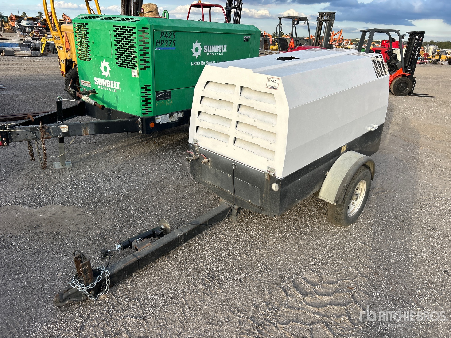 100 psi Working Pressure, 2017 US EPA Label, Kohler 3 Cylinder 37 kW Diesel Engine, Ball Hitch Carrier Trailer, Surge Brakes