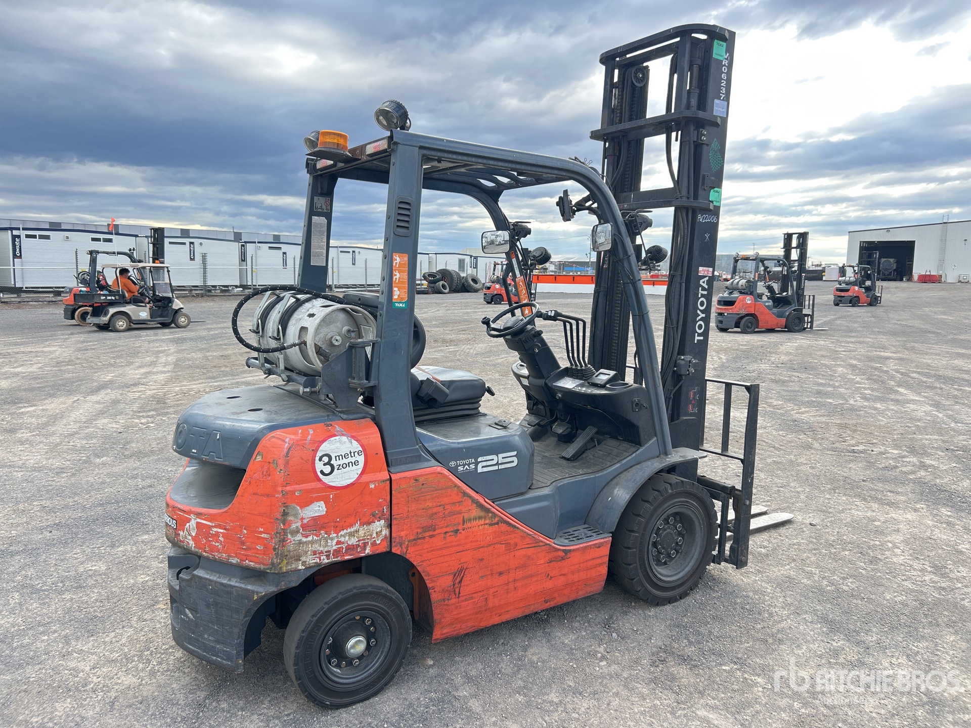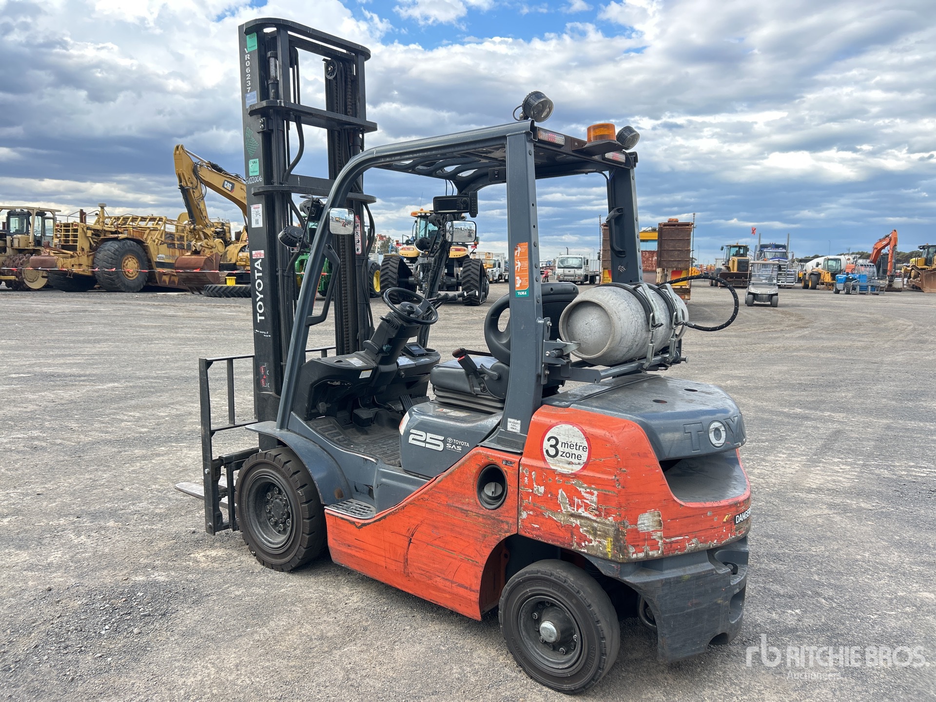 2 Stage Mast, 4500 mm Max Lift Height, 2800 mm Lowered Mast Height, 1050 mm Forks, Side Shift, Fork Positioner, Load Weigh System, Solid Pneumatic Tires, Toyota 4 Cylinder Dual Fuel Engine