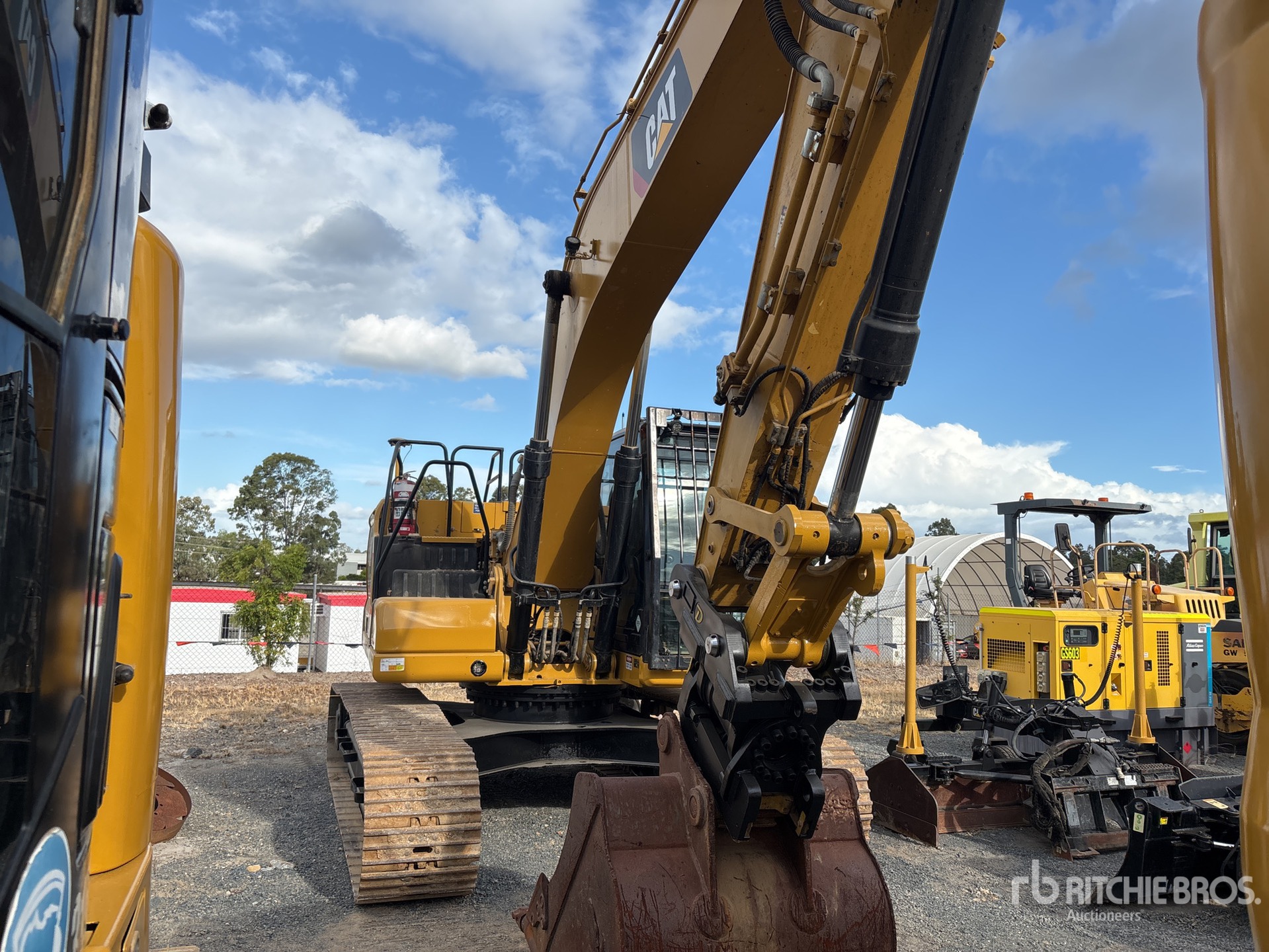 Air Conditioner, Cab Screens, Rear & Side View Cameras, E-Stops, Trimble Grade Control, Auxiliary Hydraulic Plumbing, Stick Check Valve, Boom Check Valves, Tilting Hydraulic Quick Coupler, Cleanup Bucket, Safety Rails