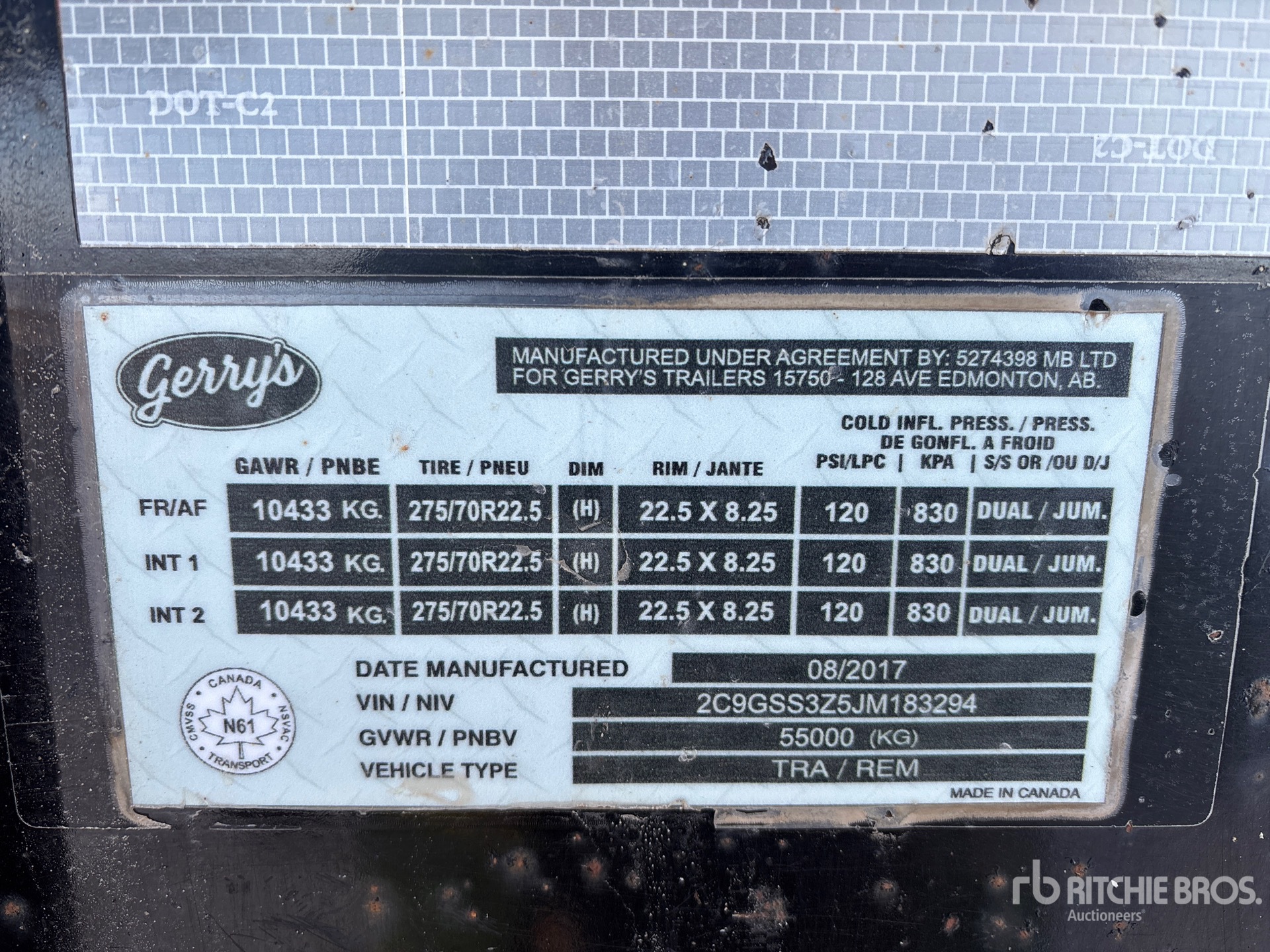 ( 4 ) 10 ft 3 in Bunks, Air Ride Suspension, Air Brakes, Aluminum Wheels, 275/70R22.5 Tires, 55000 kg GVWR, Complete-Retirement-Dispersal-for-Mur-Cal-Services-Ltd