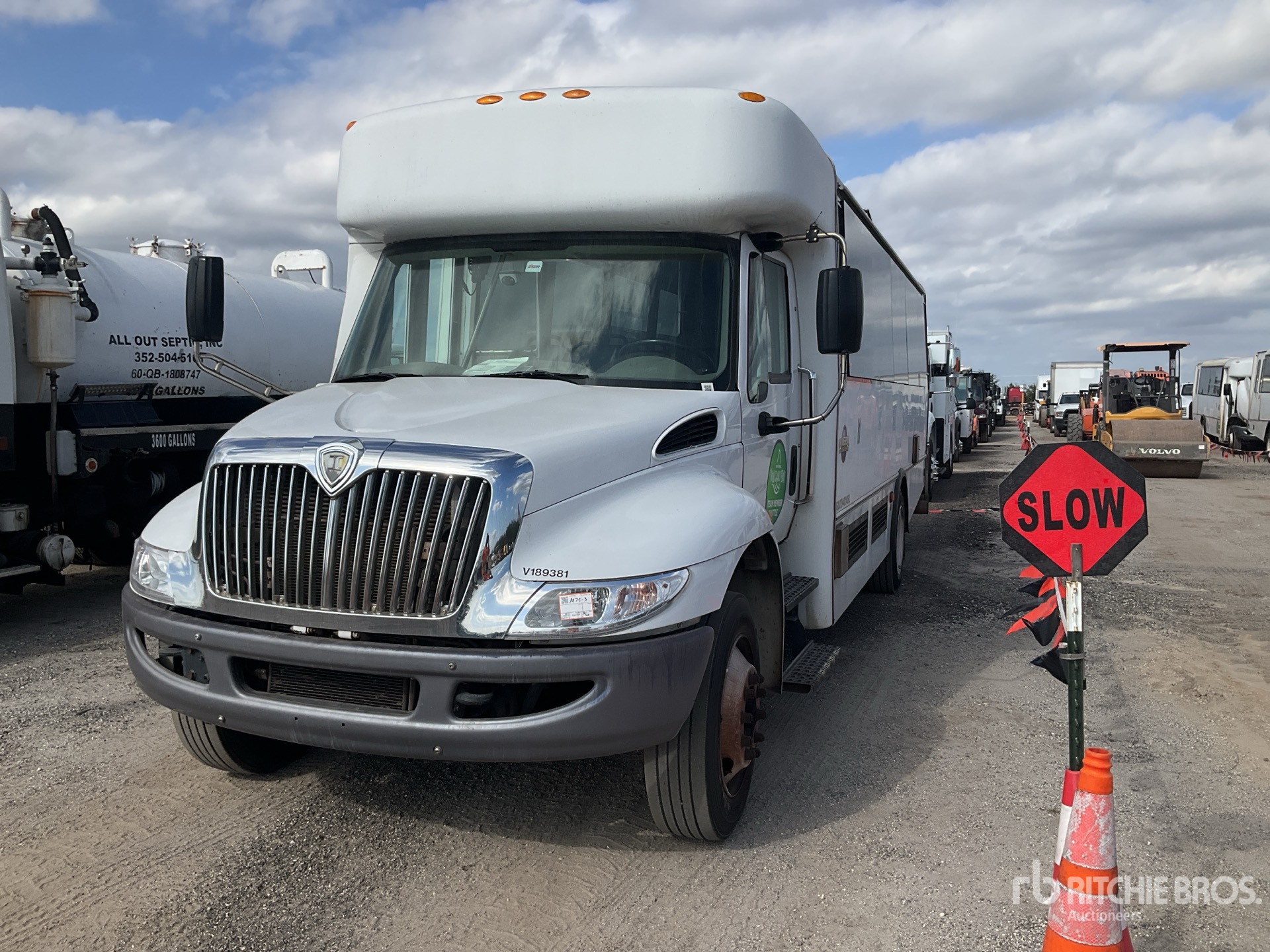 การวัดเป็นเพียงการประมาณการเท่านั้น ขนาดที่บรรทุกจริงอาจแตกต่างกันไปตามความสูงของรถบรรทุก/รถพ่วง และการกำหนดค่า/ตำแหน่งของเครื่องที่บรรทุก เป็นความรับผิดชอบของผู้ซื้อในการวัดน้ำหนักทั้งหมดก่อนออกจากสถานที่ประมูลของเรา เพื่อให้แน่ใจว่าน้ำหนักบรรทุกนั้นปลอดภัยสำหรับการขนส่ง การวัดทั้งหมดควรได้รับการตรวจสอบโดยผู้ซื้อ อย่าพึ่งพาการวัดเหล่านี้เพื่อวัตถุประสงค์ในการขนส่ง