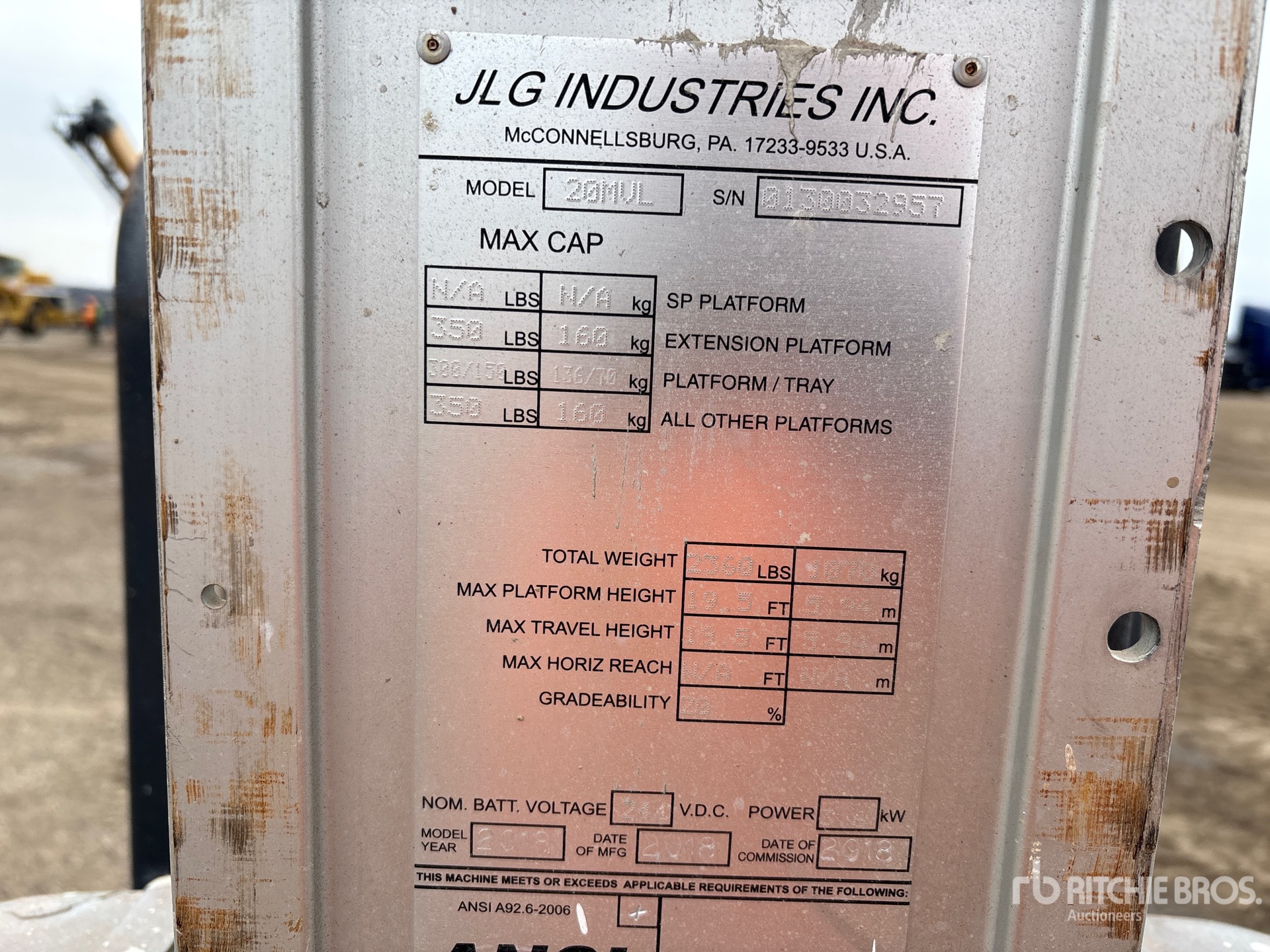 Please Be Aware That All Aerial Equipment Requires A Self-Supplied Safety Harness And Trained Personnel To Operate On All Ritchie Bros. Properties - On Lifts ;