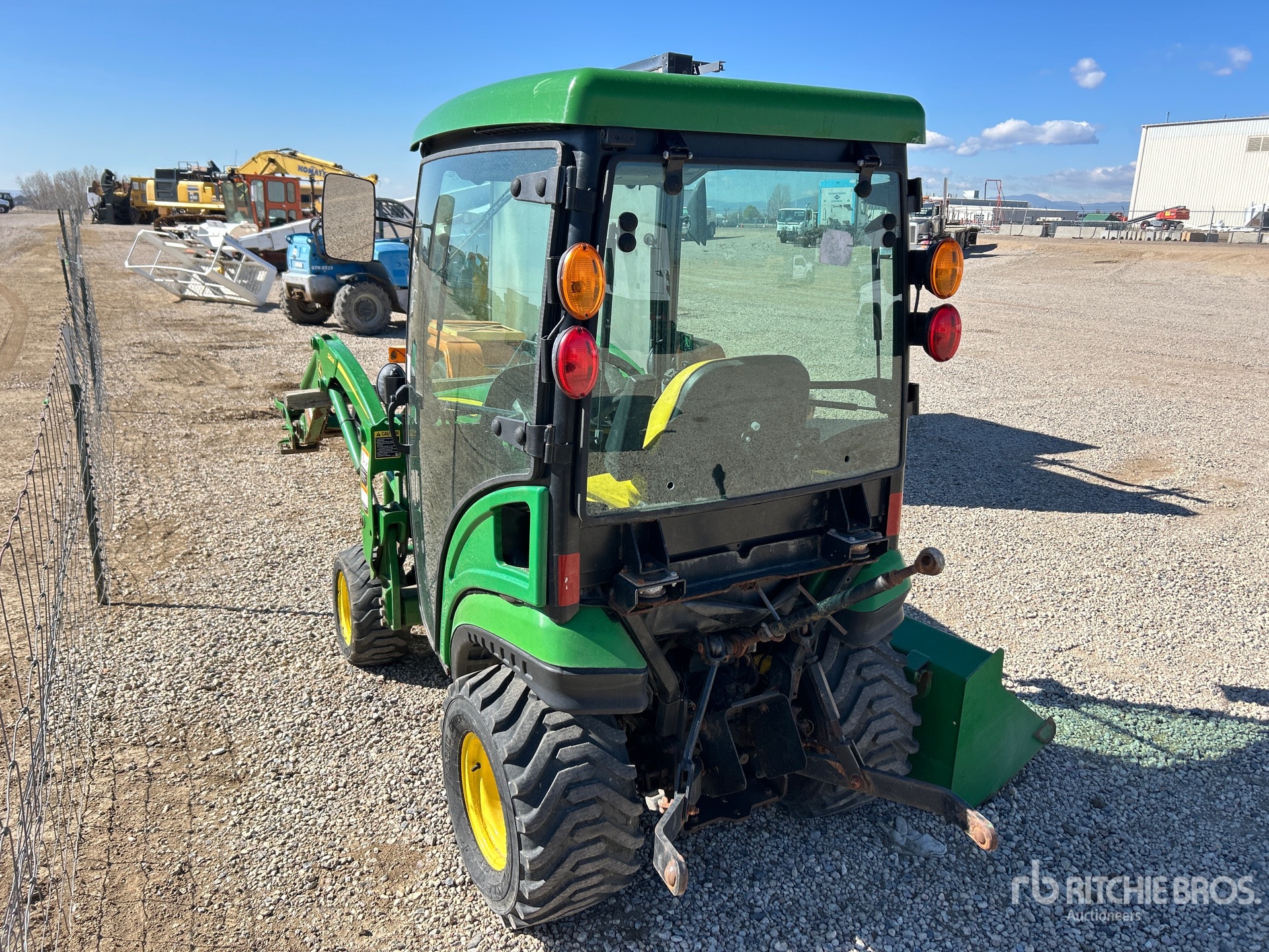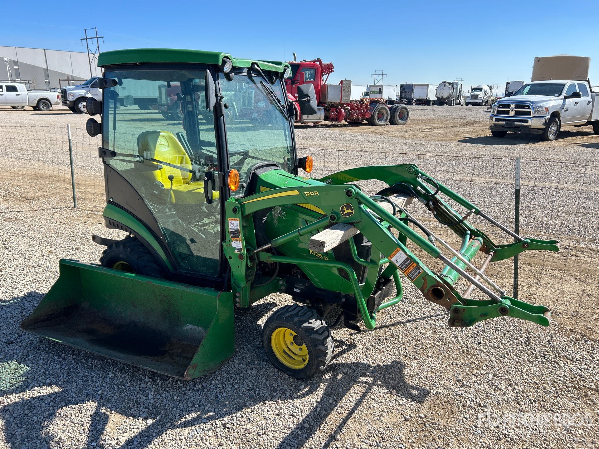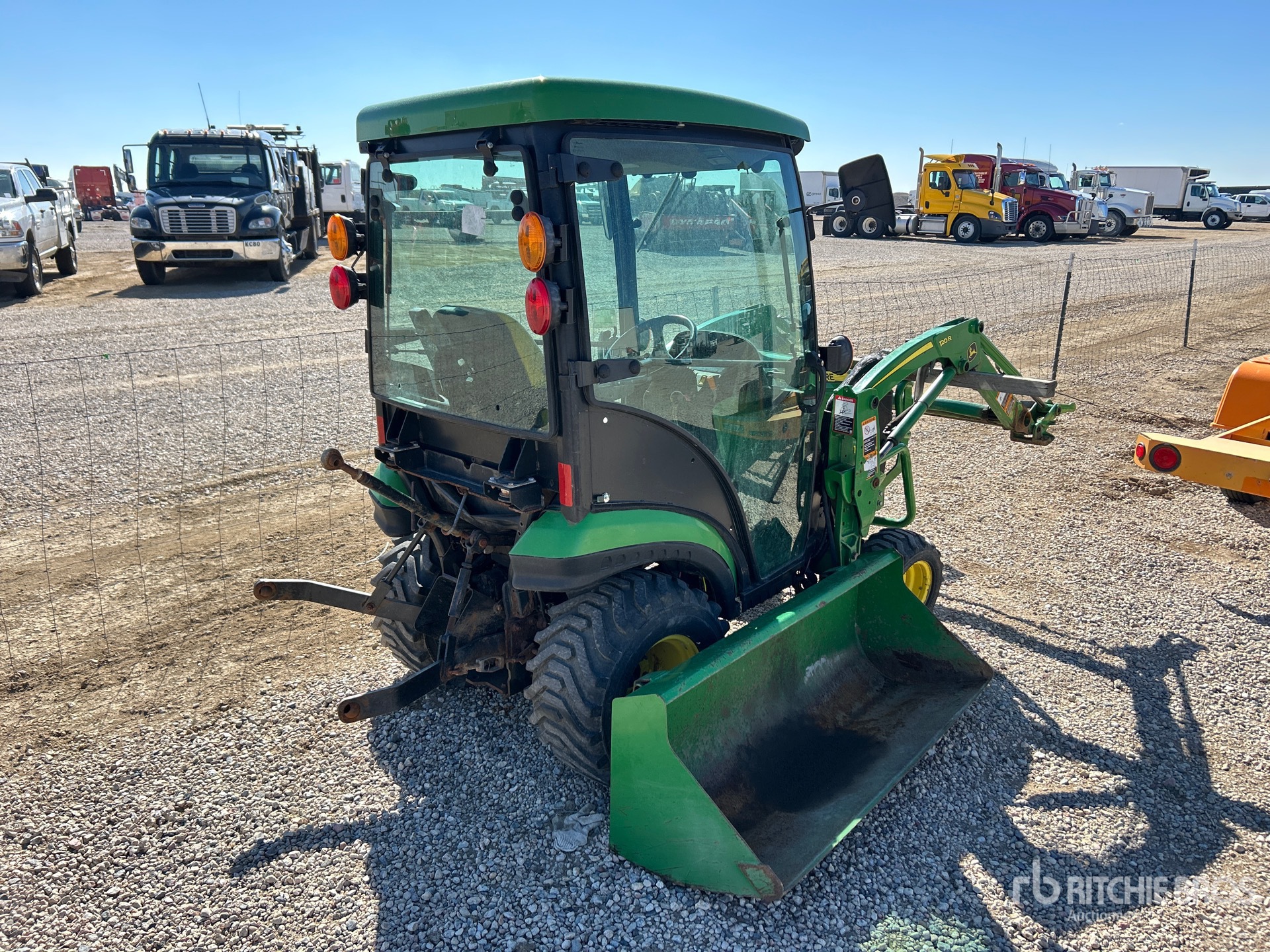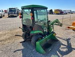 Enclosed Cab, Hydrostatic Drive, 24 hp Engine, 2018 US EPA Label, John Deere 120R Loader w/Joystick, 52 in Bucket, 540 PTO, 3-Point Hitch, 215/50-10 Front Tires, 305/60-12 Rear Tires