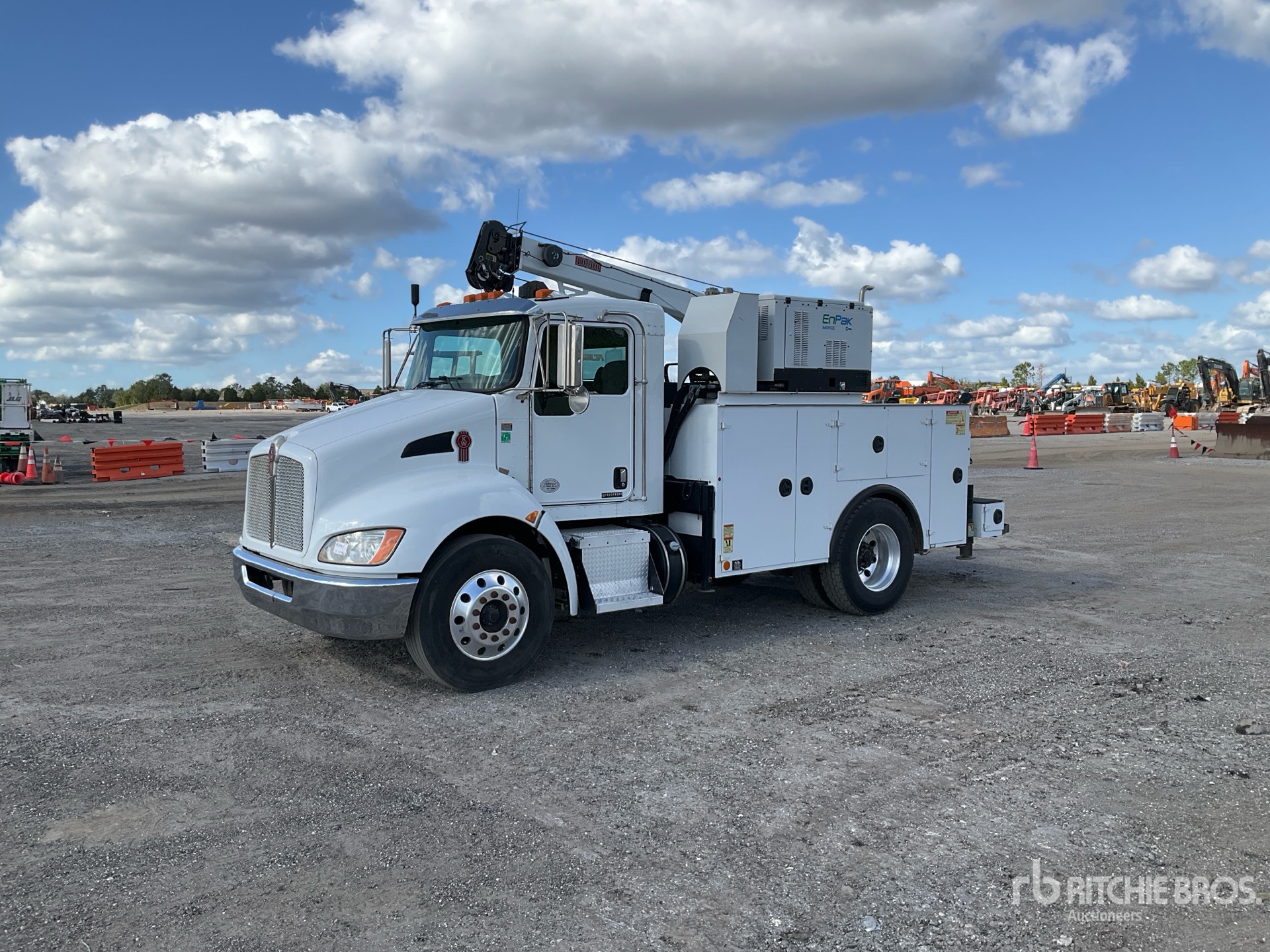 Cummins PX-7 6 Cylinder 6.7 L Diesel 280 hp Engine, 2017 US EPA Label, Requires Diesel Exhaust Fluid, 8623 Engine hrs, Engine Brake, Allison 2500 Automated Transmission, 10000 lb Front Axle, 16000 lb Rears, Dana Drive Axles, 5.29:1 Axle Ratio, 26000 lb GVWR, Aluminum Wheels, 11R22.5, Air Ride Suspension, 164 in Wheelbase, PTO, 12 ft 6 in Body, Hydraulic Stabilizers, 2017 IMT 10000-30 10000 lb 1 Section Hydraulic Crane, Wireless Remote Control, Miller EnPak A60HGE Generator Set