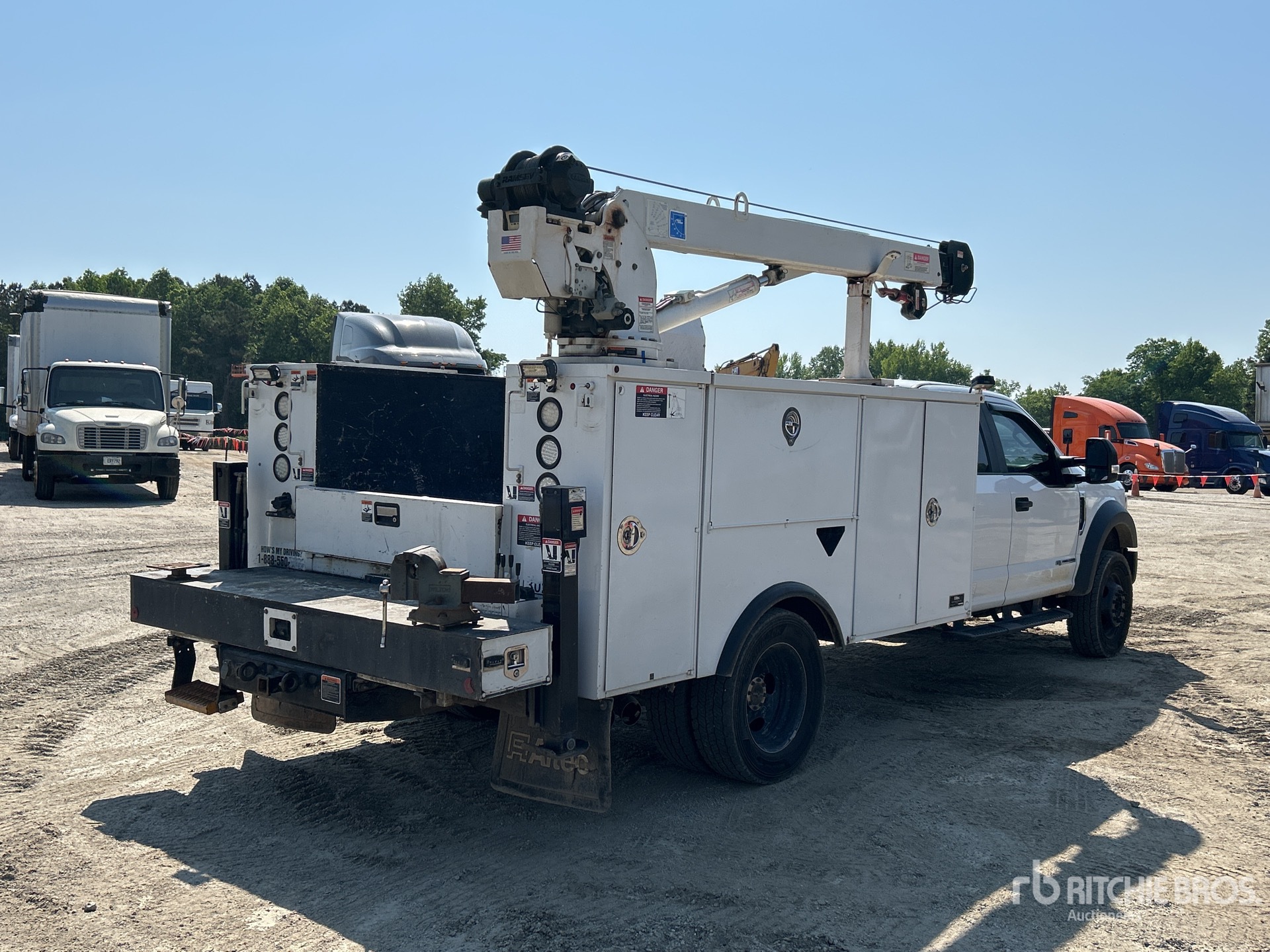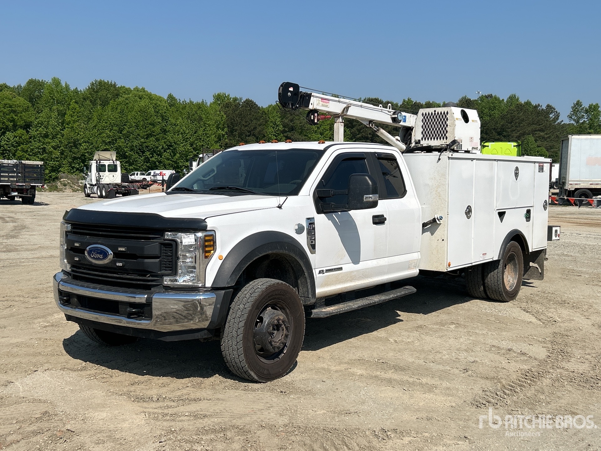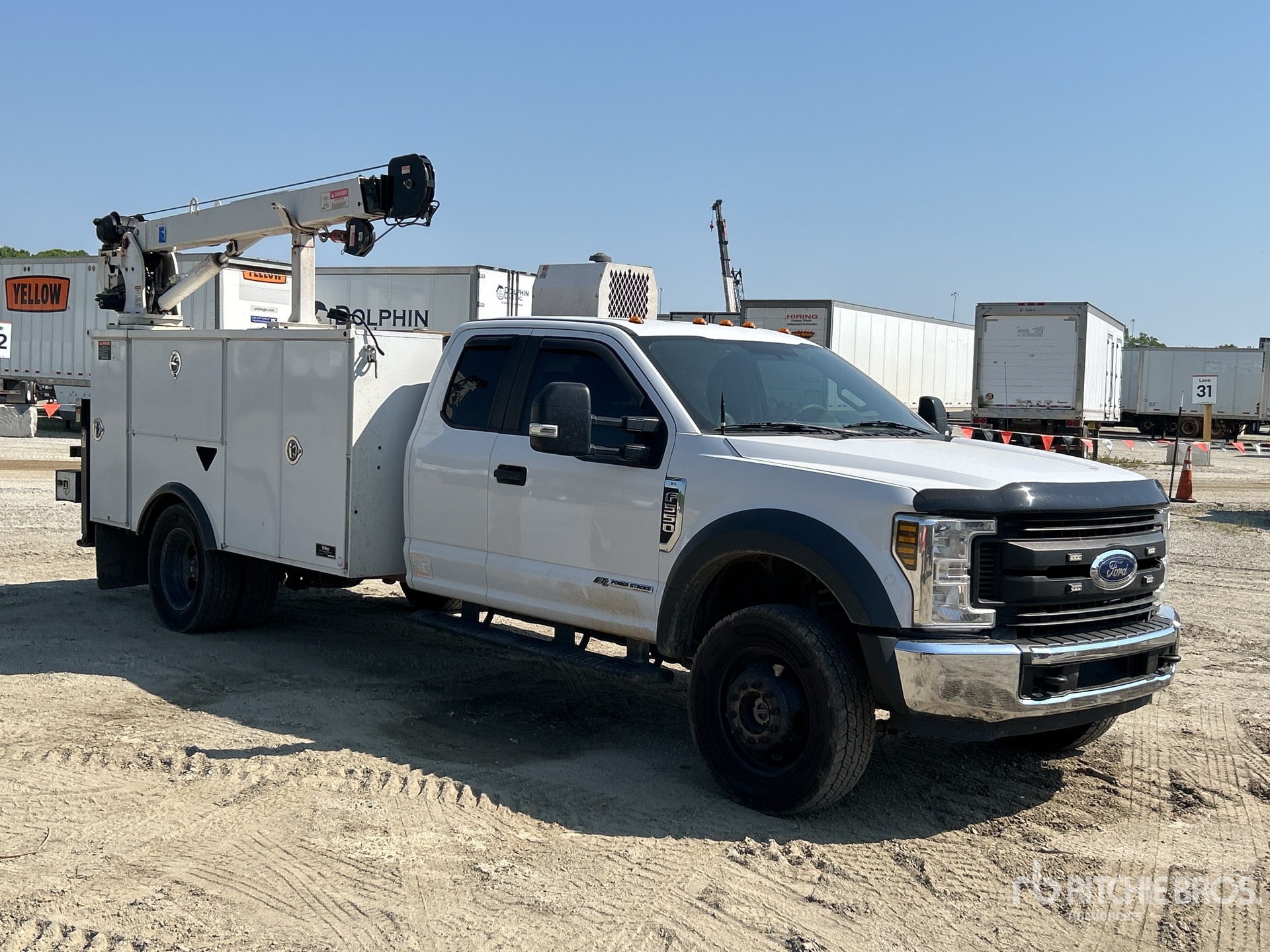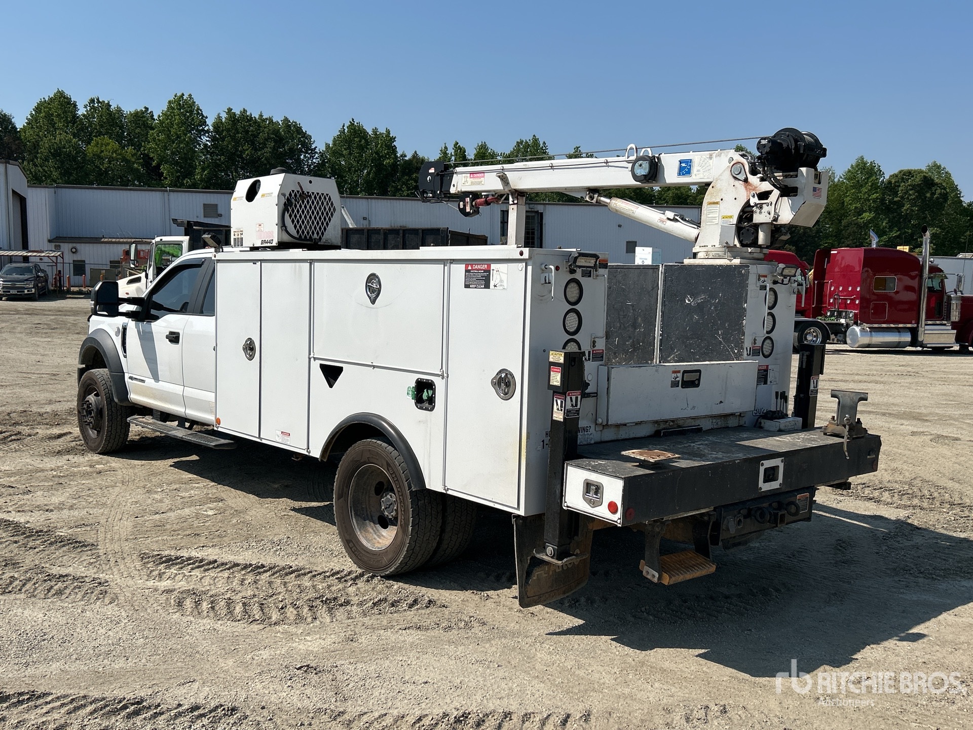 FORD 4V F Series 6.7 L Diesel 330 hp Engine, 2019 US EPA Label, Requires Diesel Exhaust Fluid, 6-Speed Automatic Transmission, 7000 lb Front Axle, 14706 lb Rears, 19500 lb GVWR, 245/70R19.5, Spring Suspension, 192 in Wheelbase, PTO, 2019 ALTEC Body, Hydraulic Stabilizers, Atlas HC-6 6000 lb 3 Section Hydraulic Crane, Wireless Remote Control, BOSS BA440 Hydraulic Air Compressor, Air Hose Reel