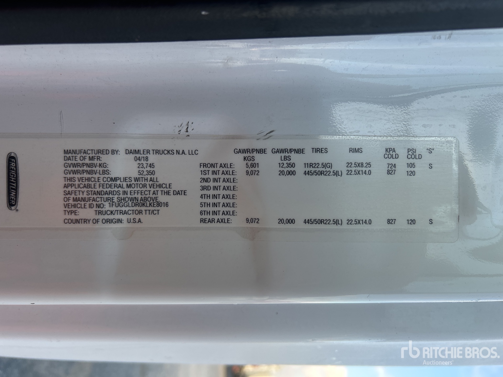 Detroit DD15 475 hp Engine, 2018 US EPA Label, 21553 Engine hrs, Eaton Fuller FAO-16810C-EA 10-Speed Automated Transmission, 12350 lb Front Axle, 40000 lb Rears, 52350 lb GVWR, Engine Brake, 48 in Mid Roof Sleeper Cab, 248 in Wheelbase, Air Suspension, Aluminum Front Wheels, 11R22.5 Front Tires, 295/75R22.5 Rear Tires, Air Sliding 5th Wheel, Dual Fuel Tanks