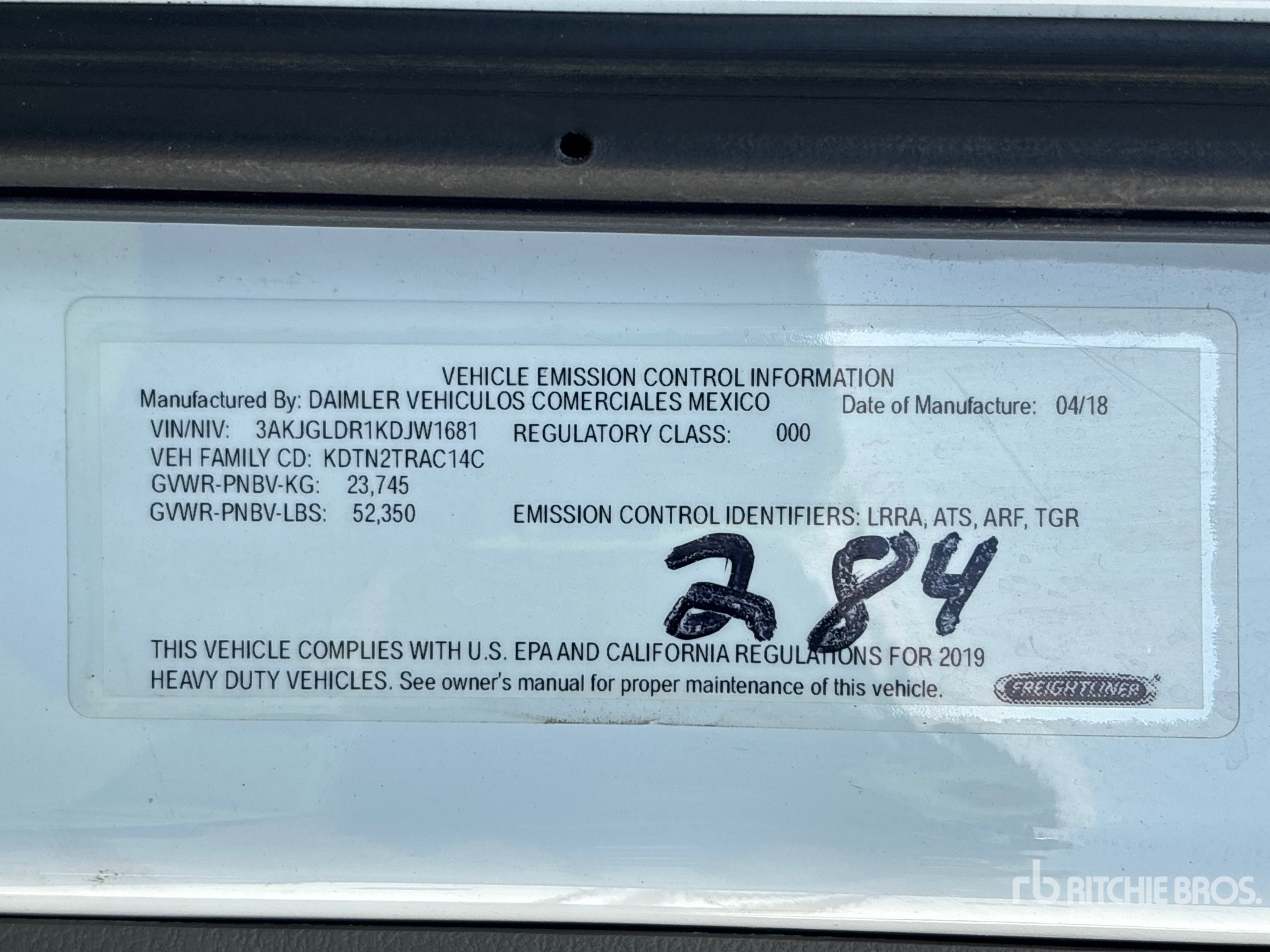 Detroit DD15 400 hp Engine, 2018 US EPA Label, Detroit DT12-1750-OH1 12-Speed Automated Transmission, 12350 lb Front Axle, 40000 lb Rears, 52350 lb GVWR, Engine Brake, 72 in High Rise Sleeper Cab, Bunk Beds, 226 in Wheelbase, Air Suspension, Aluminum Front Wheels, 295/75R22.5, Dual Fuel Tanks