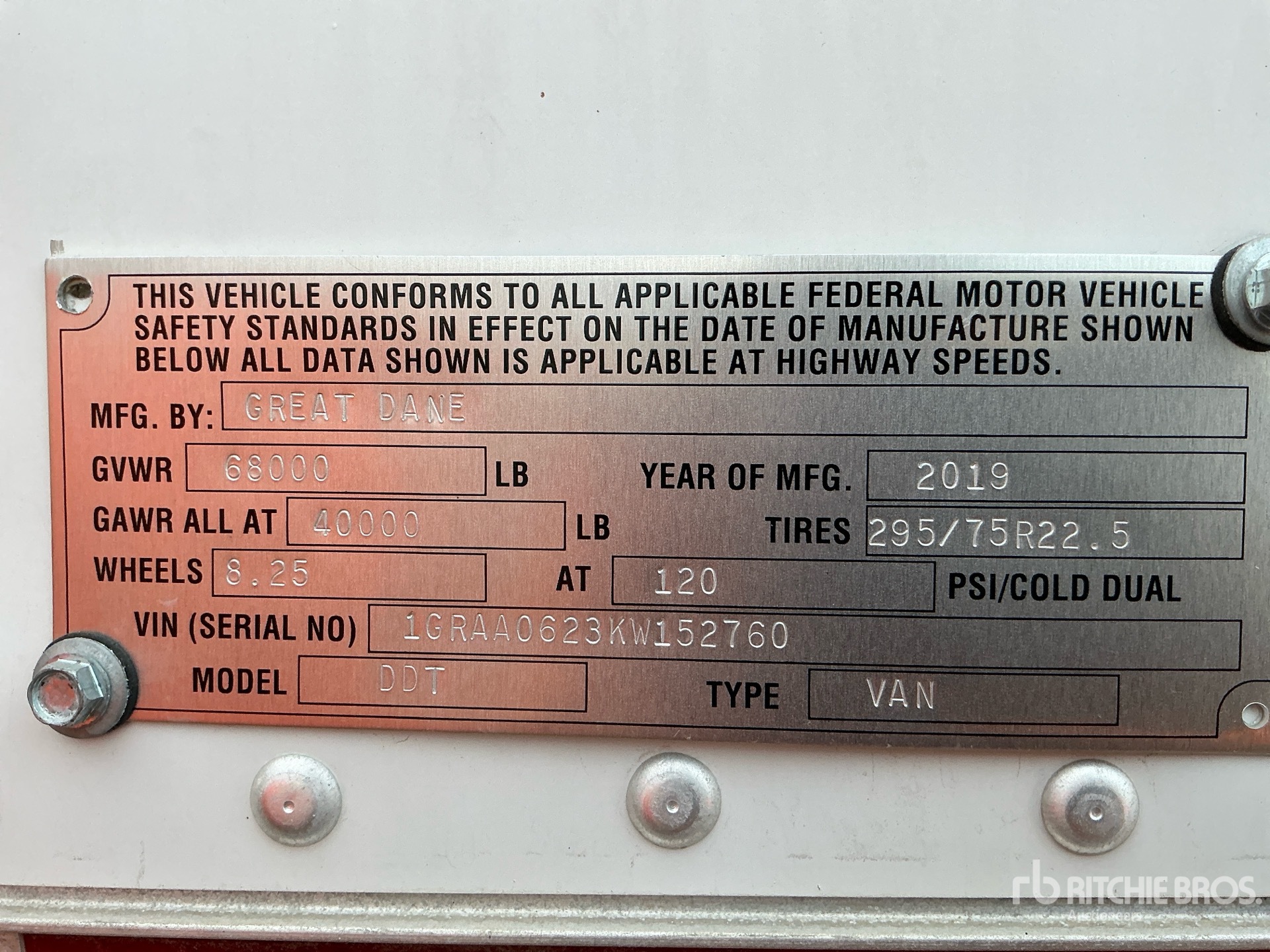 2018 Thermo King Precedent S-600 Refrigeration Unit, 9489 Total Hours, Air Ride Sliding Suspension, Side Skirts, Ducted Floor, Swing Door, 295/75R22.5 Tires 68000 lb GVWR