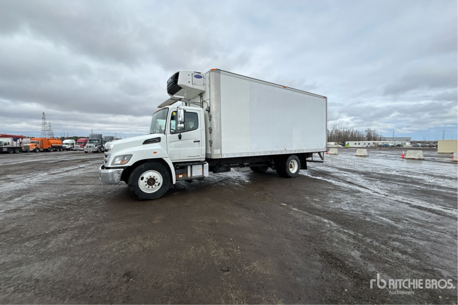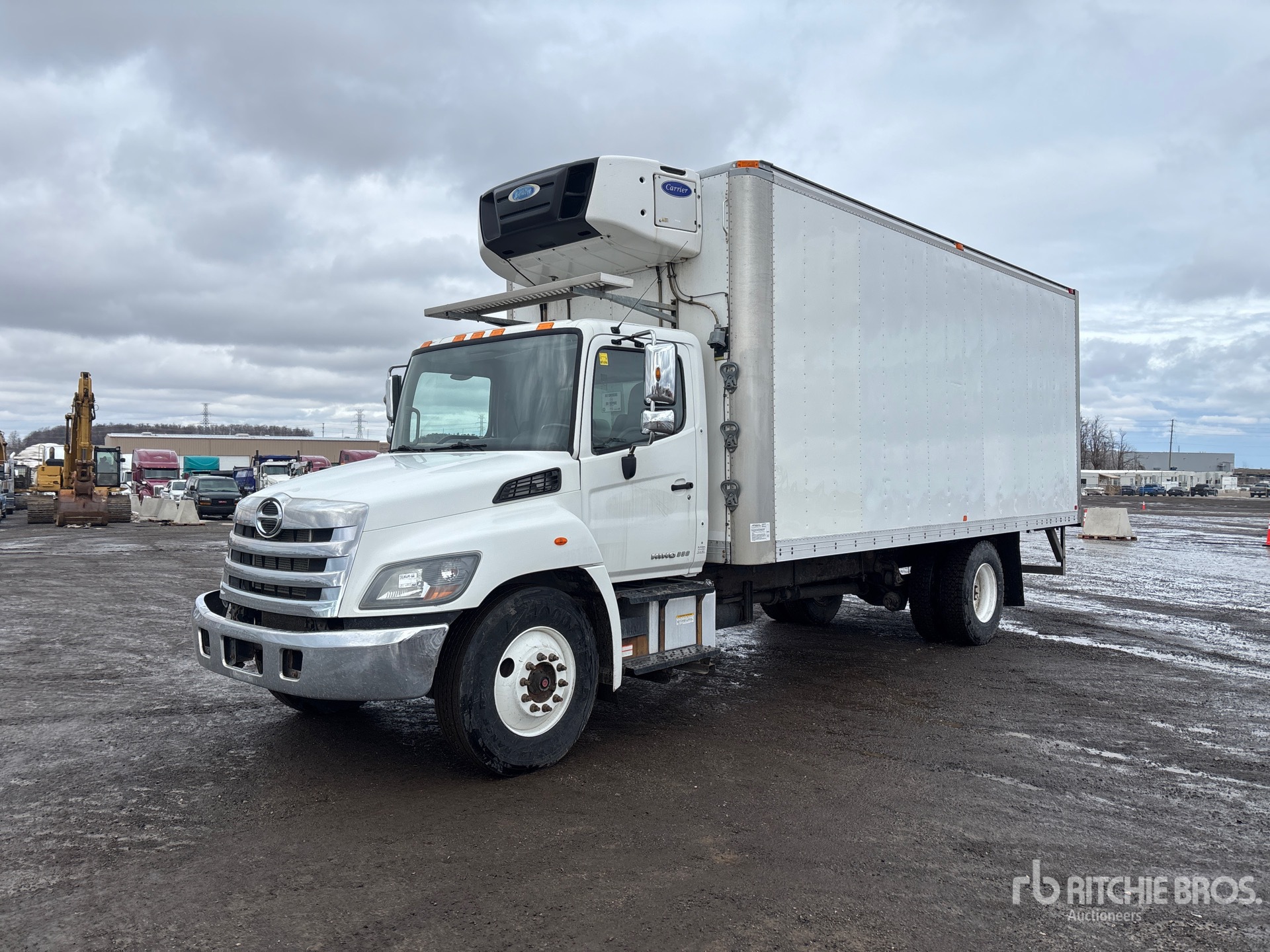 Hino 6 Cylinder 7.7 L Diesel 260 hp Engine, 2018 US EPA Label, CARB Compliant, Requires Diesel Exhaust Fluid, 9880 Engine hrs, Automatic Transmission, 12000 lb Front Axle, 21000 lb Rears, 33000 lb GVWR, 11R22.5, Air Ride Suspension, 236 in Wheelbase, Carrier Reefer Unit, 4090 Reefer Total Hours:, 22 ft x 102 in Wide x 92 in High Body