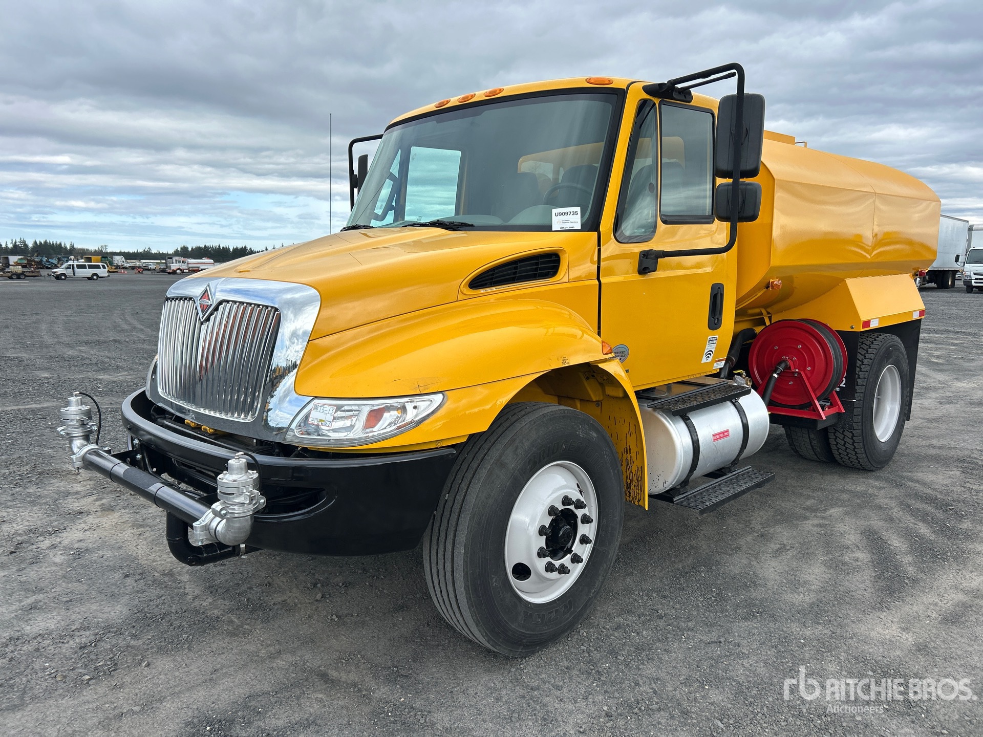 Cummins B6.7 220 6 Cylinder 6.7 L Diesel 220 hp Engine, 2018 US EPA Label, Requires Diesel Exhaust Fluid, 3492 Engine hrs, Automatic Transmission, 10000 lb Front Axle, 17500 lb Rears, 25999 lb GVWR, 11R22.5, Air Ride Suspension, 154 in Wheelbase, PTO, 2000 gal Steel Tank, PTO Driven Pump, 5 ft 6 in, Spray Bar, Hose Reel, Front Spray, Rear Spray, Side Spray