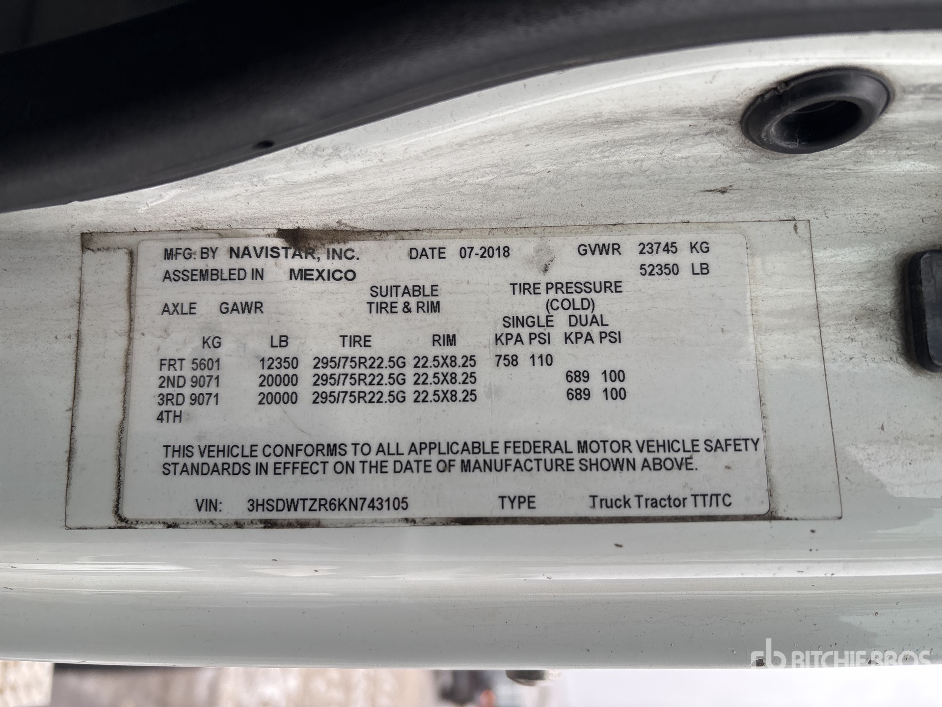 International A26 430 hp Engine, 2018 US EPA Label, 10747 Engine hrs, Eaton Fuller 10-Speed Manual Transmission, 12350 lb Front Axle, 40000 lb Rears, 52350 lb GVWR, Engine Brake, 178 in Wheelbase, Air Suspension, Aluminum Wheels, 11R22.5, Air Sliding 5th Wheel, Dual Fuel Tanks