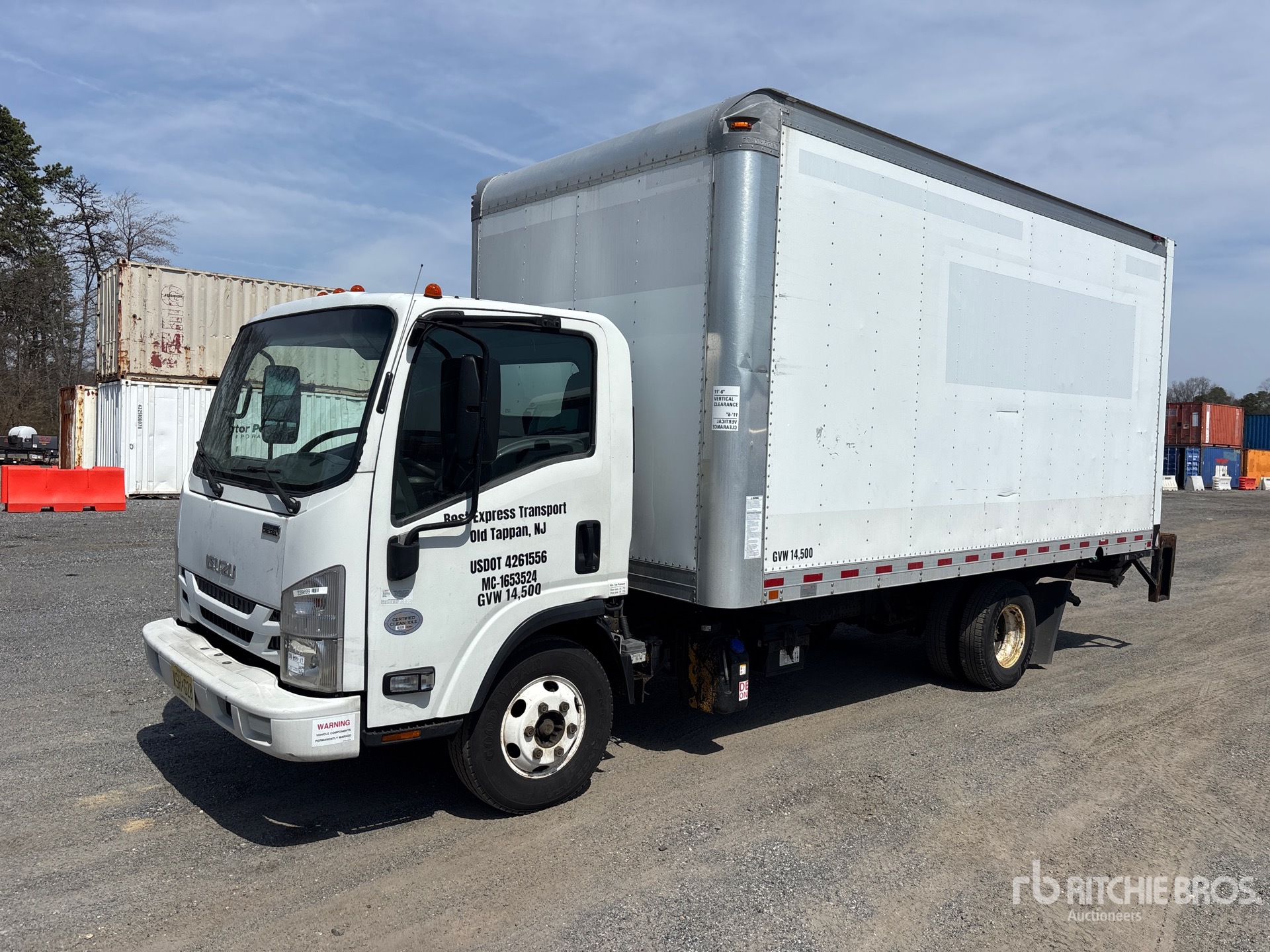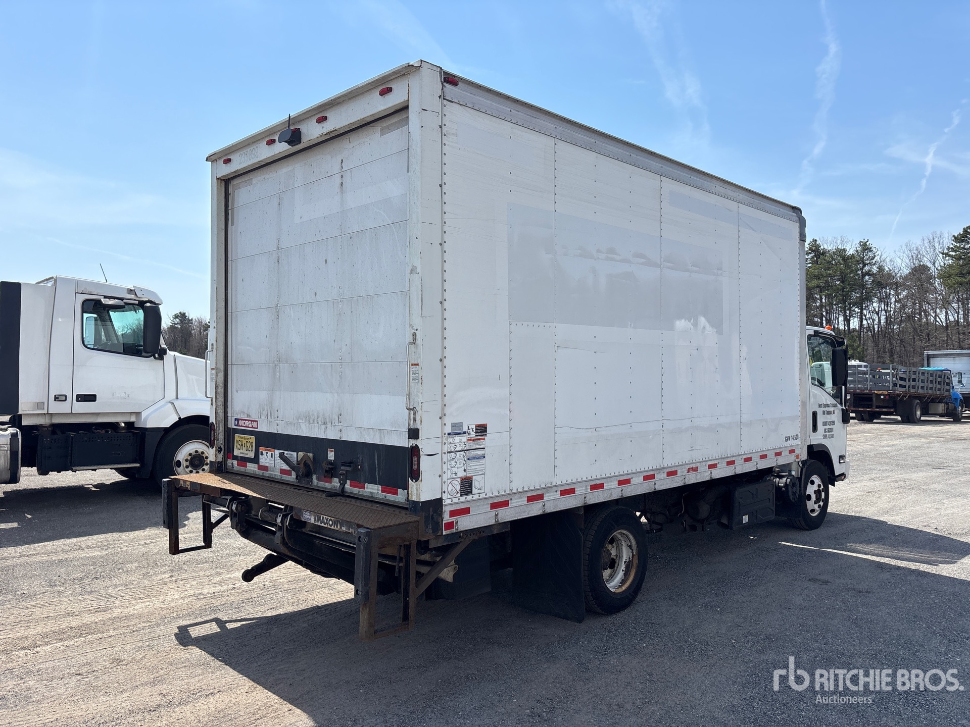 Isuzu 6 Cylinder Diesel Engine, 2018 US EPA Label, Requires Diesel Exhaust Fluid, 8570 Engine hrs, Automatic Transmission, 5360 lb Front Axle, 9880 lb Rears, 14500 lb GVWR, 215/85R16, Spring Suspension, 152 in Wheelbase, Morgan 16 ft x 96 in Wide x 91 in High Body, Liftgate