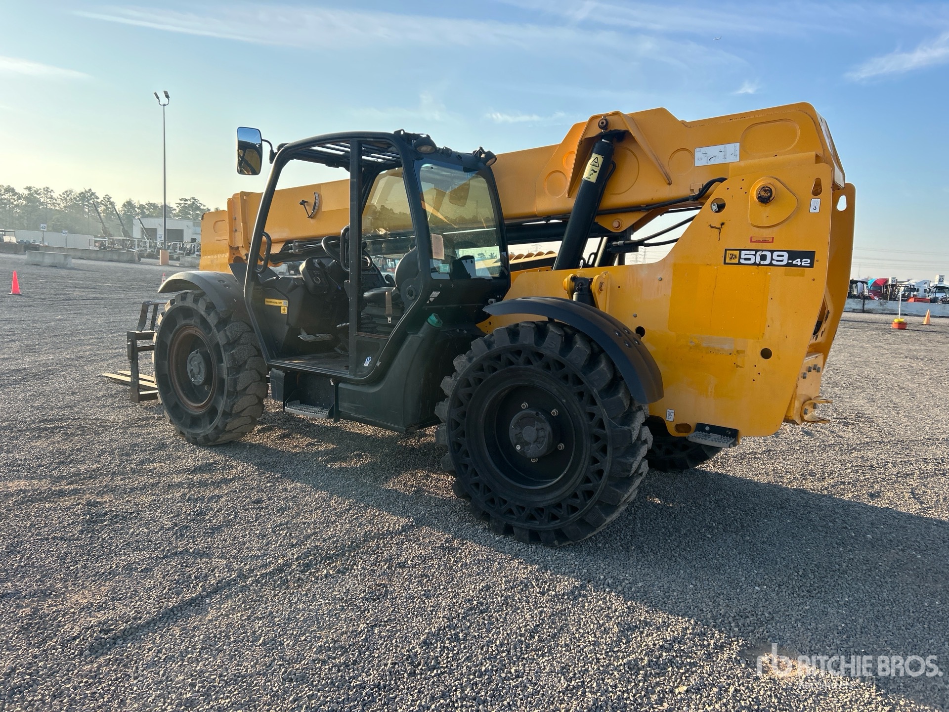 Located in Lane 13 Spot 11, Open Operator Station, 42 ft Max Lift Height, 9000 lb Max Lift Capacity, 60 in Forks, Frame Leveling, Auxiliary Hydraulic Plumbing, 14.00-24 Aperture Tires, Equipment-from-Herc-Rentals