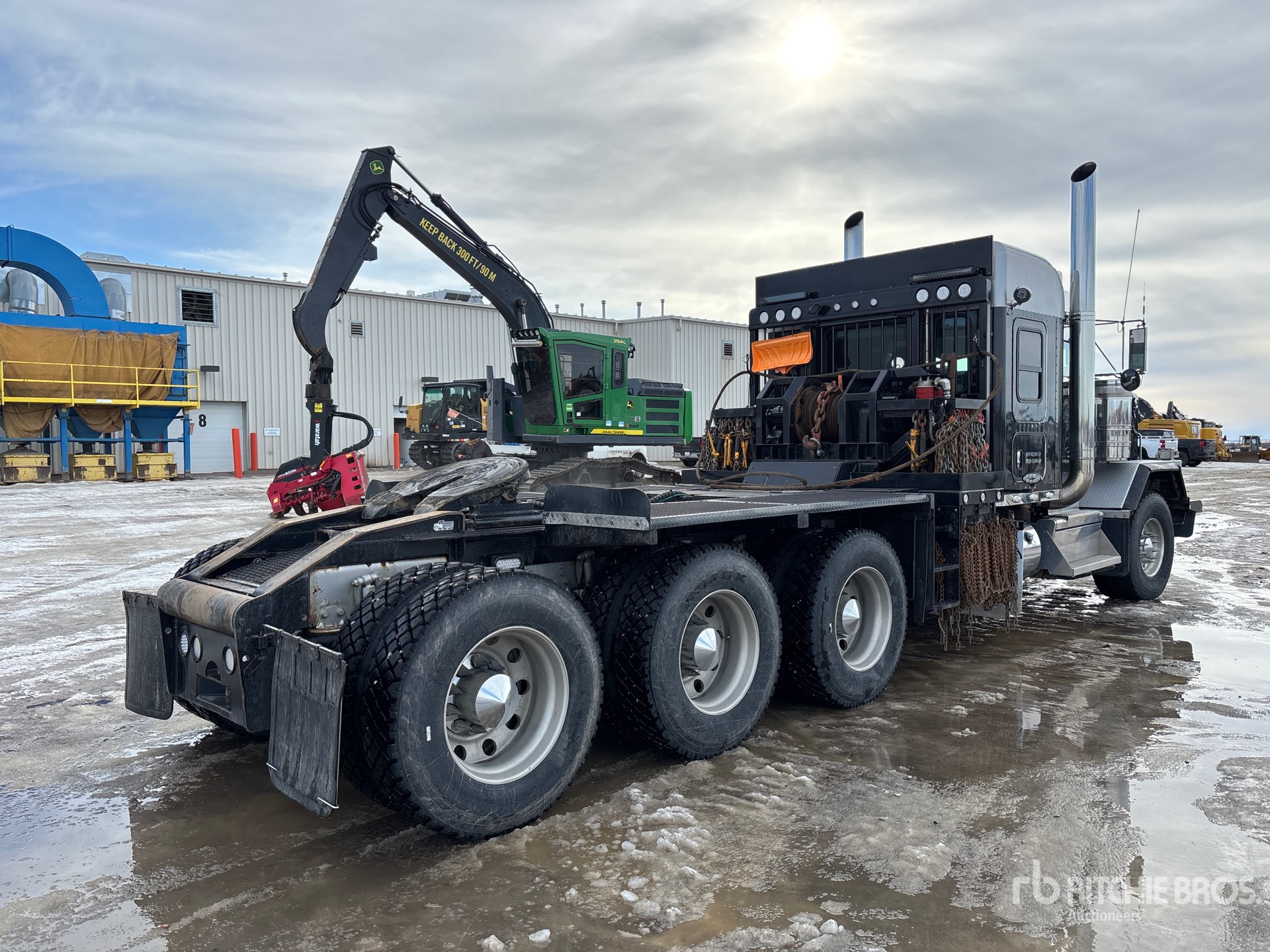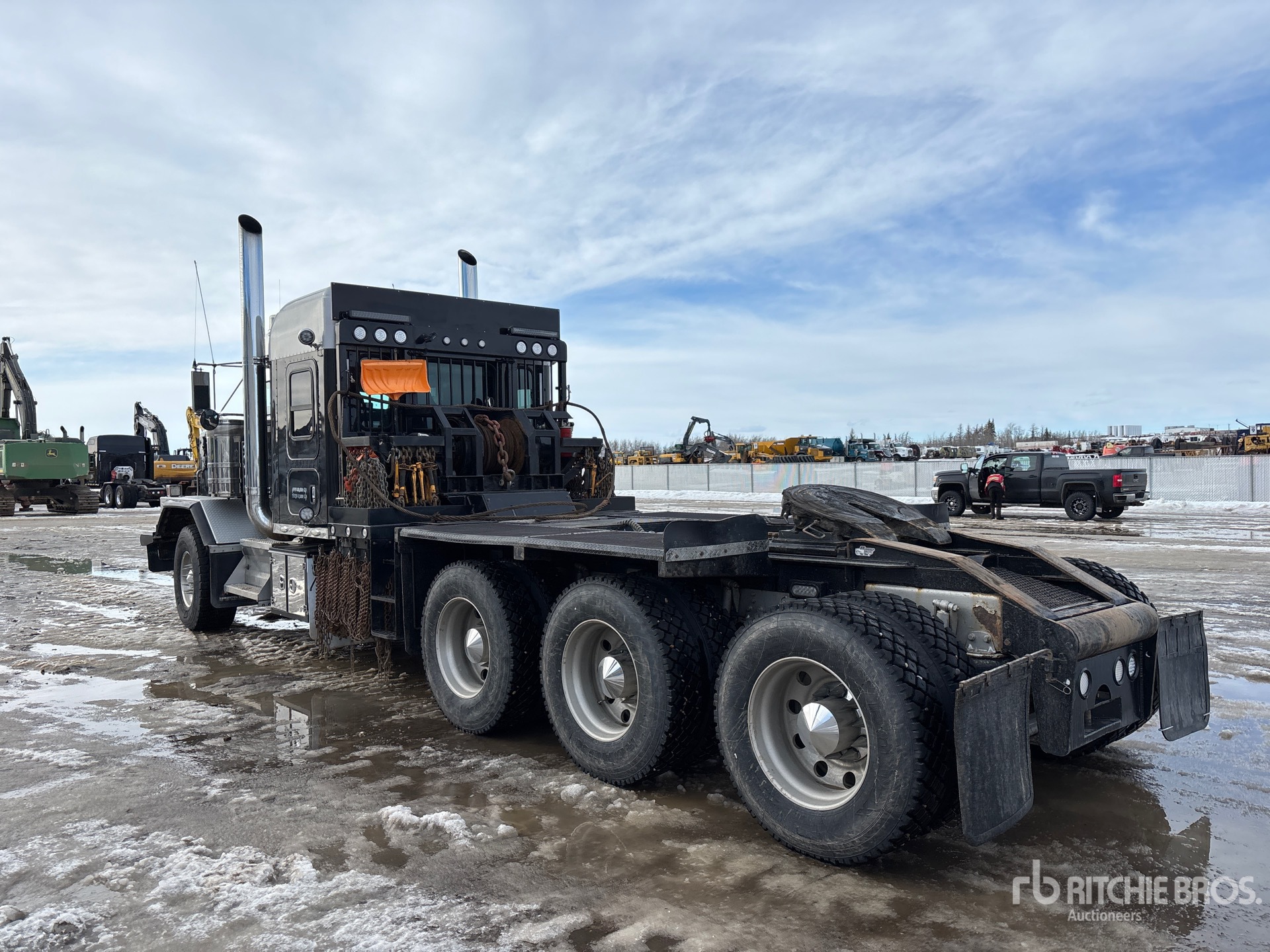 Cummins X15 6 Cylinder Diesel 605 hp Engine, Engine Coolant Heater, Positive Air Shutoff, Webasto Engine Coolant Heater, 4400 Engine hrs, Engine Brake, Eaton Fuller RTLO-20918B 18-Speed Manual Transmission, Triple Differential Locks, 19780 lb Front Axle, 61000 lb Rears, Meritor RZ-XX-166PWT Drive Axles, 4.56:1 Axle Ratio, 80000 lb GVWR, Air Ride Cab, 52 in Mid Roof Sleeper Cab, Aluminum Wheels, 445/65R22.5 Front Tires, 11R24.5 Rear Tires, Dual Steering Boxes, Double Frame, Neway Air Ride Suspension, 266 in Wheelbase, PTO, Tail Roll, Tulsa 60000 kg Winch, Lowboy Ramps, Complete-Dispersal-for-T-Ruckin-Oilfield-Services-Ltd