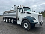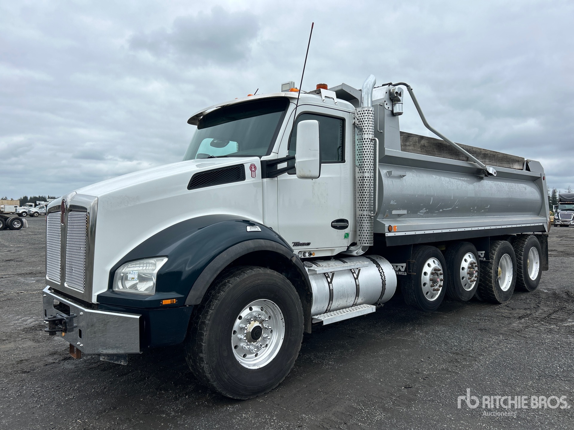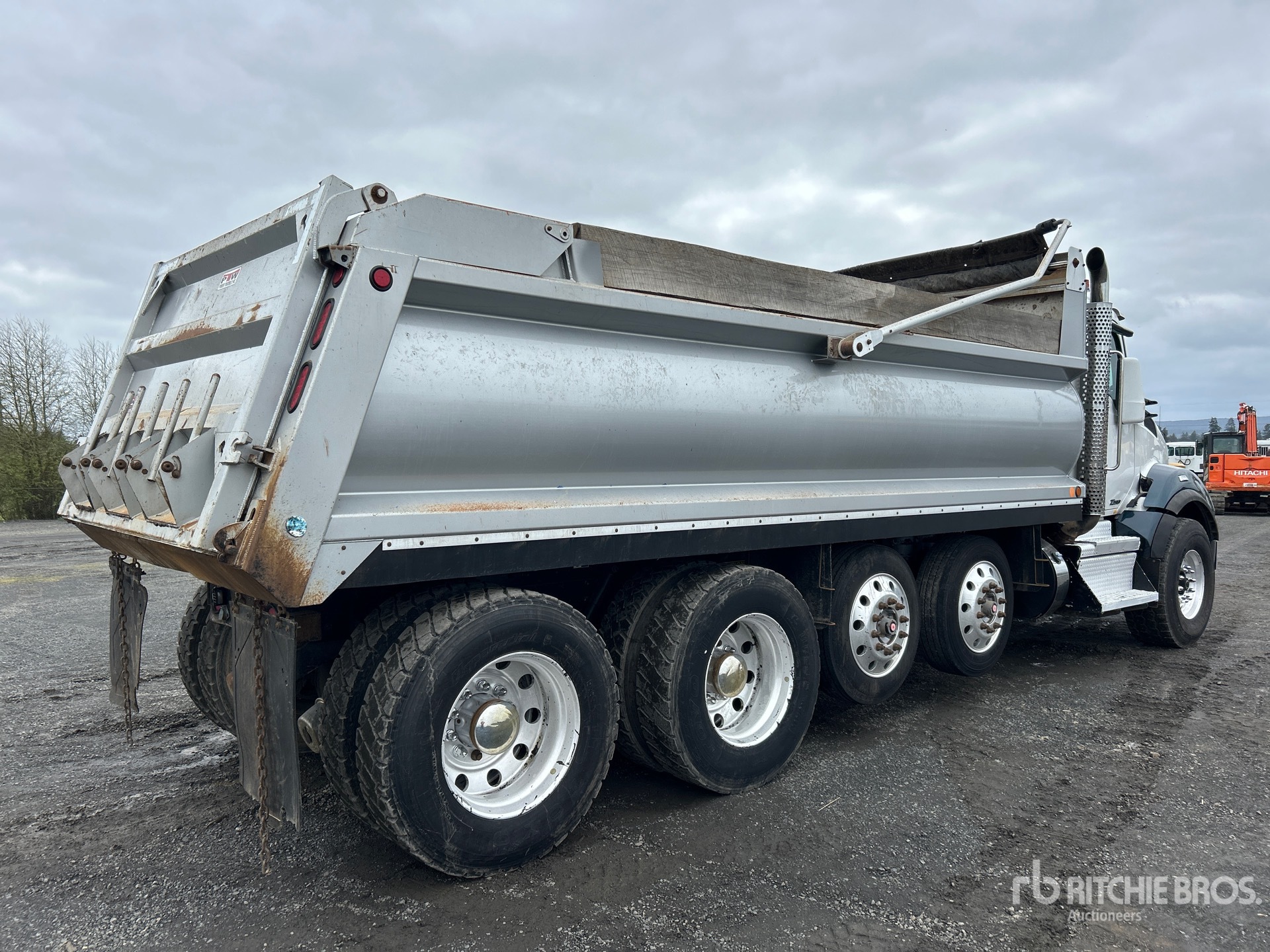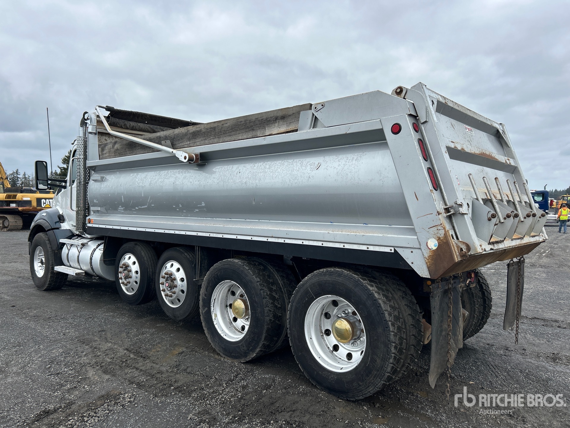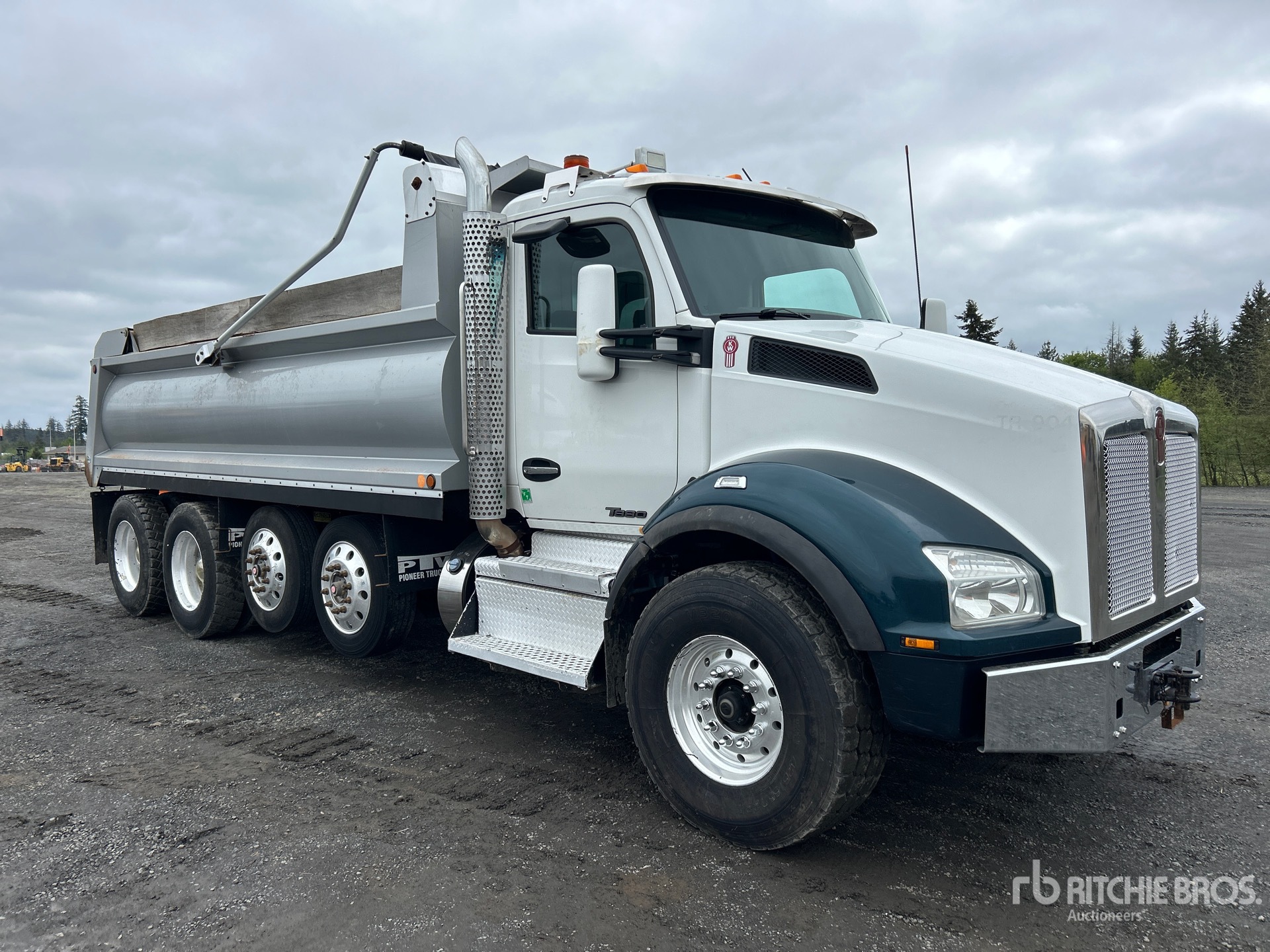 Located in Lane 10 Spot 2, Paccar MX-13 6 Cylinder 12.9 L Diesel 510 hp Engine, 2018 US EPA Label, Requires Diesel Exhaust Fluid, 12297 Engine hrs, Engine Brake, Allison 4500 Automatic Transmission, Double Differential Locks, 18000 lb Front Axle, 68040 lb Rears, Dana D46-164PEH Drive Axles, 4.56:1 Axle Ratio, 86040 lb GVWR, Air Ride Cab, Aluminum Wheels, 425/65R22.5 Front Tires, 11R24.5 Rear Tires, 2 Steerable Air Lift Pusher Axle, Dual Steering Boxes, Chalmers Suspension, 246 in Wheelbase, PTO, Pioneer 19 ft 6 in Long x 3 ft 3 in High Steel Body, Bed Vibrator, Electric Roll Tarp, High-Lift Tailgate, Rear Hydraulics, Triple Tailgate Chutes, Pintle Hitch