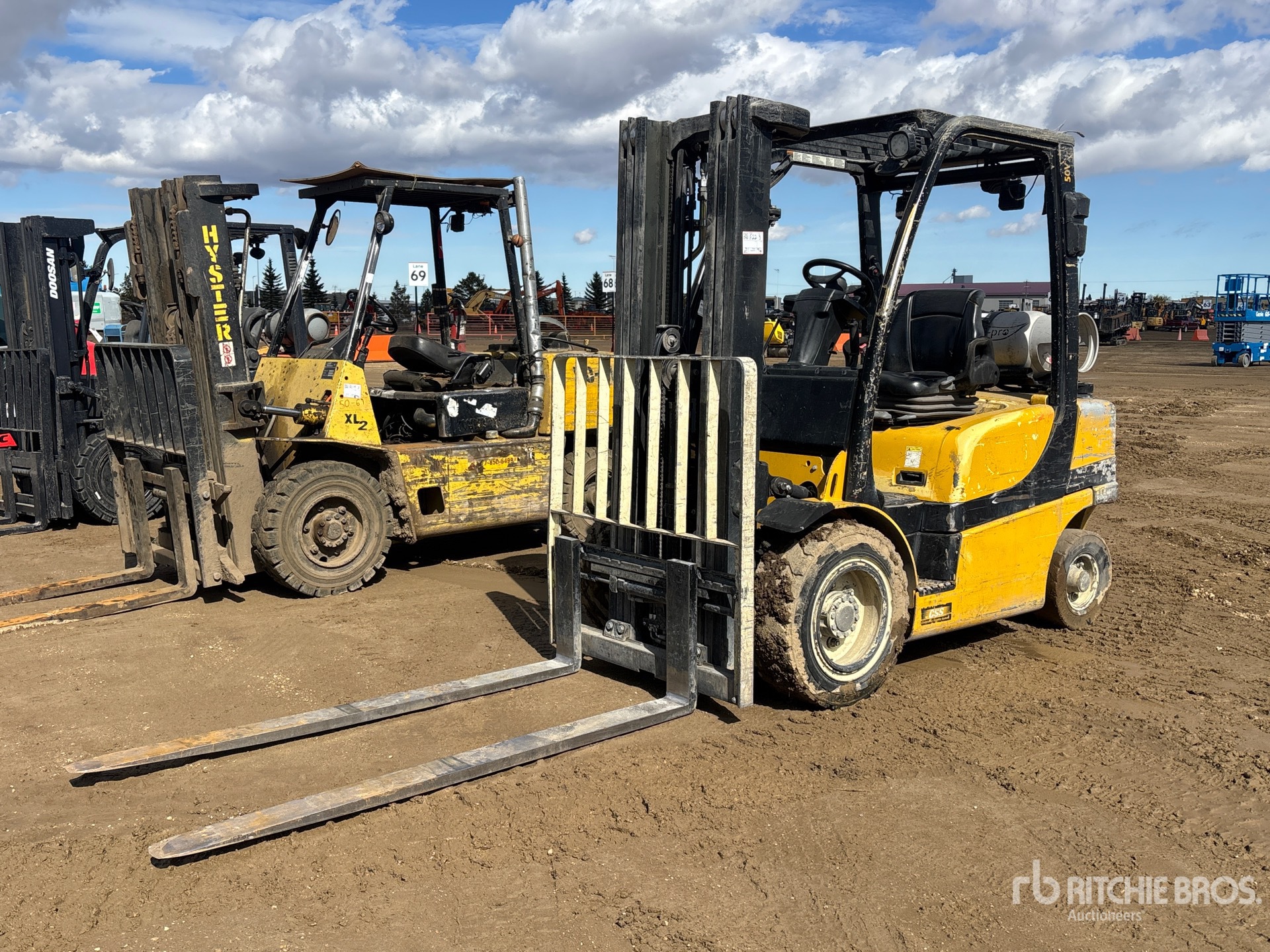3 Stage Mast, Full Free Lift, 189 in Max Lift Height, 83 in Lowered Mast Height, 72 in Forks, Side Shift, US EPA Label, Impco 4 Cylinder 2.2 L LPG Engine