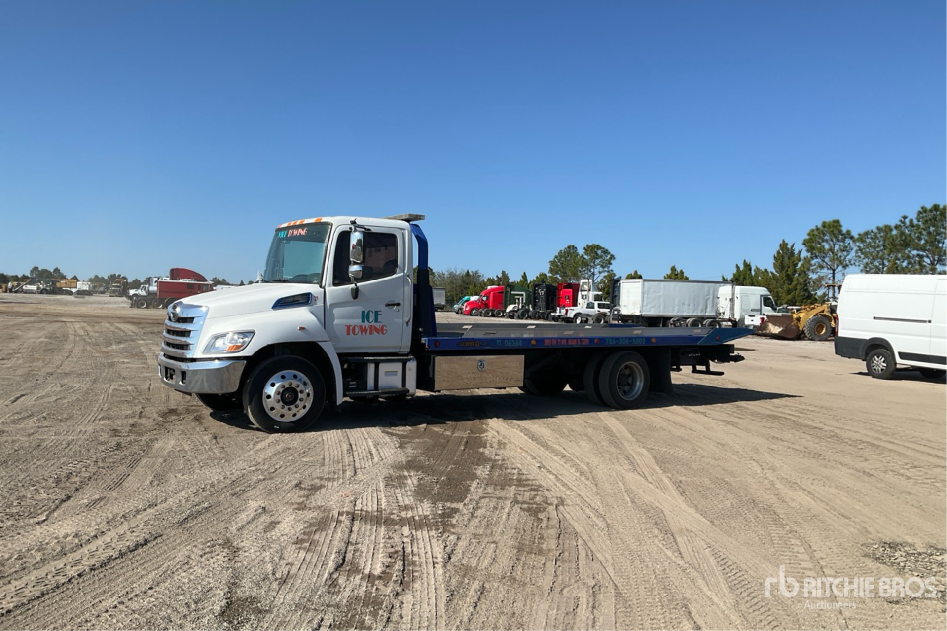 HINO JO8E-VB 6 Cylinder Diesel 260 hp Engine, 2018 US EPA Label, Automated Transmission, 10000 lb Front Axle, 19000 lb Rears, 26000 lb GVWR, Aluminum Wheels, 255/70R22.5 Front Tires, 255/70R22.5 Rear Tires, Spring Suspension, 216 in Wheelbase, PTO, JLG INDUSTRIES 22SRRD6T-W-LF Rollback Body, 20 ft 8 in x 102 in Bed, HD234 5000 lb Winch