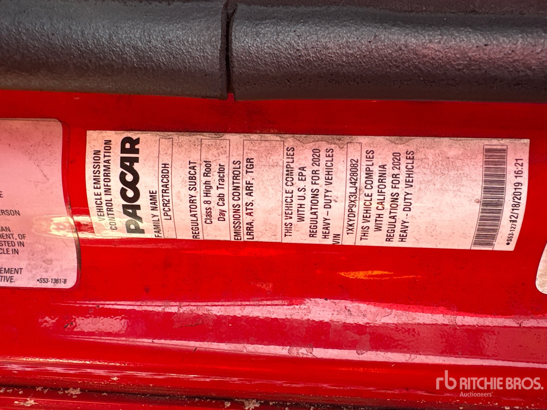 Paccar MX-13 455 hp Engine, 2019 US EPA Label, Paccar PO-16F112C 12-Speed Automated, 13200 lb Front Axle, 38000 lb Rears, 51200 lb GVWR, 180 in Wheelbase, Air Suspension, 295/75R22.5