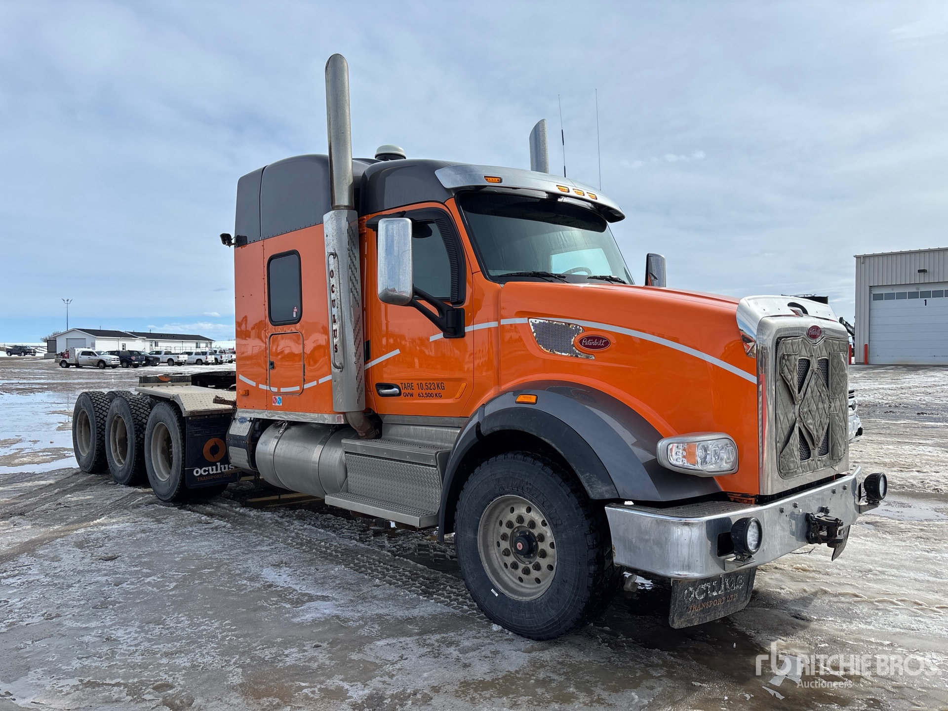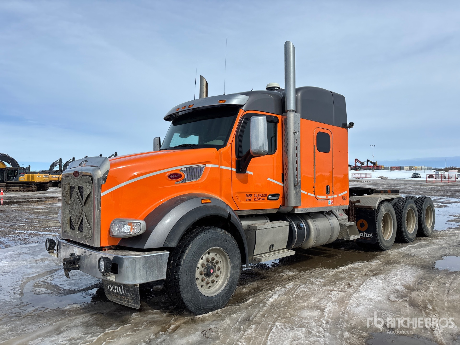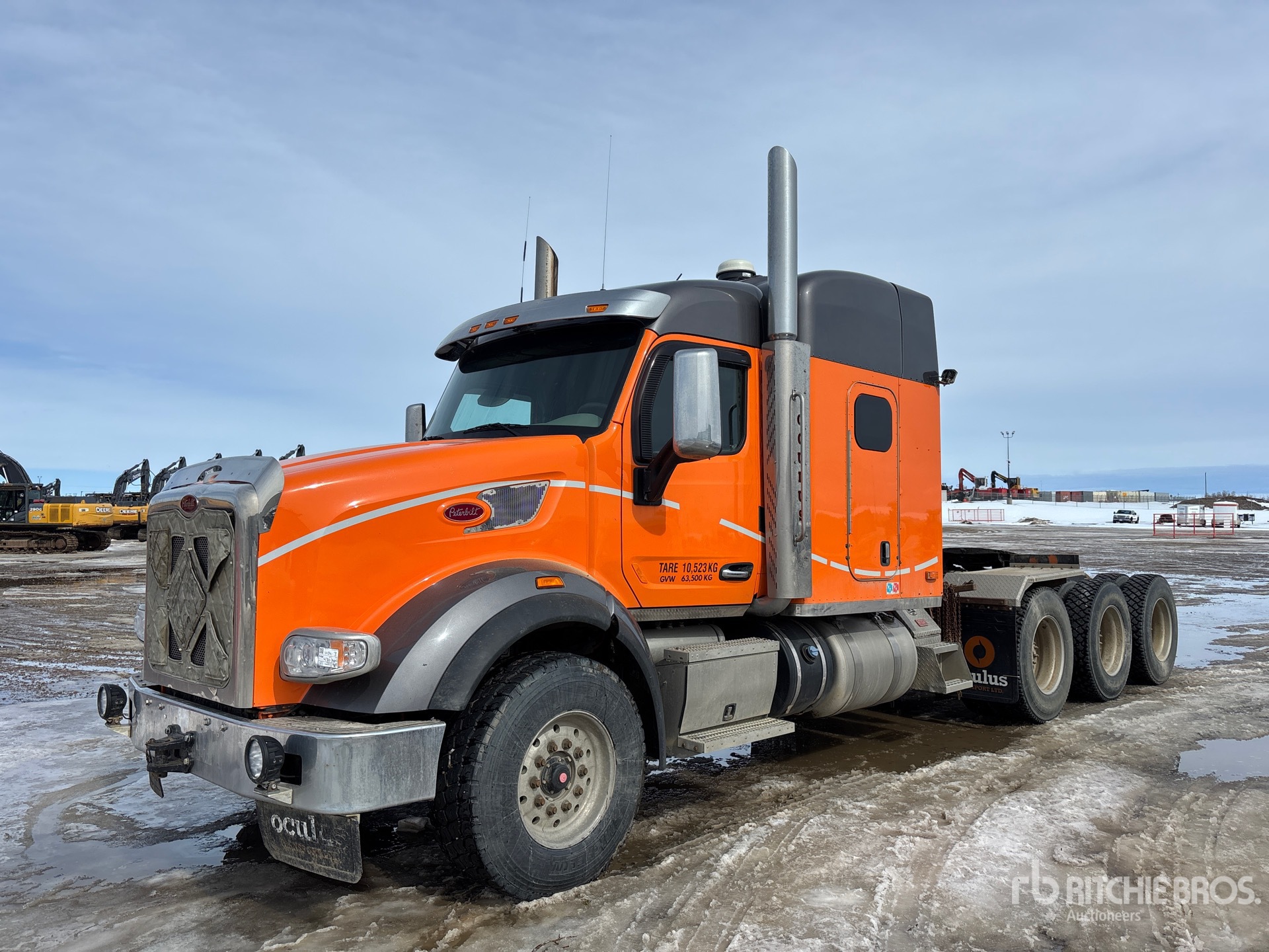 Paccar MX-13 510 hp Engine, 2019 US EPA Label, Eaton Fuller 18-Speed Manual Transmission, 16000 lb Front Axle, 66000 lb Rears, 82000 lb GVWR, Engine Brake, 48 in Mid Roof Sleeper Cab, Carrier Sleeper Air Conditioner, 260 in Wheelbase, Air Suspension, Aluminum Wheels, 385/65R22.5 Front Tires, 11R24.5 Rear Tires, Dual Steering Boxes, Hydraulic System, Air Sliding 5th Wheel, Dual Fuel Tanks