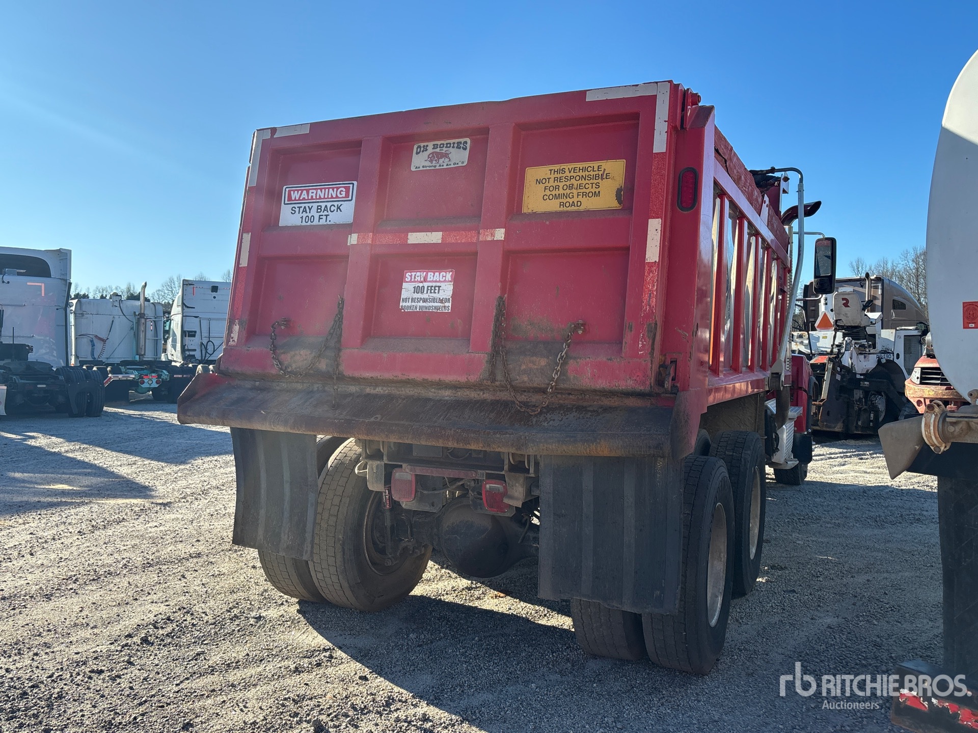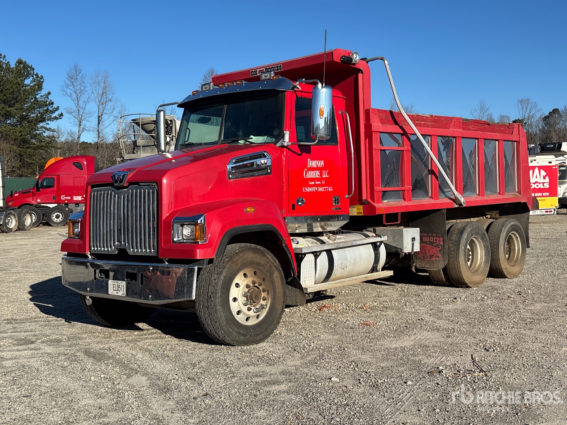 Detroit DD13 6 Cylinder 12.8 L Diesel 470 hp Engine, 2019 US EPA Label, Requires Diesel Exhaust Fluid, Engine Brake, Allison 4500 Automatic Transmission, Differential Lock, 18000 lb Front Axle, 40000 lb Rears, Meritor MT-40-14X Drive Axles, 4.11:1 Axle Ratio, 58000 lb GVWR, Air Ride Cab, Aluminum Outer Wheels, 315/80R22.5 Front Tires, 11R22.5 Rear Tires, TufTrac Rubber Suspension, 220 in Wheelbase, PTO, OX Bodies 16 ft Long x 4 ft High Steel Body, Electric Roll Tarp