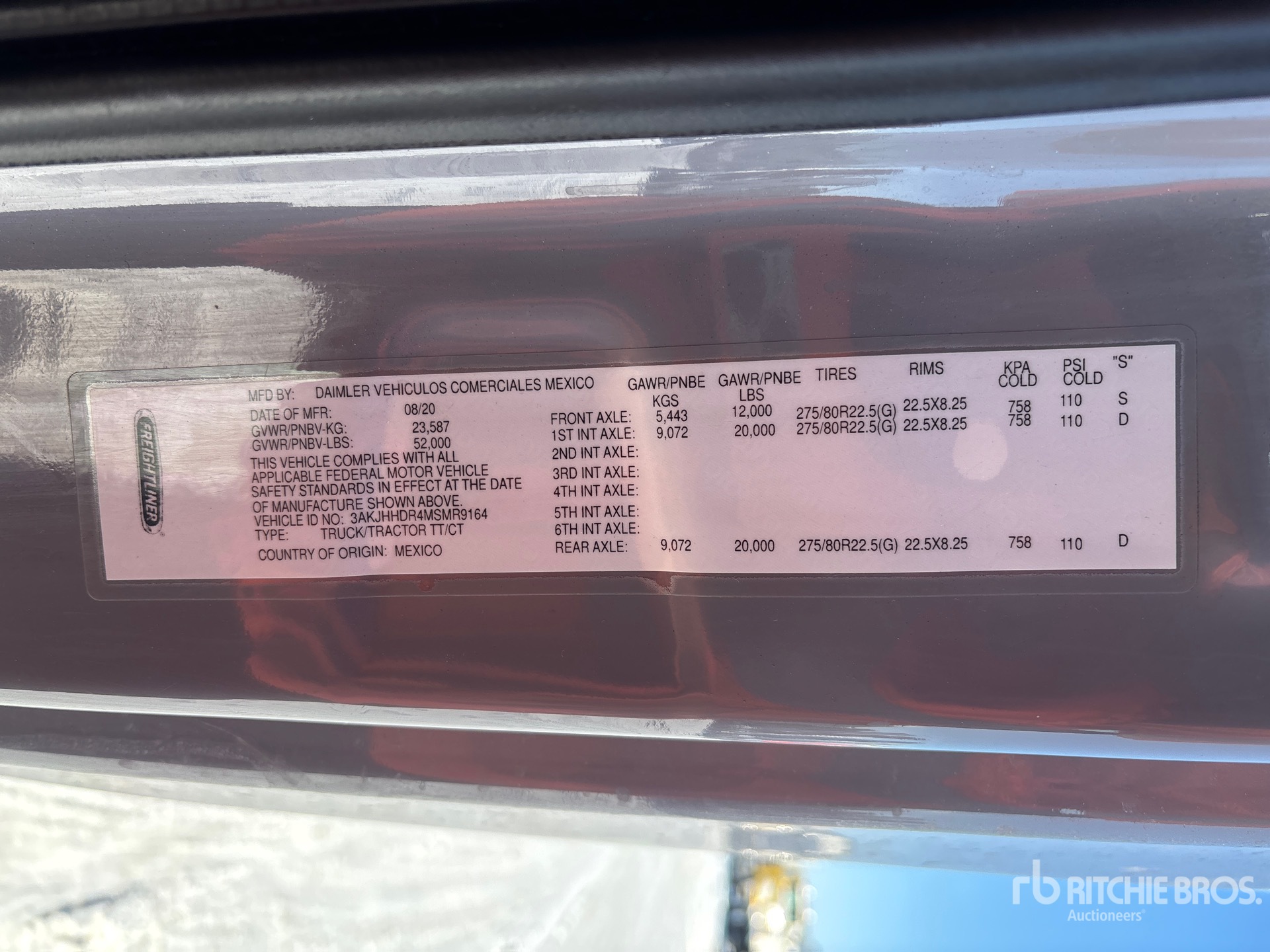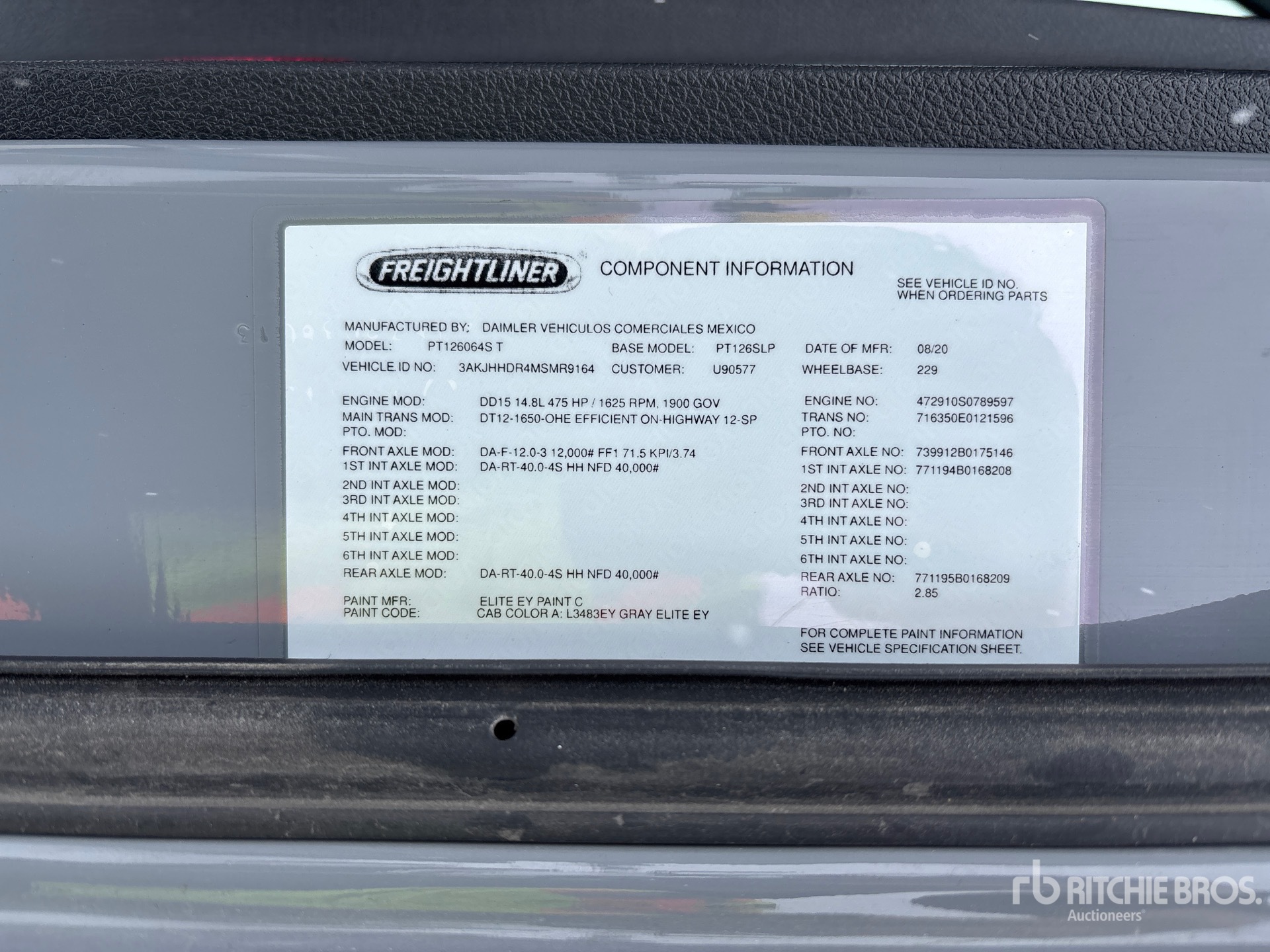 Located in Lane 18 Spot 21, Detroit DD15 475 hp Engine, 2020 US EPA Label, 6776 Engine hrs, Detroit DT12-1650-OHE 12-Speed Automated Transmission, 12000 lb Front Axle, 40000 lb Rears, 52000 lb GVWR, Engine Brake, 70 in Sleeper Cab, Bunk Beds, Bunk Heater, 229 in Wheelbase, Air Suspension, Aluminum Wheels, 295/75R22.5, Air Sliding 5th Wheel, Dual Fuel Tanks