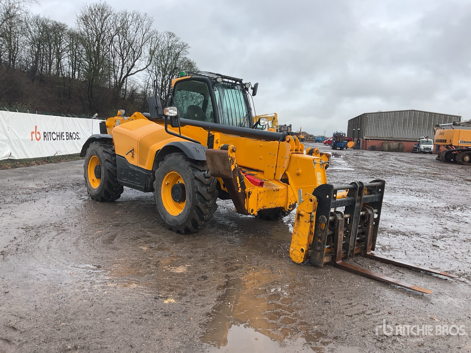 Enclosed Cab, Air Conditioner, Rear View Camera, Load Moment Indicator, 14 m Max Lift Height, 4000 kg Max Lift Capacity, 1060 mm Forks, Fork Positioner, Manual Coupler, Outriggers, Frame Leveling, Auxiliary Hydraulic Plumbing, 4/80-24 Tires