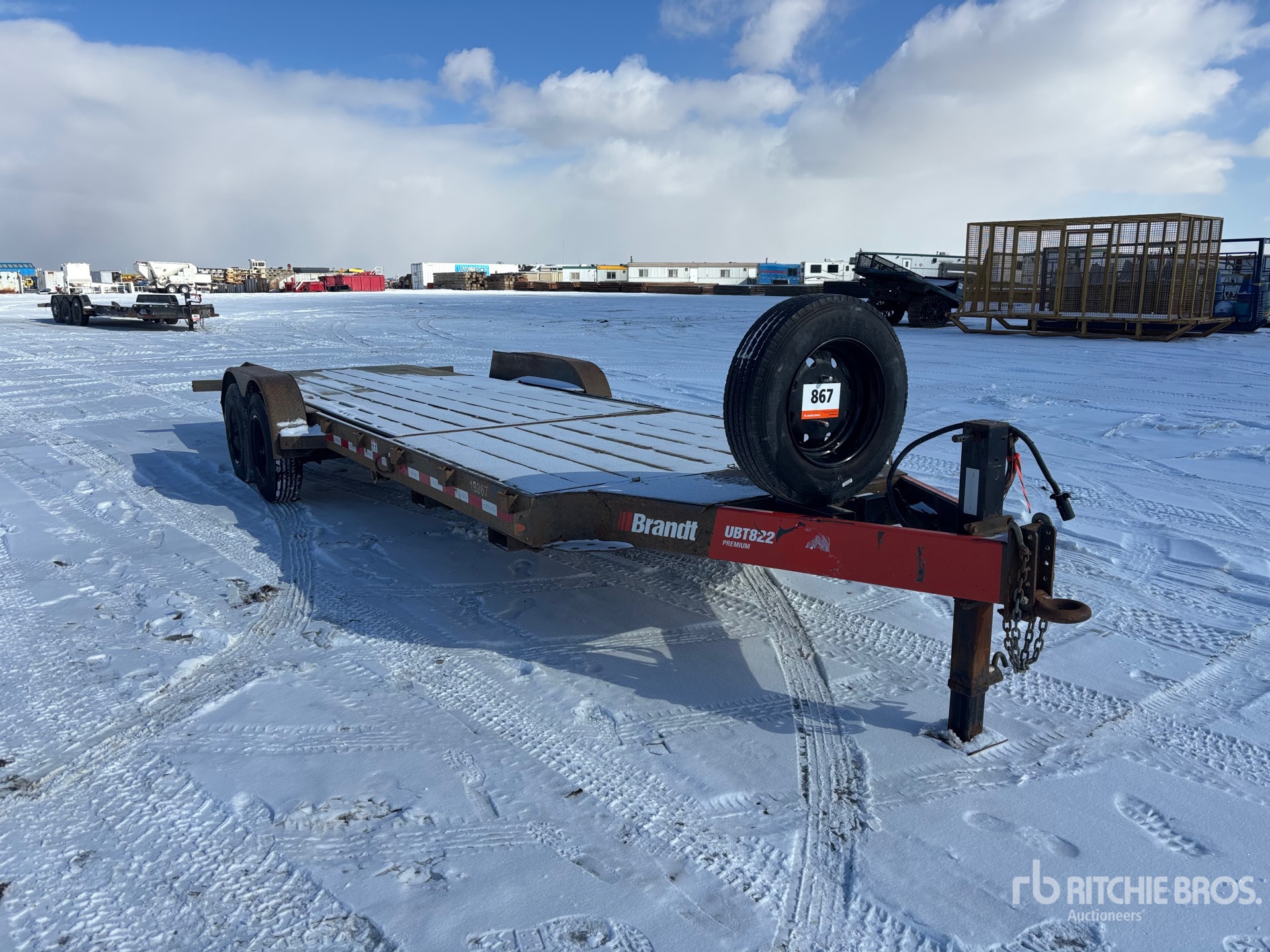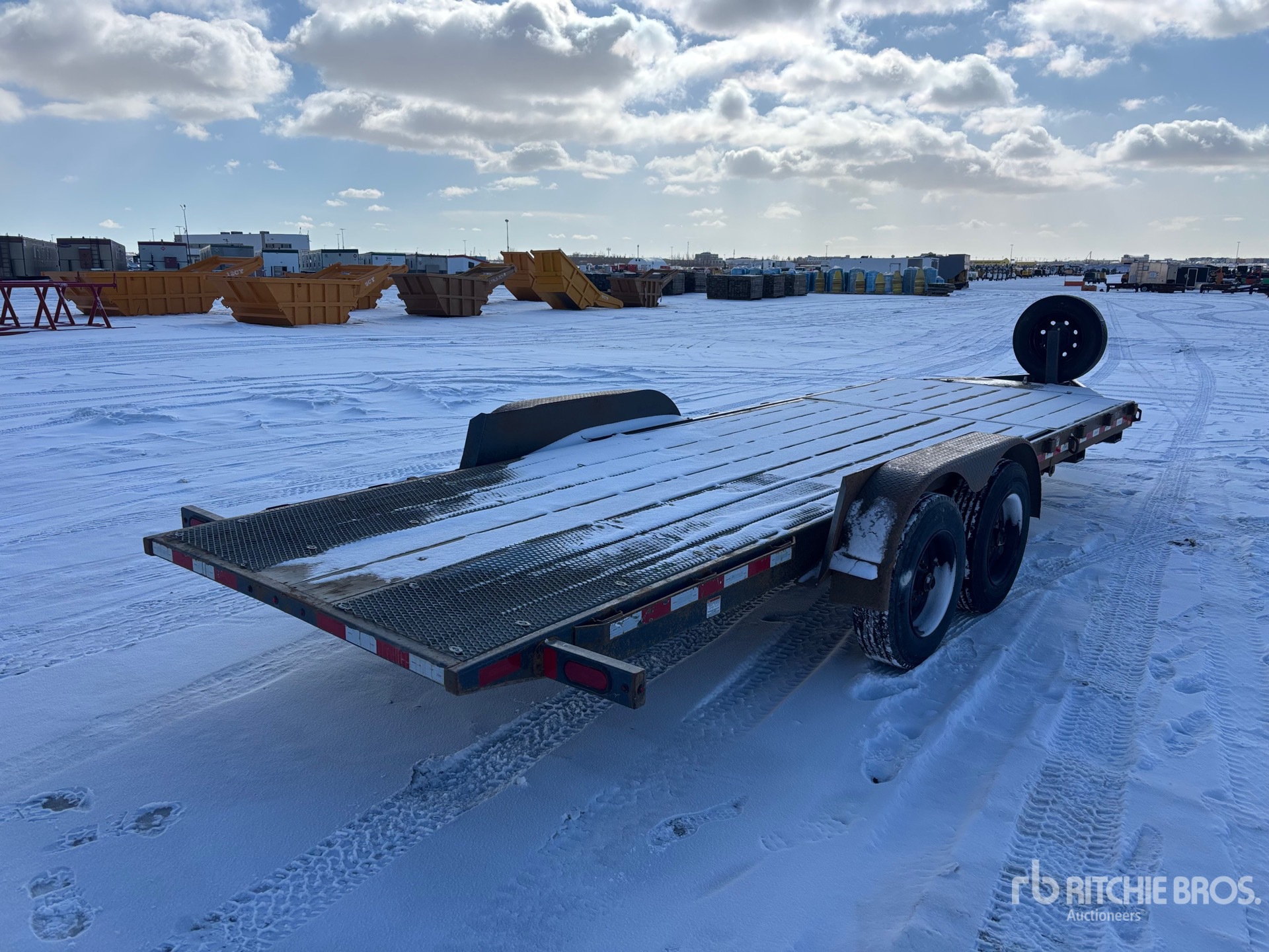 Located in Lane 4 Spot 96, Lunette Ring Hitch, Torsion Axle, Electric Brakes, Storage Compartments, 16 ft Deck Tilting Length, 72 in Deck Width, 215/75R17.5 Tires, 7483 kg GVWR
