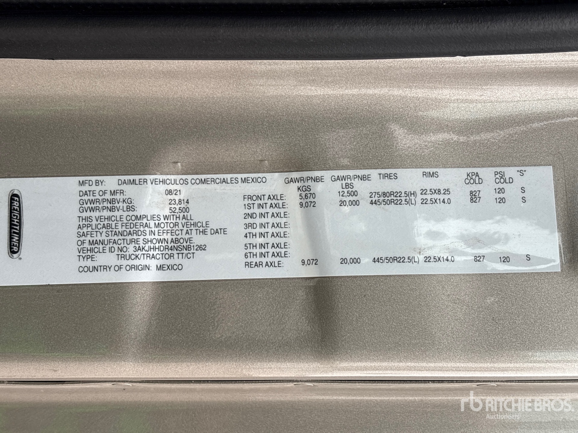 Detroit DD15 400 hp Engine, 2021 US EPA Label, Detroit DT12-1750-DH1 12-Speed Automated Transmission, 13300 lb Front Axle, 40000 lb Rears, 53300 lb GVWR, 70 in High Rise Sleeper Cab, Bunk Beds, Bunk Heater, 231 in Wheelbase, Air Suspension, Aluminum Outer Wheels, 275/80R22.5, Air Sliding 5th Wheel, Dual Fuel Tanks