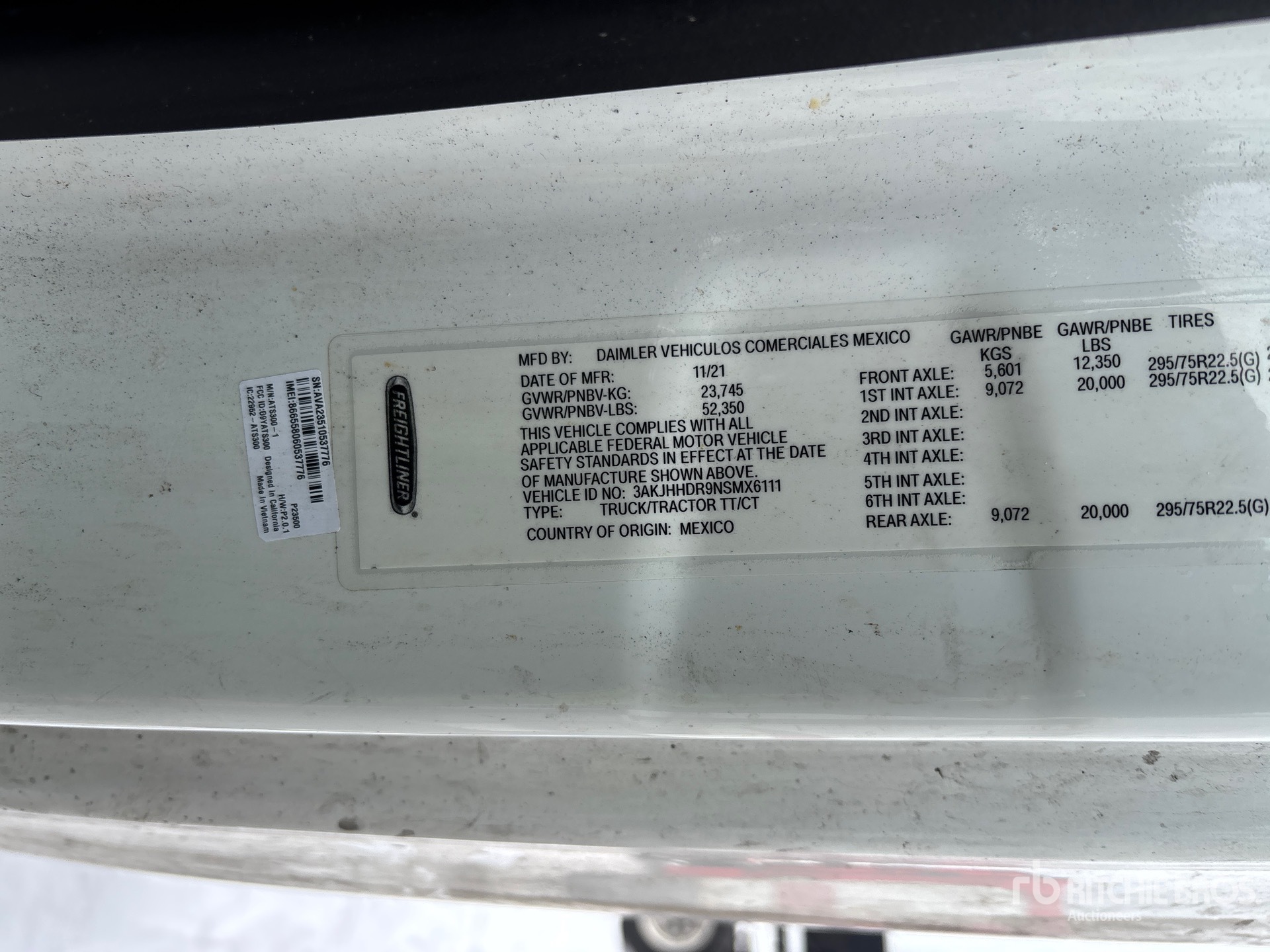 Detroit DD15 400 hp Engine, 16638 Engine hrs, Detroit DT12-1750-DH1 12-Speed Automated Transmission, 12350 lb Front Axle, 40000 lb Rears, 52350 lb GVWR, Engine Brake, 72 in High Rise Sleeper Cab, Bunk Beds, 227 in Wheelbase, Air Suspension, 295/75R22.5 Front Tires, 295/75R22.5 Rear Tires, Air Sliding 5th Wheel, Dual Fuel Tanks