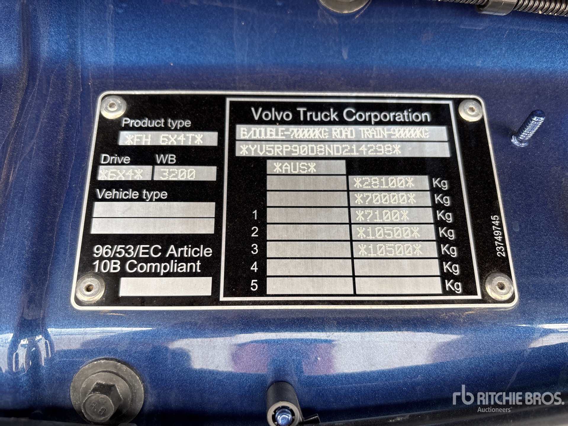 Volvo D16G 700 hp Engine, 3210 Engine hrs, Automatic Transmission, 46000 lb Rears, Exhaust Brake, Differential Lock, Koolkat Sleeper Air Conditioner, 3900 mm Wheelbase, 8-Bag Air Suspension, 385/65R22.5 Front Tires, 11R22.5 Rear Tires, Hydraulic System, On-Board Scale, GVM 28.1 t, GCM 90 t