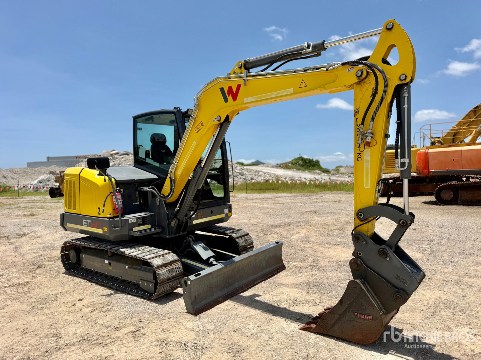 Enclosed Cab, Air Conditioner, E-Stops, 3700 mm Stick, Auxiliary Hydraulic Plumbing, Backfill Blade, 400 mm Triple Grouser Track Shoes w/Rubber Pads, Hydraulic Quick Coupler, 600 mm Cleanup Bucket