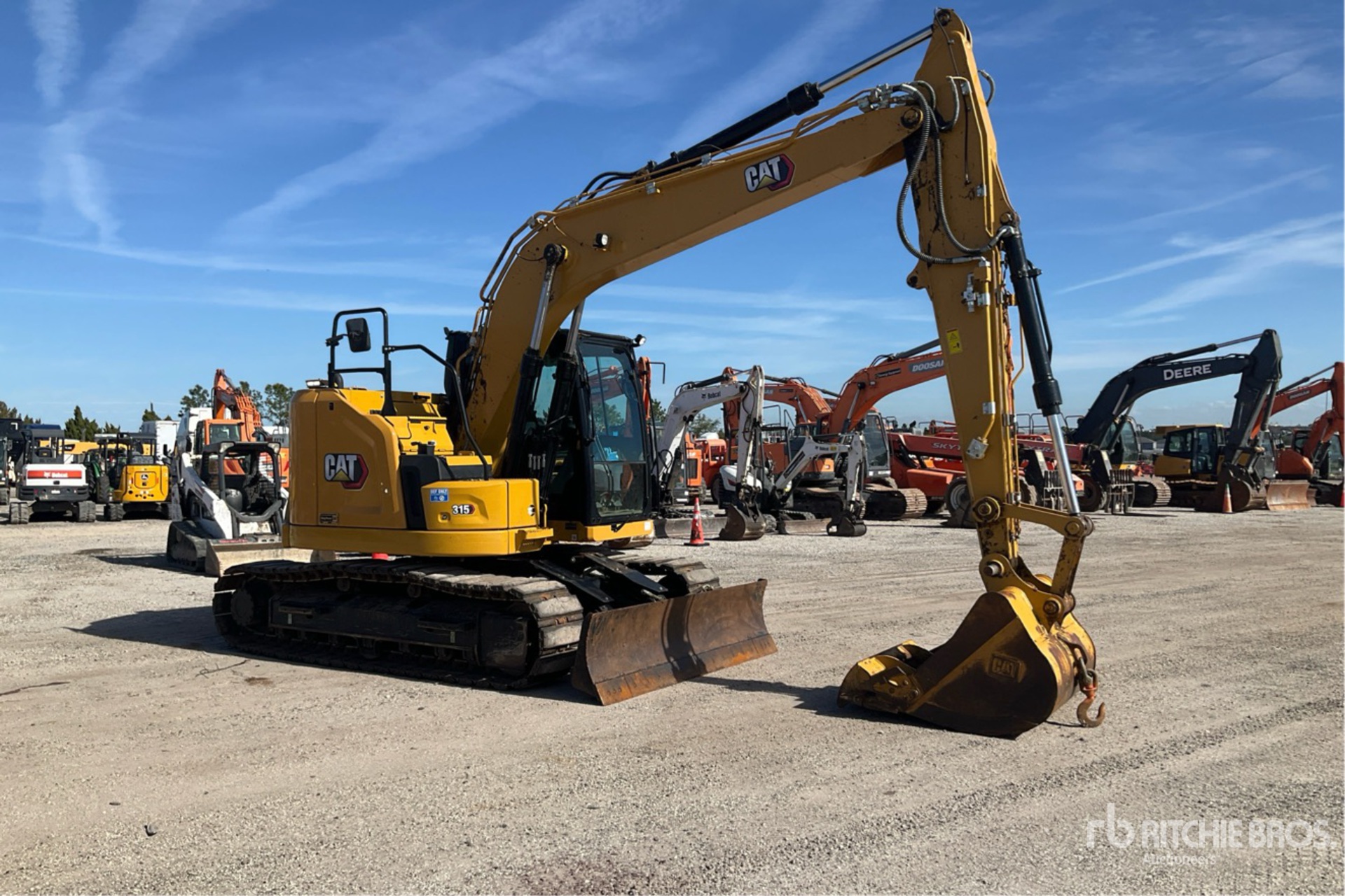 Air Conditioner, Straight Travel Pedal, Rear & Side View Cameras, Requires Diesel Exhaust Fluid, 9 ft 10 in Stick, Auxiliary Hydraulic Plumbing, Backfill Blade, 19.75 in Triple Grouser Track Shoes w/Rubber Inserts, 44.5 in Digging Bucket, Manual Thumb