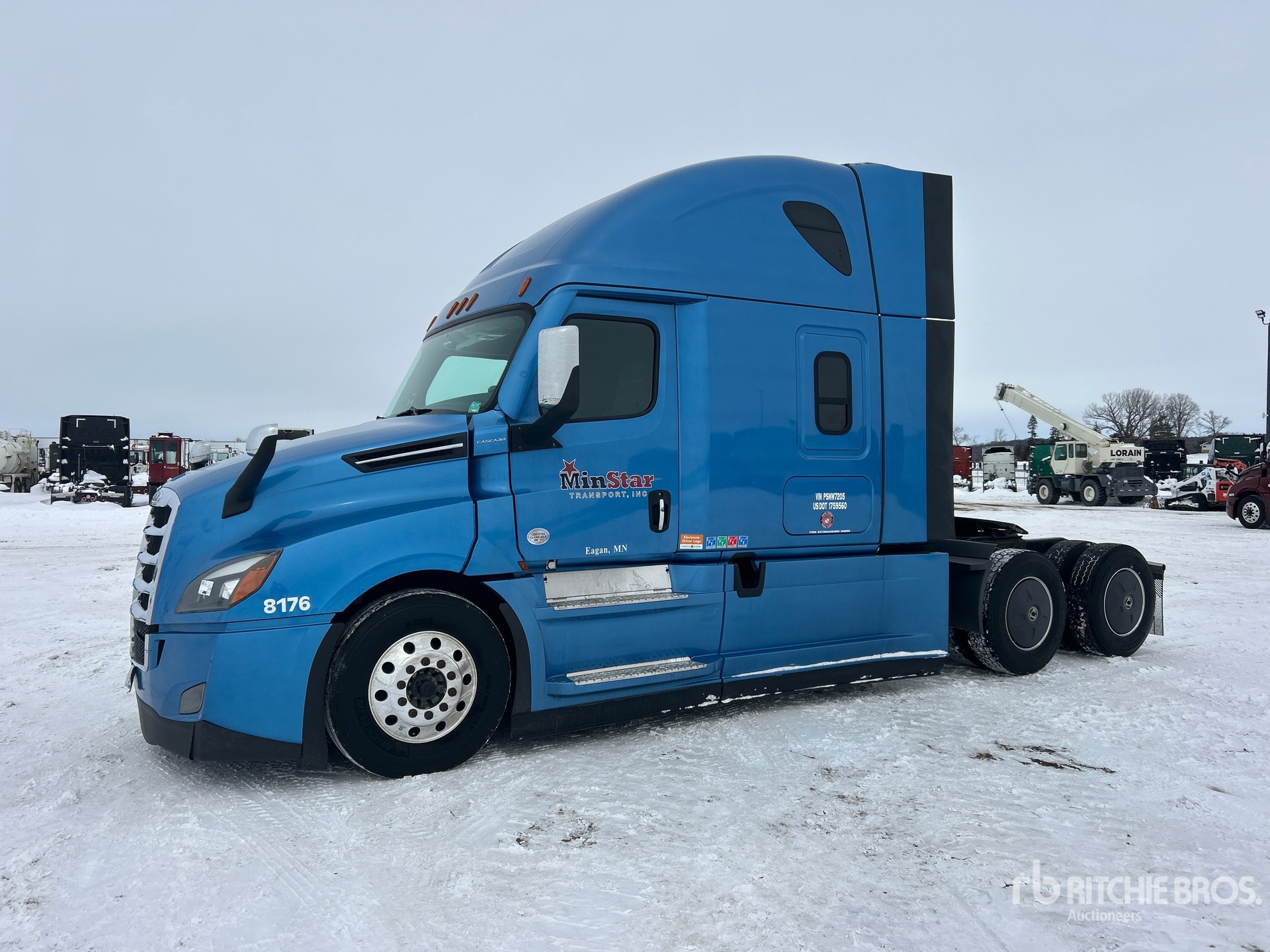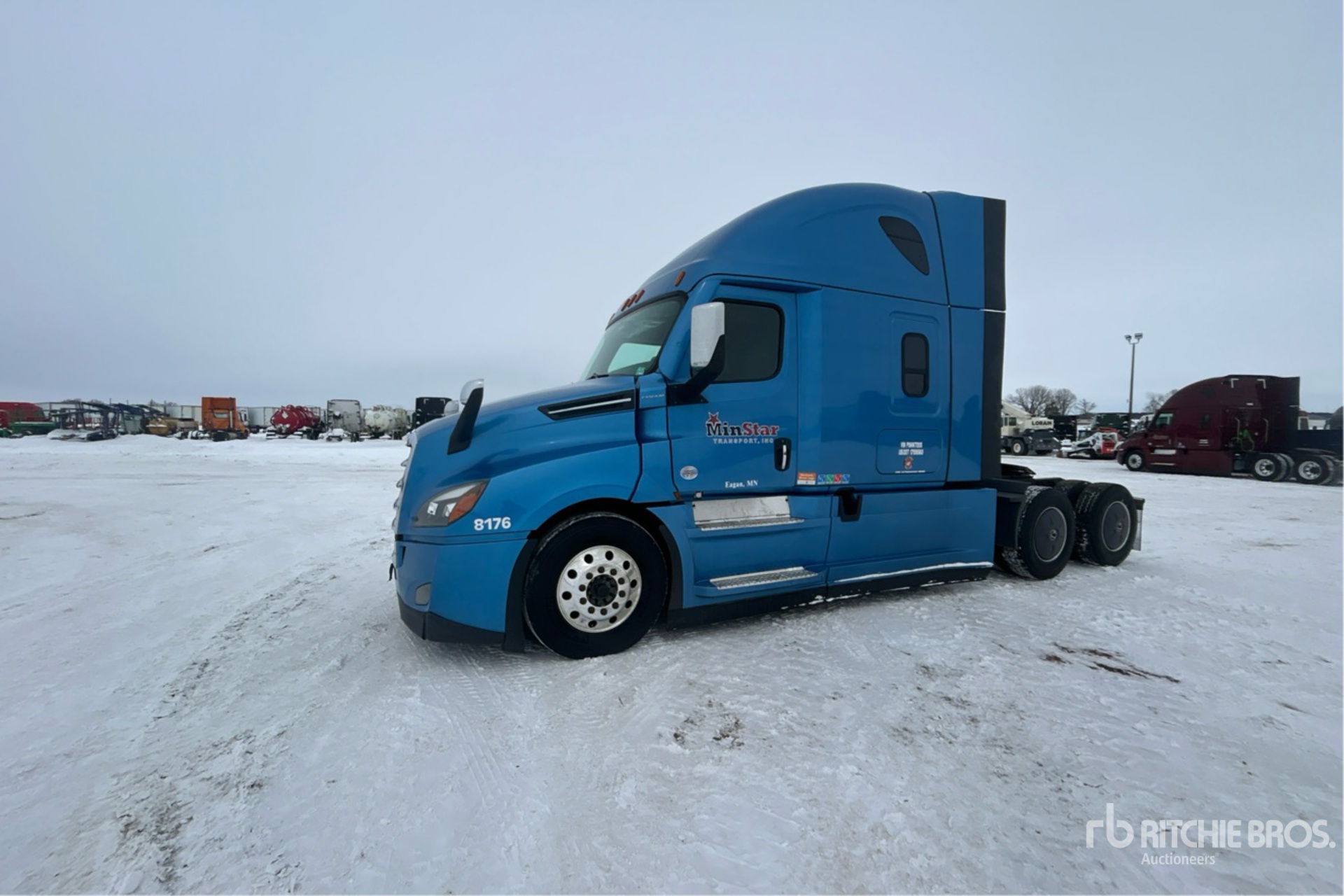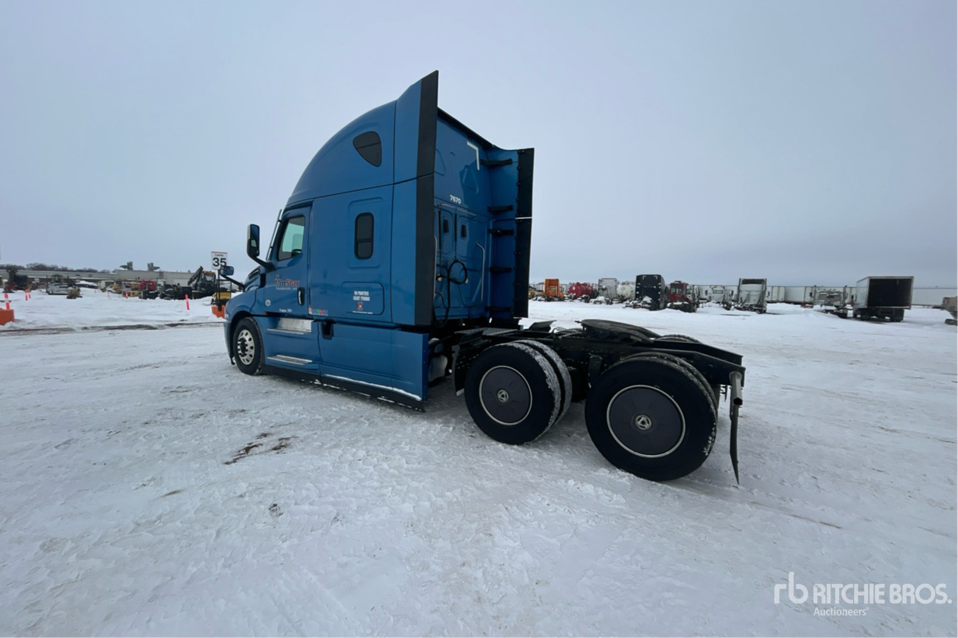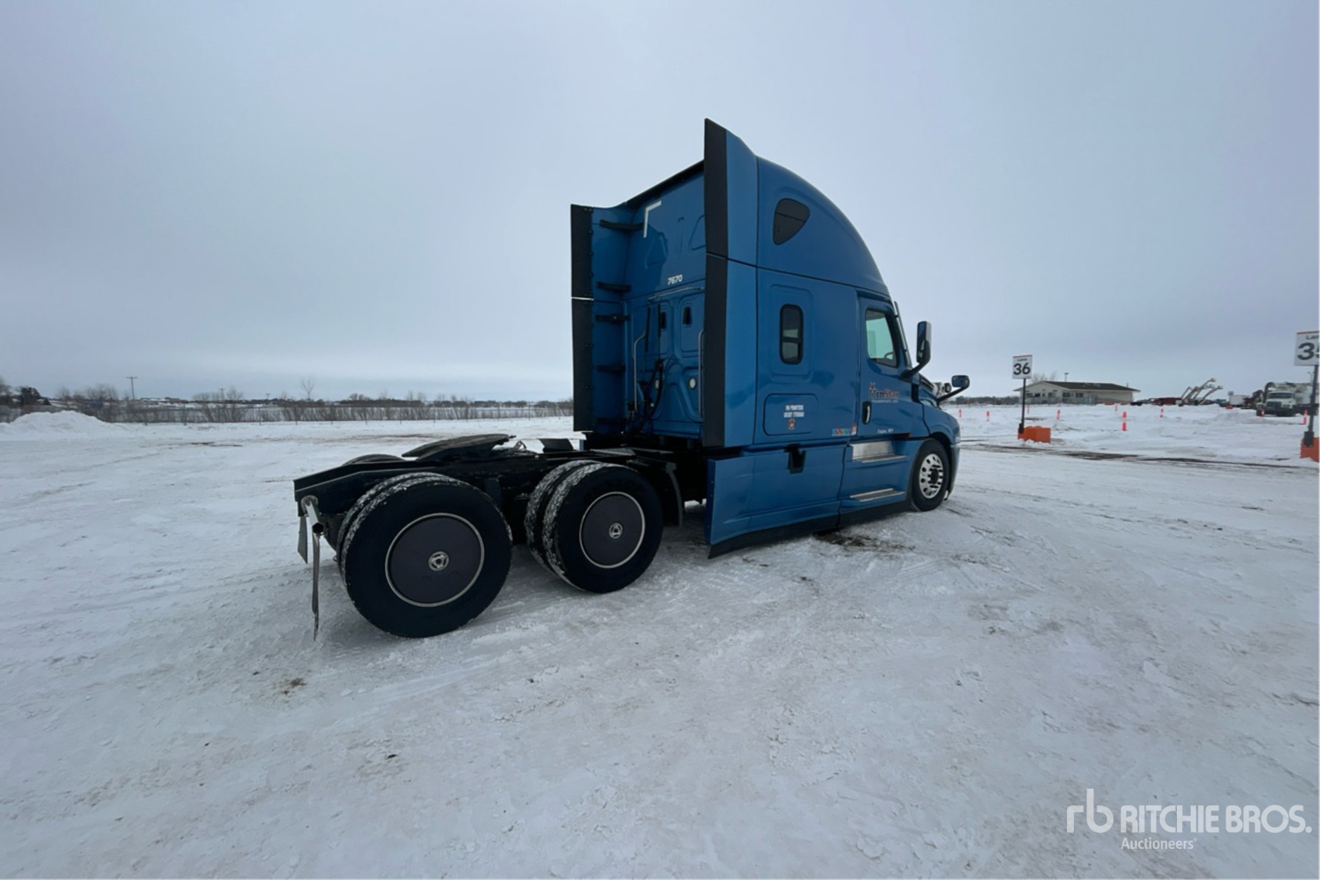 Located in Lane 6 Spot 44, Detroit DD15 475 hp Engine, 2022 US EPA Label, Detroit DT12-1650-OHE 12-Speed Automated Transmission, 12500 lb Front Axle, 40000 lb Rears, 52500 lb GVWR, Engine Brake, 70 in High Rise Sleeper Cab, Bunk Beds, 223 in Wheelbase, Air Suspension, Aluminum Outer Wheels, 275/80R22.5 Front Tires, 295/75R22.5 Rear Tires, Air Sliding 5th Wheel, Dual Fuel Tanks