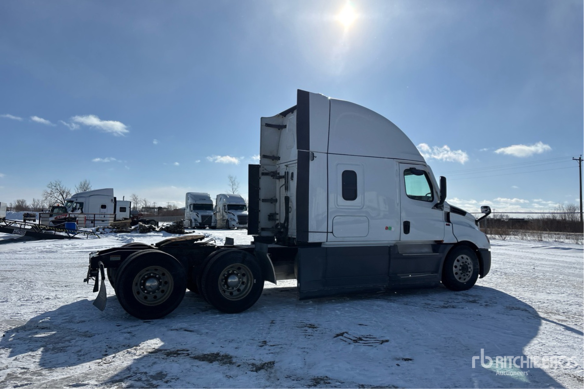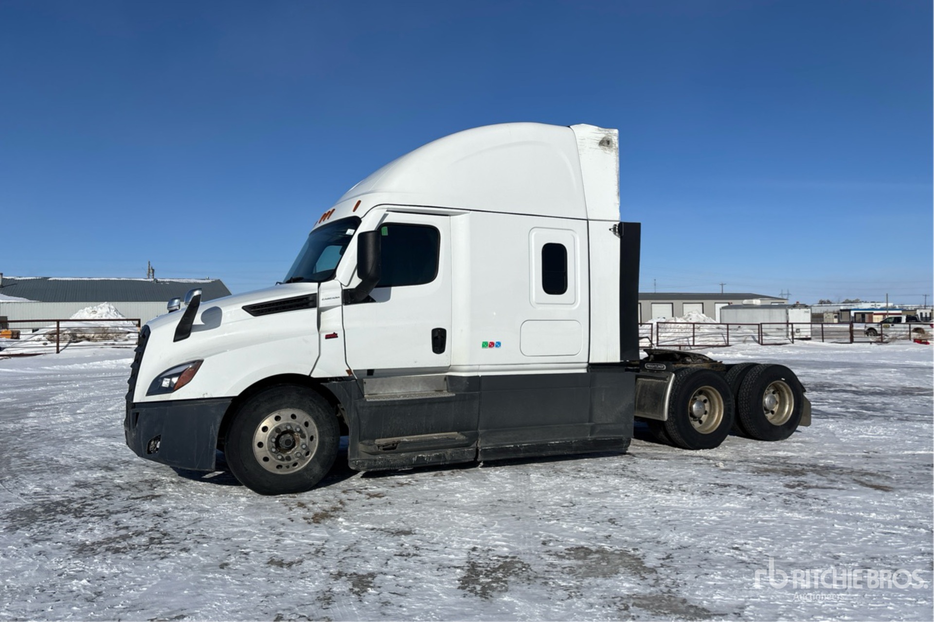 Located in Lane 3 Spot 28, Detroit DD15 475 hp Engine, 2023 US EPA Label, 9151 Engine hrs, Detroit DT12-1650-OHE 12-Speed Automatic Transmission, 12500 lb Front Axle, 40000 lb Rears, 52500 lb GVWR, Engine Brake, Double Differential Locks, 48 in High Rise Sleeper Cab, Bunk Beds, Bunk Heater, 229 in Wheelbase, Air Suspension, Aluminum Wheels, 11R22.5, Air Sliding 5th Wheel, Dual Fuel Tanks