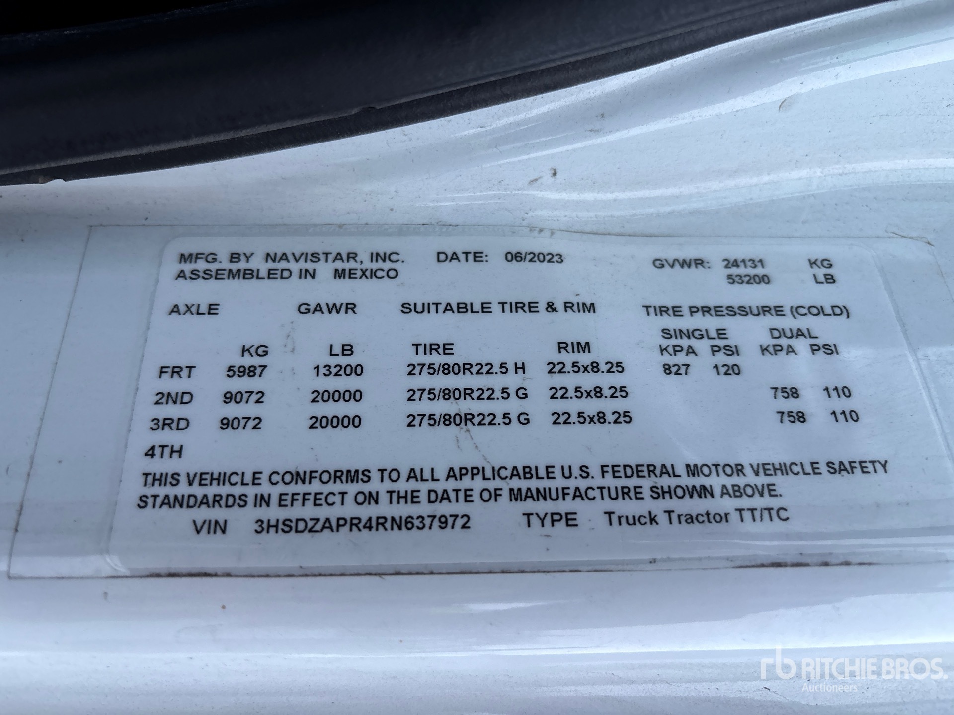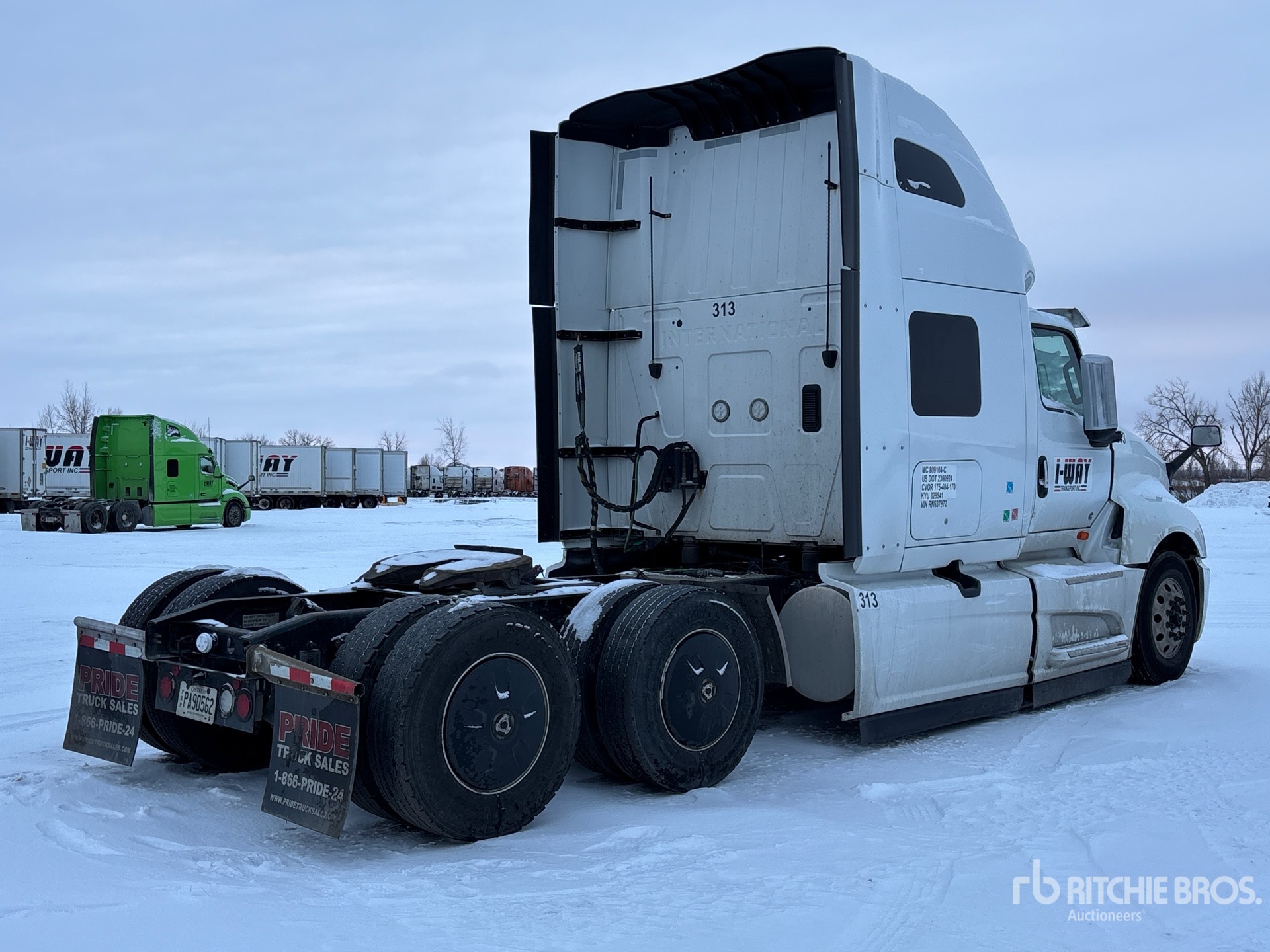 Automatic Transmission, 13200 lb Front Axle, 40000 lb Rears, 53200 lb GVWR, High Rise Sleeper Cab, Air Suspension, Aluminum Wheels, 11R22.5 Front Tires, 275/80R22.5 Rear Tires, Air Sliding 5th Wheel, Dual Fuel Tanks