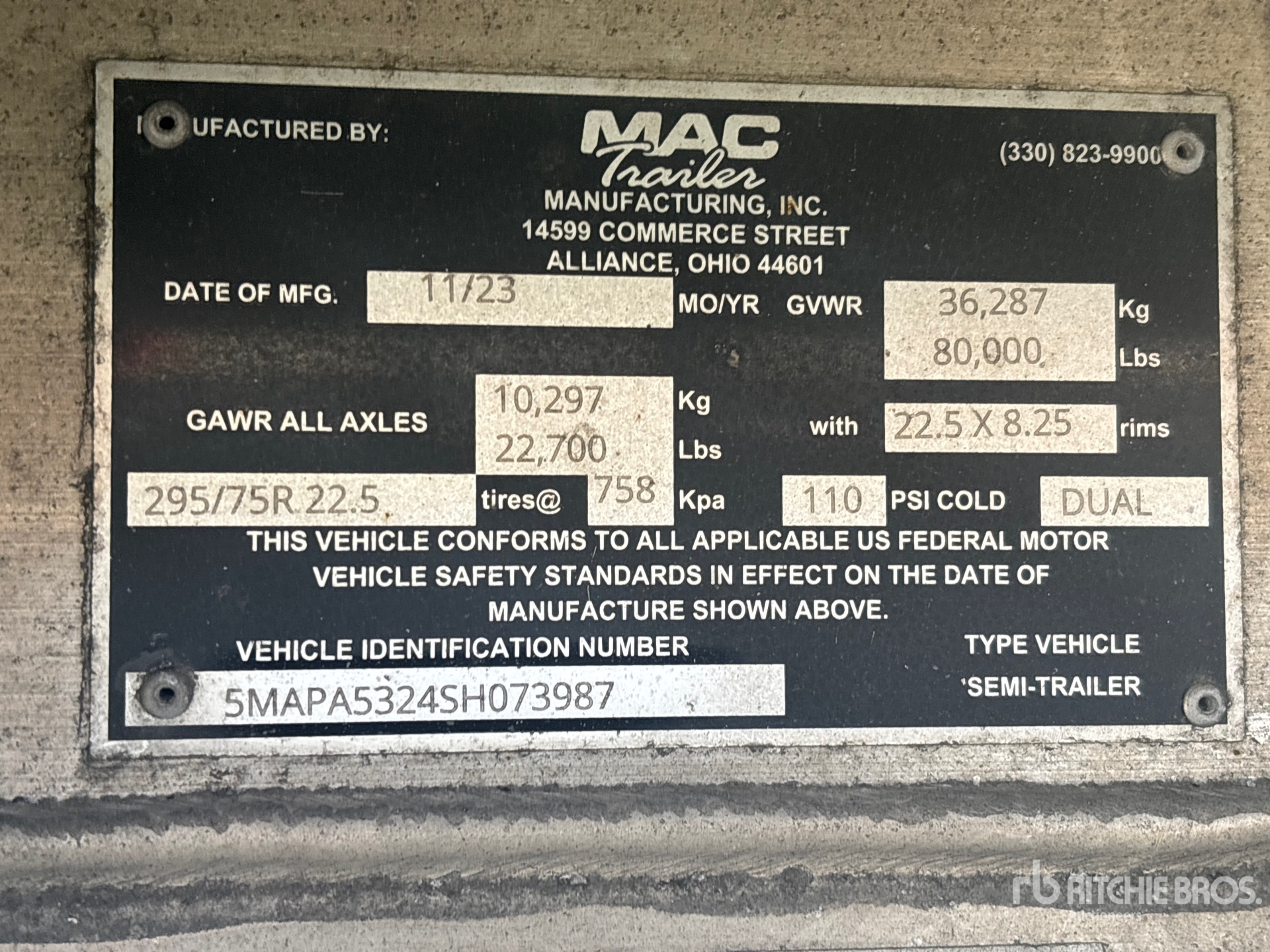 Aluminum Frame, Air Ride Suspension, 95 in Deck Width, 101 in Overall Width, Aluminum w/Wood Strips Flooring, Aluminum Wheels, 295/75R22.5 Tires, 80000 lb GVWR