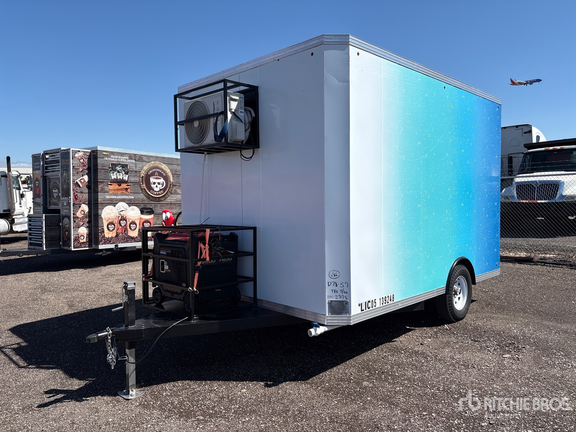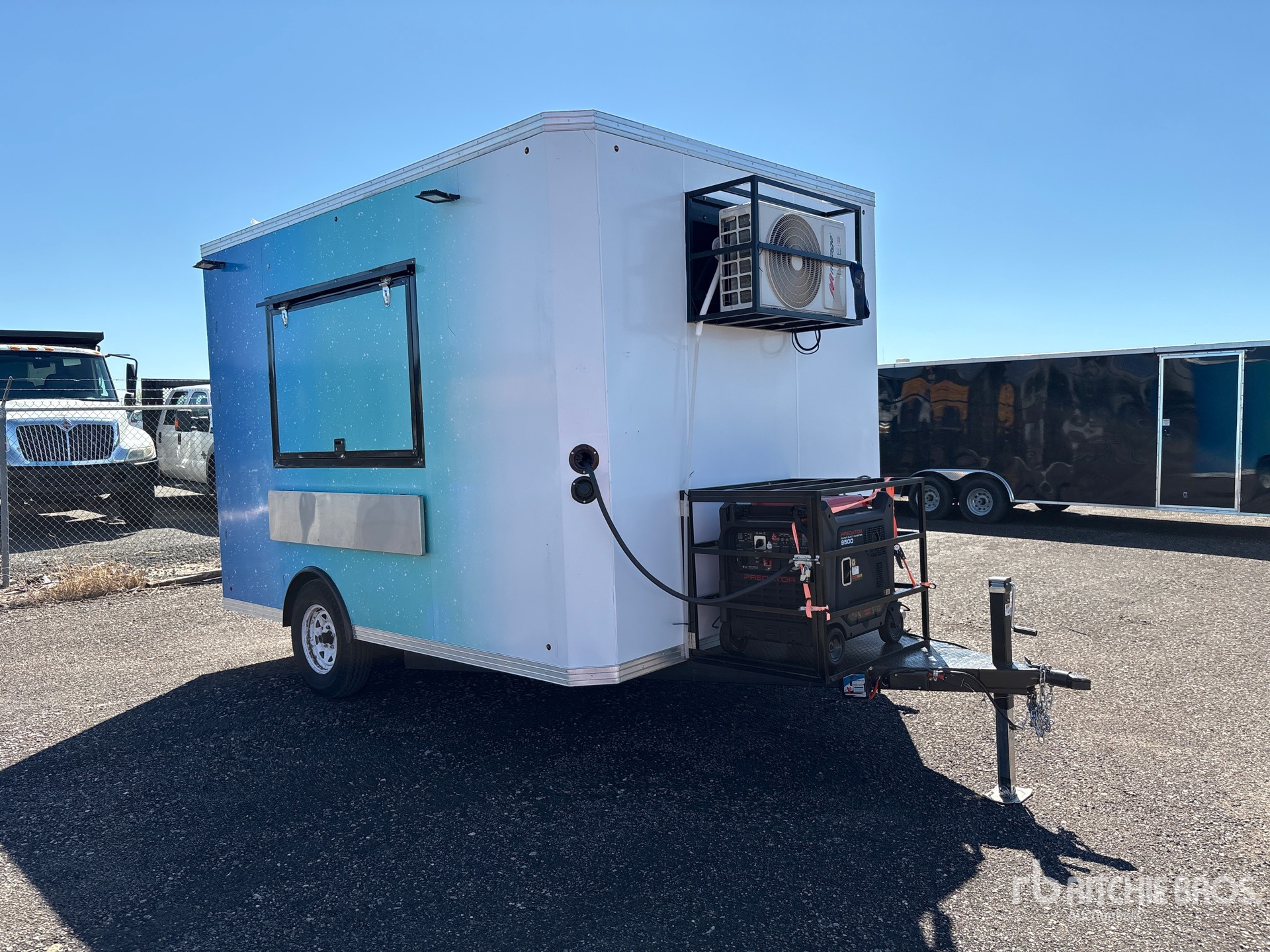 Ball Hitch, Spring Suspension, Electric Brakes, 7.00-15 Tires, 3500 lb GVWR, Air Conditioner, Kitchen Appliances, Generator, Water Heater, Fresh Water Tank, Grey Water Tank