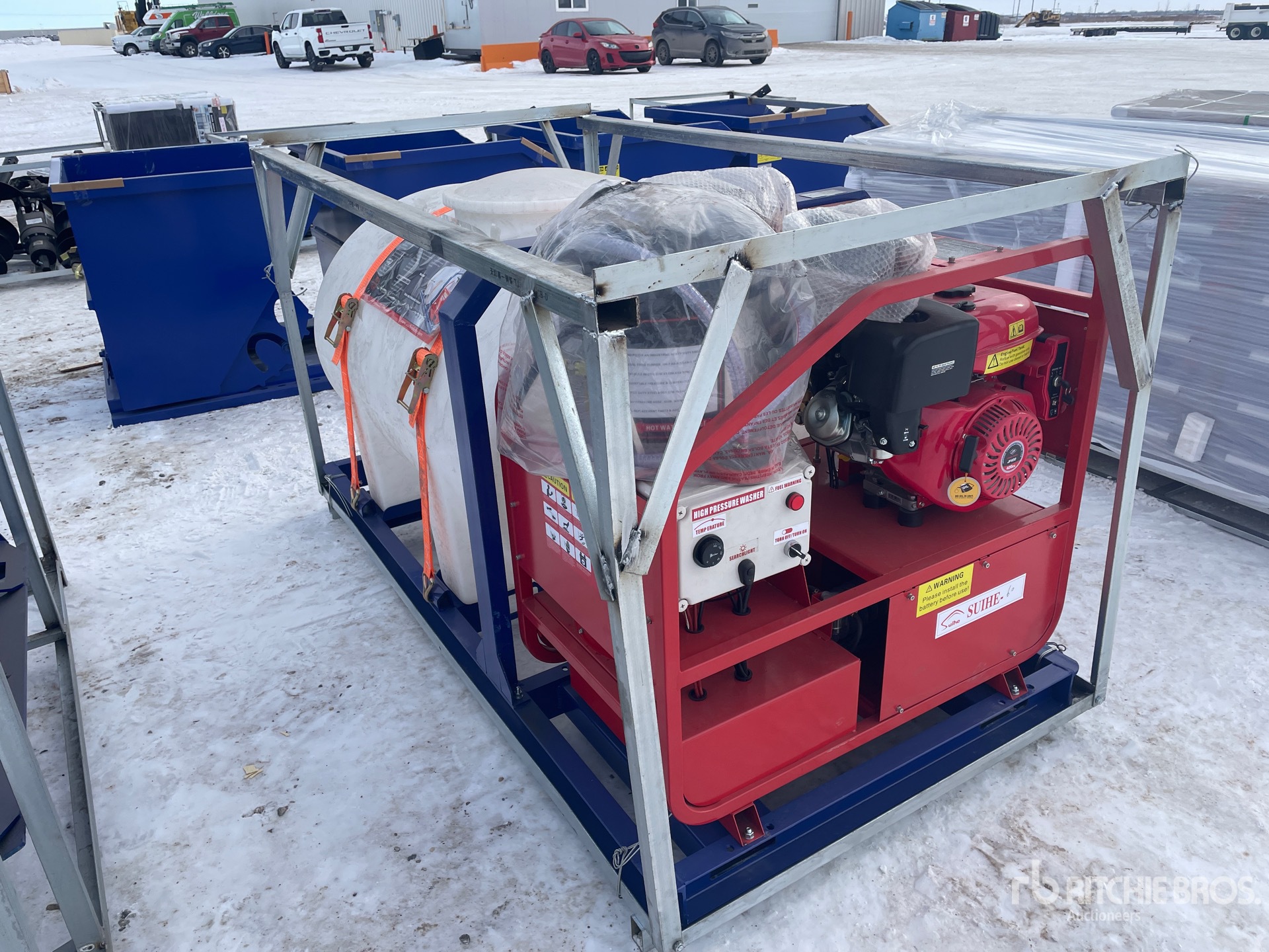 การวัดเป็นเพียงการประมาณการเท่านั้น ขนาดที่บรรทุกจริงอาจแตกต่างกันไปตามความสูงของรถบรรทุก/รถพ่วง และการกำหนดค่า/ตำแหน่งของเครื่องที่บรรทุก เป็นความรับผิดชอบของผู้ซื้อในการวัดน้ำหนักทั้งหมดก่อนออกจากสถานที่ประมูลของเรา เพื่อให้แน่ใจว่าน้ำหนักบรรทุกนั้นปลอดภัยสำหรับการขนส่ง การวัดทั้งหมดควรได้รับการตรวจสอบโดยผู้ซื้อ อย่าพึ่งพาการวัดเหล่านี้เพื่อวัตถุประสงค์ในการขนส่ง
