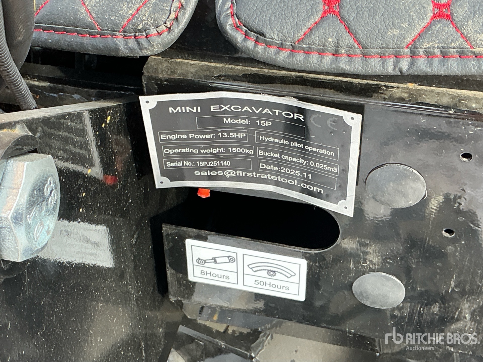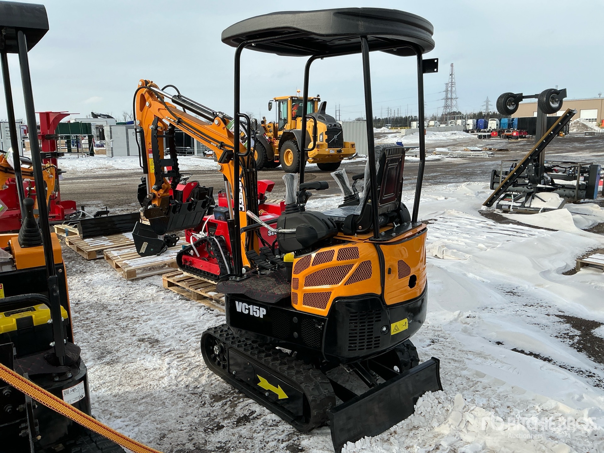 3 ft 2 in Stick, Auxiliary Hydraulic Plumbing, Backfill Blade, 7 in Rubber Tracks, 15 in Digging Bucket, Manual Thumb