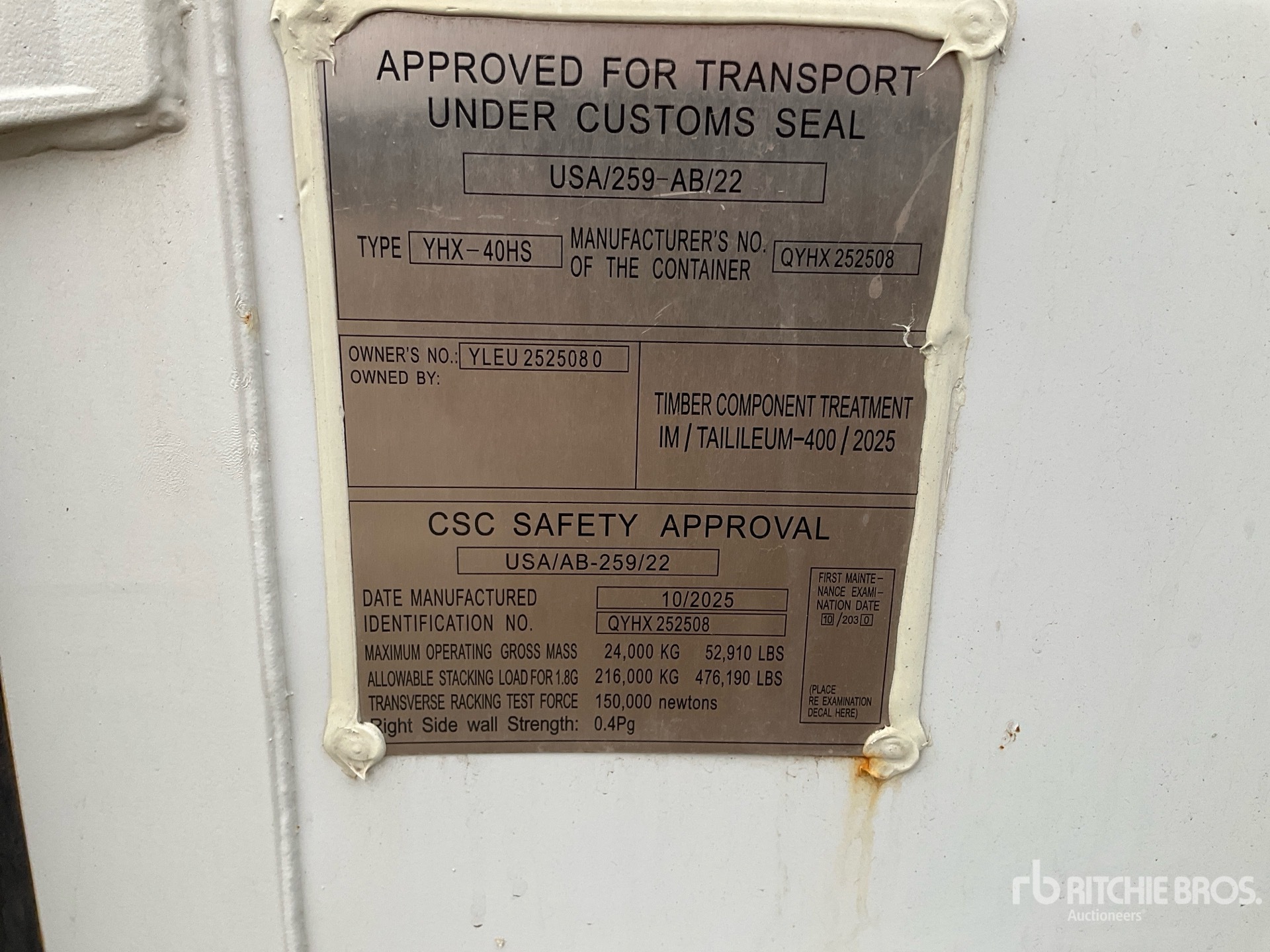 พนักงาน Ritchie Bros. ที่มีคุณสมบัติเหมาะสมได้ทำการรวบรวมข้อมูลโดยละเอียดของอุปกรณ์และทดสอบการใช้งานกับส่วนประกอบหลักของทรัพย์สินนี้แล้ว คุณหรือผู้รับมอบฉันทะอาจตรวจสอบสินค้าใดๆ บนเว็บไซต์ก่อนการประมูลในวันประมูลได้