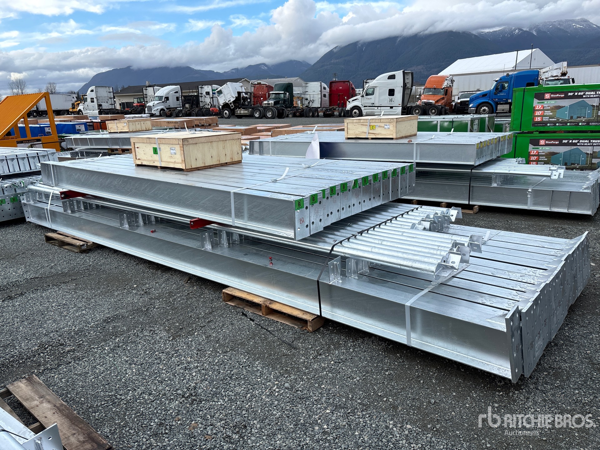 การวัดเป็นเพียงการประมาณการเท่านั้น ขนาดที่บรรทุกจริงอาจแตกต่างกันไปตามความสูงของรถบรรทุก/รถพ่วง และการกำหนดค่า/ตำแหน่งของเครื่องที่บรรทุก เป็นความรับผิดชอบของผู้ซื้อในการวัดน้ำหนักทั้งหมดก่อนออกจากสถานที่ประมูลของเรา เพื่อให้แน่ใจว่าน้ำหนักบรรทุกนั้นปลอดภัยสำหรับการขนส่ง การวัดทั้งหมดควรได้รับการตรวจสอบโดยผู้ซื้อ อย่าพึ่งพาการวัดเหล่านี้เพื่อวัตถุประสงค์ในการขนส่ง