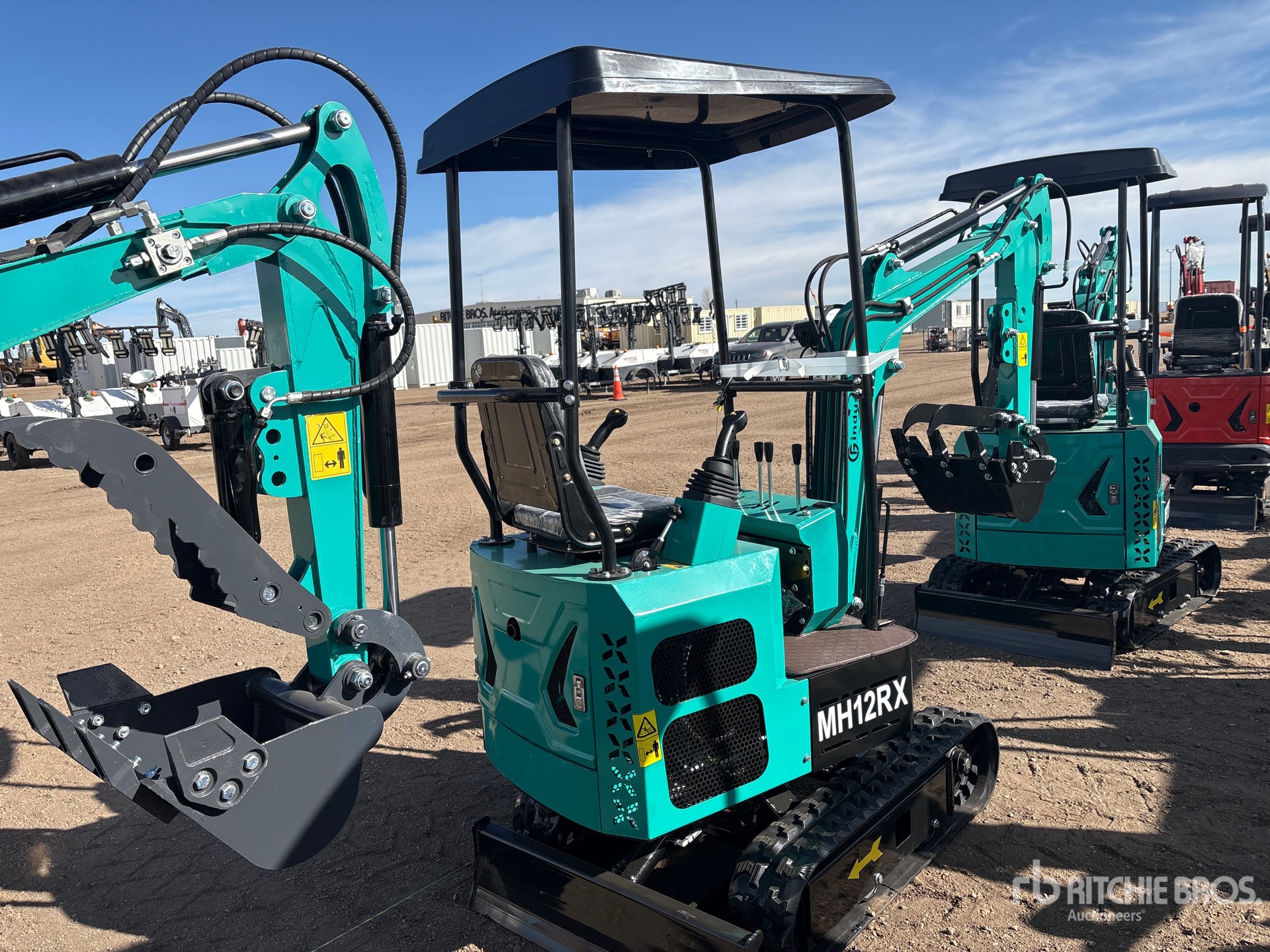 2025 US EPA Label, 2 ft 7 in Stick, Auxiliary Hydraulic Plumbing, Backfill Blade, 7 in Rubber Tracks, 16 in Digging Bucket, Manual Thumb